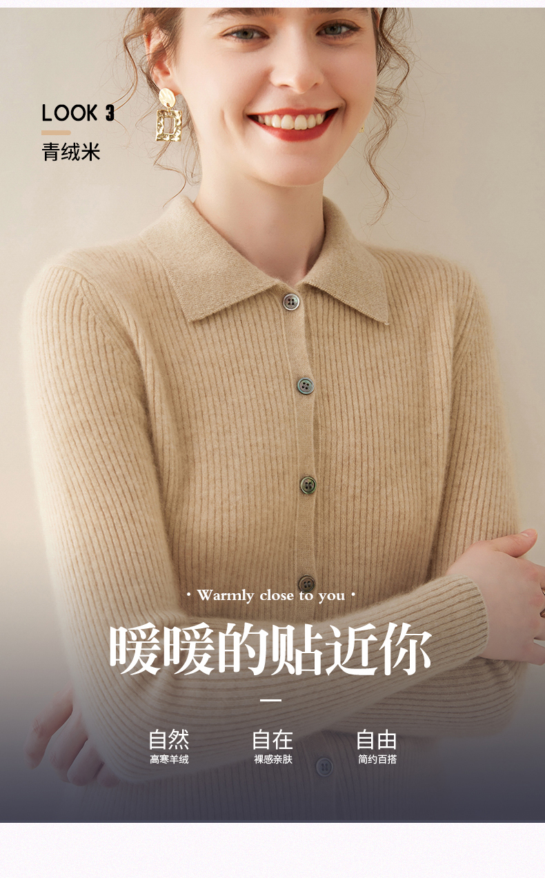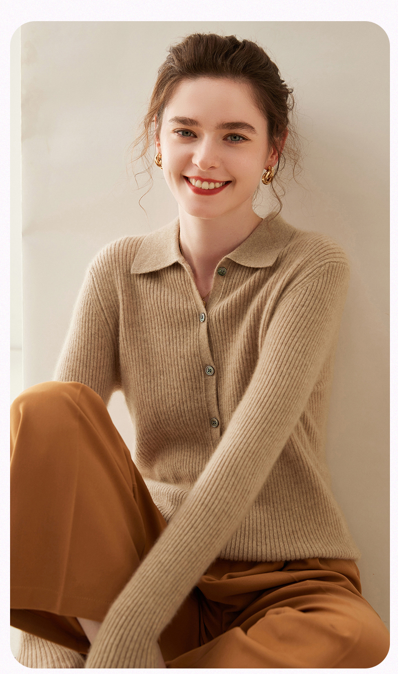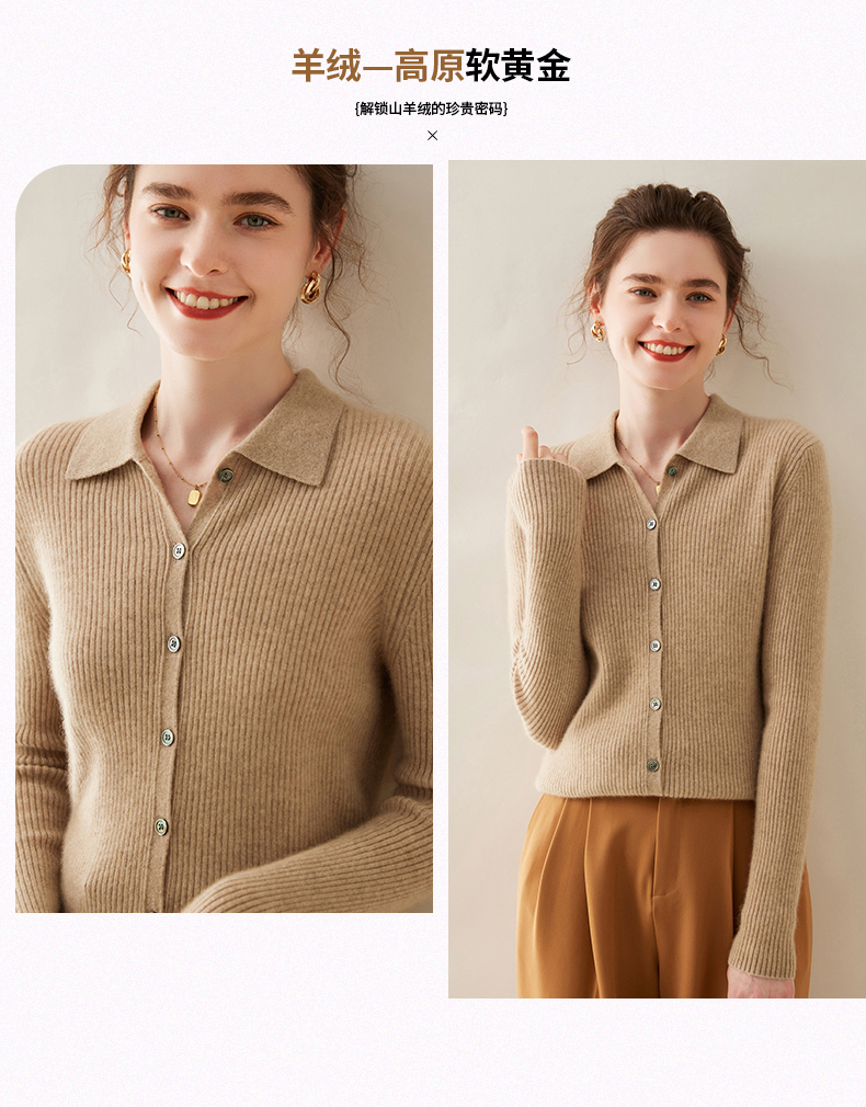 纤束马抽条衬衣领羊绒衫 NZ-604