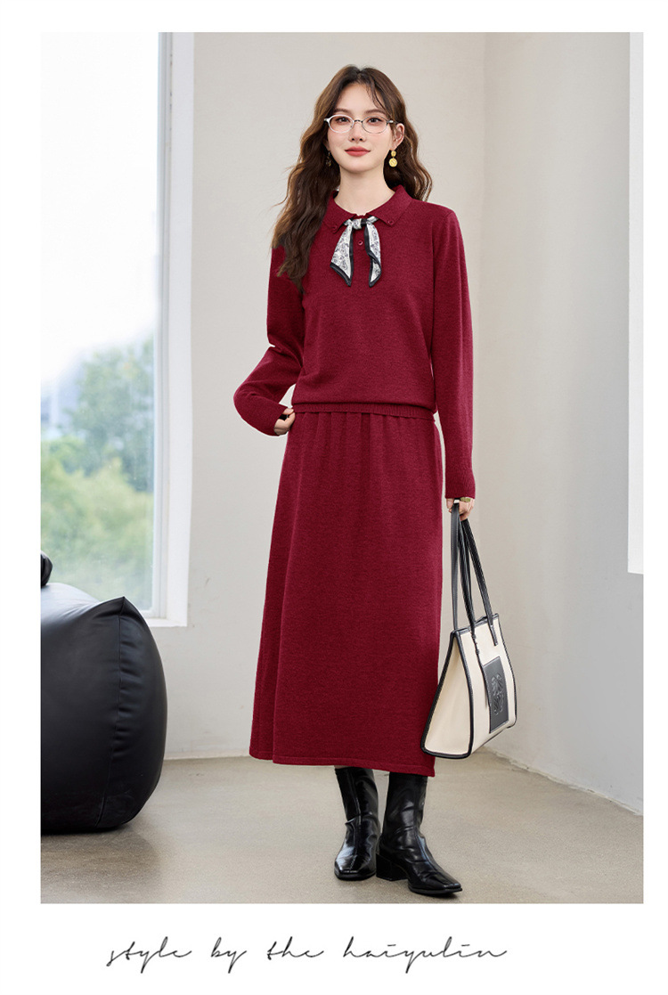 HR YBER608丝巾减龄新款Polo领简约百搭时尚气质两件套裙