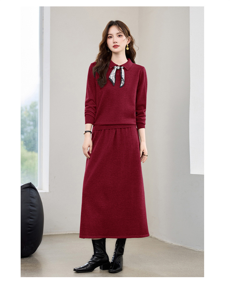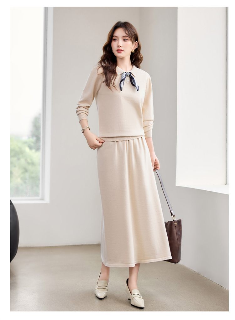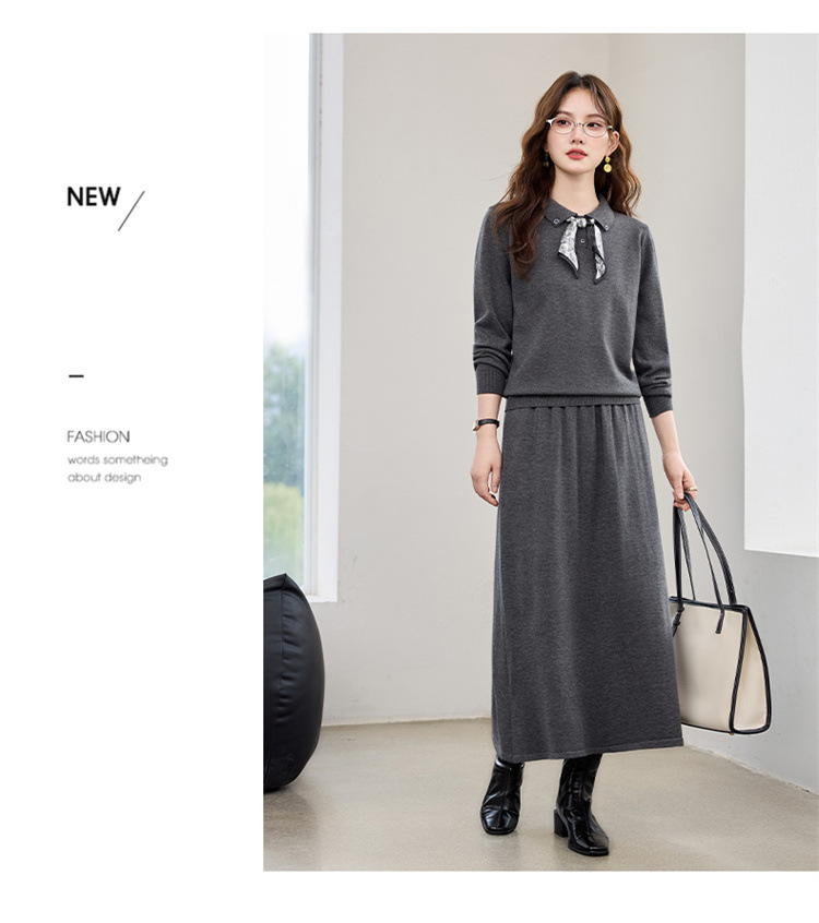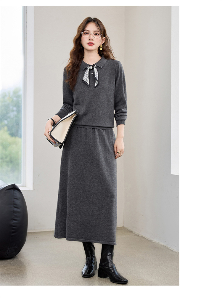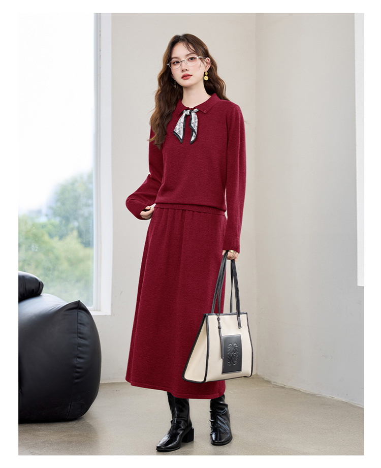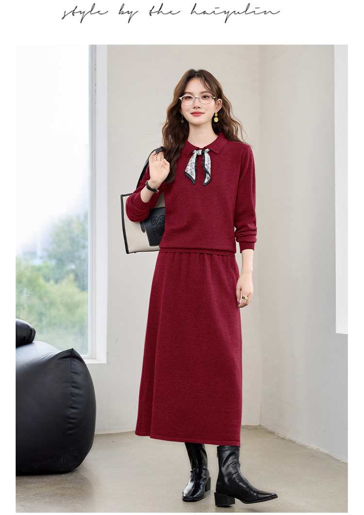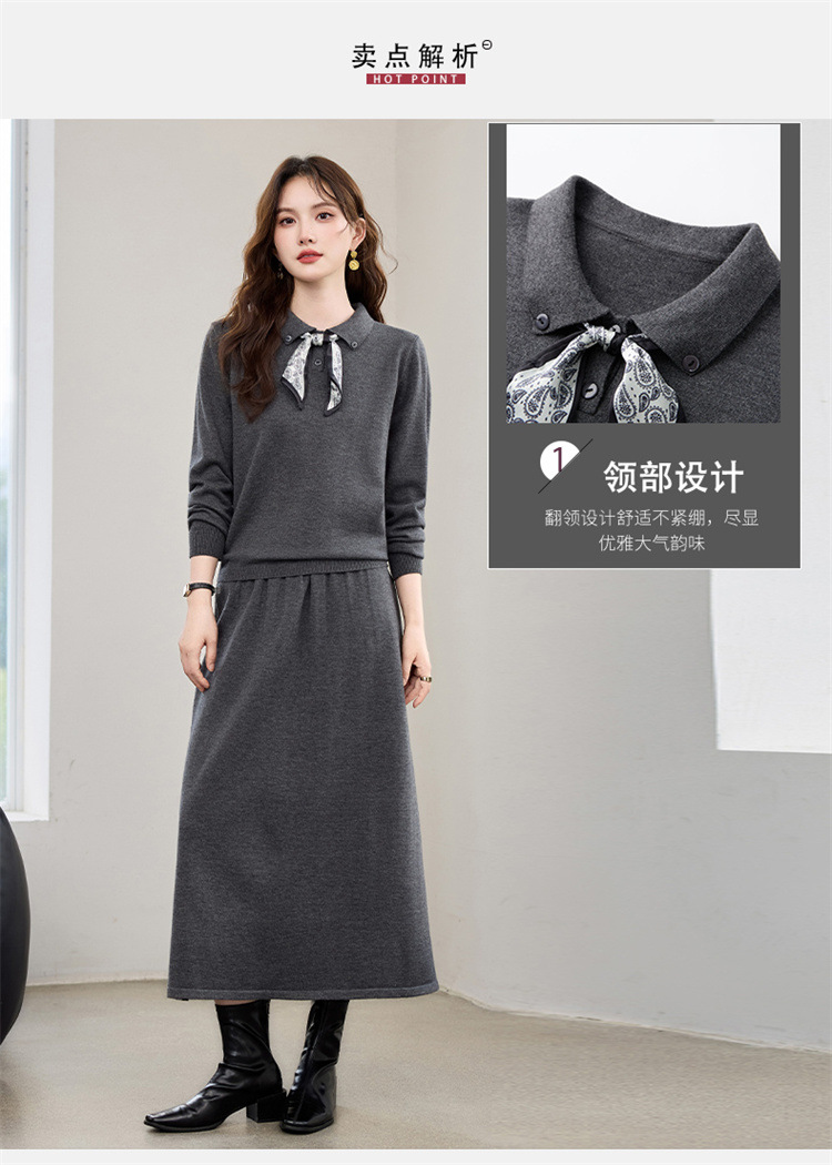 HR YBER608丝巾减龄新款Polo领简约百搭时尚气质两件套裙 商品图2