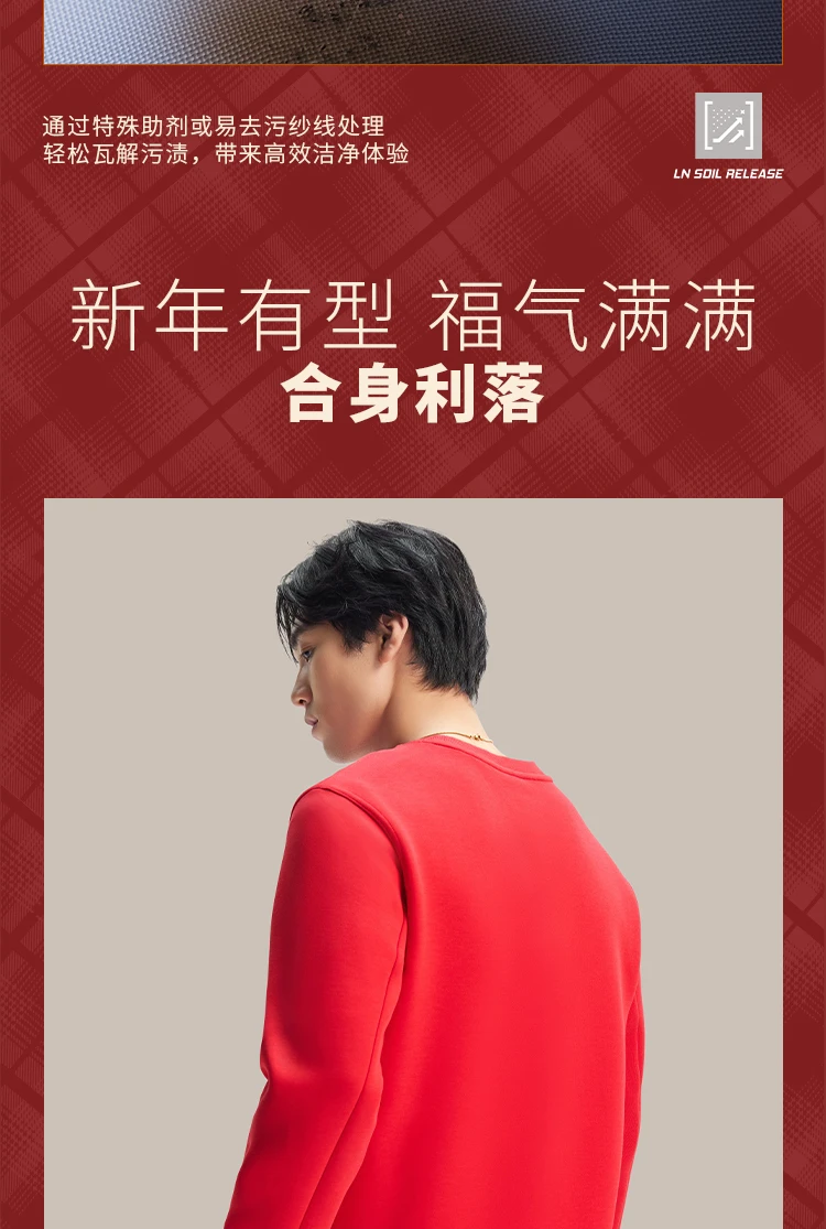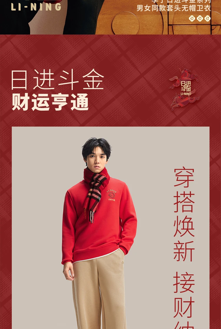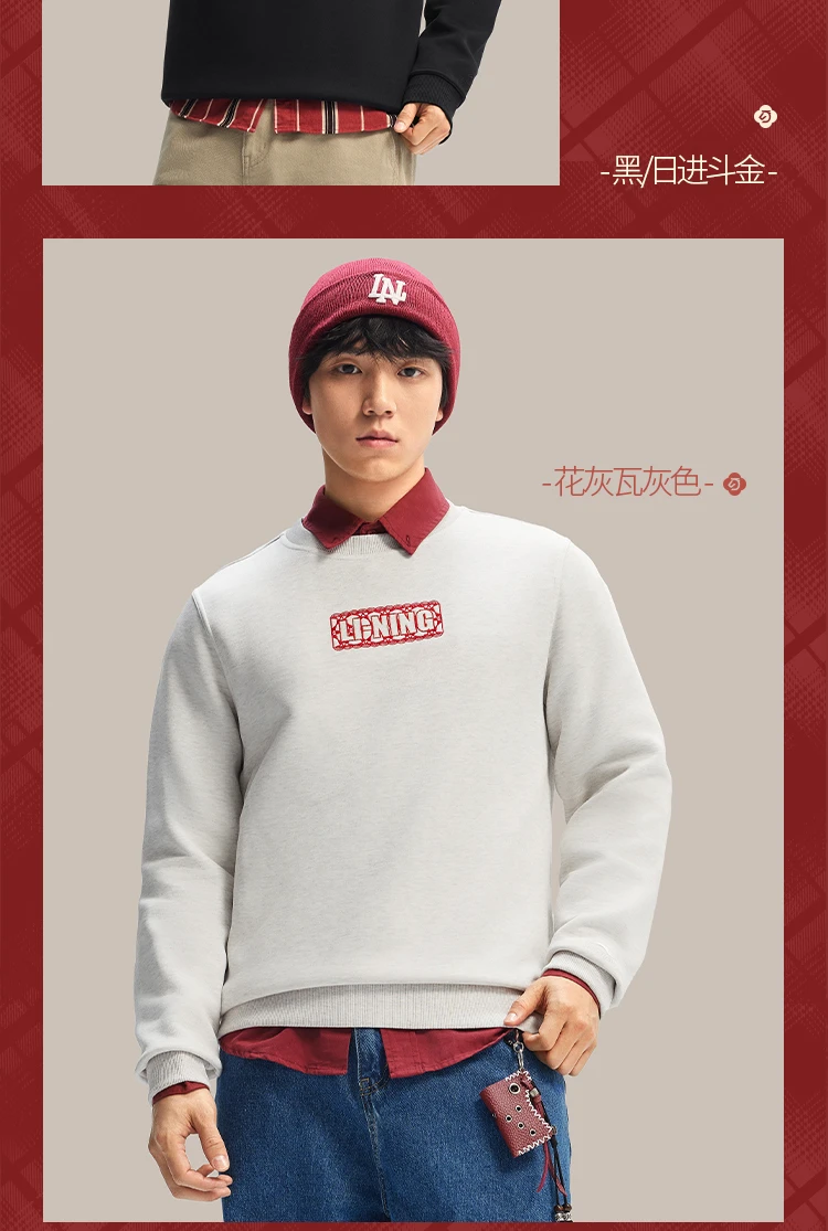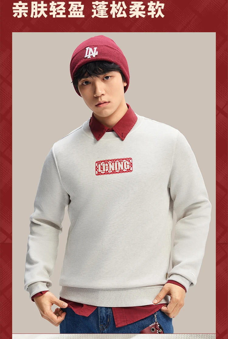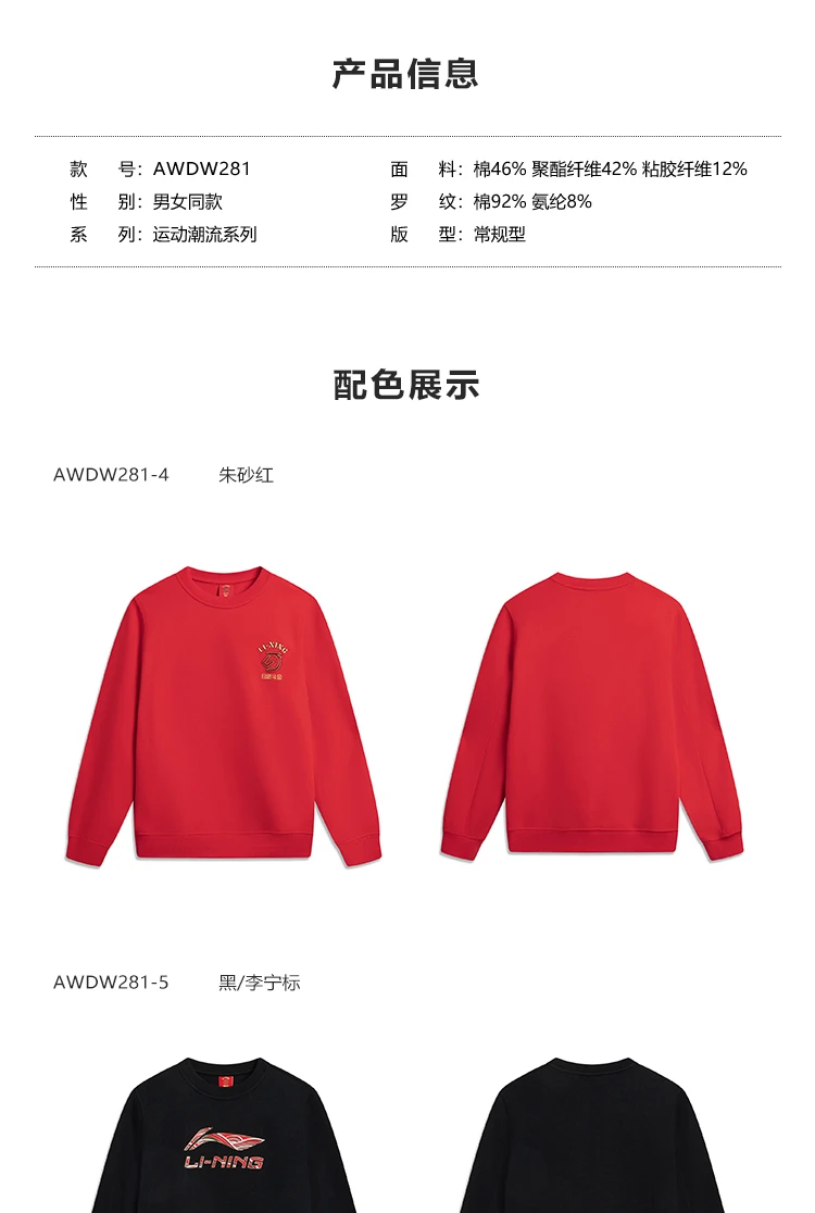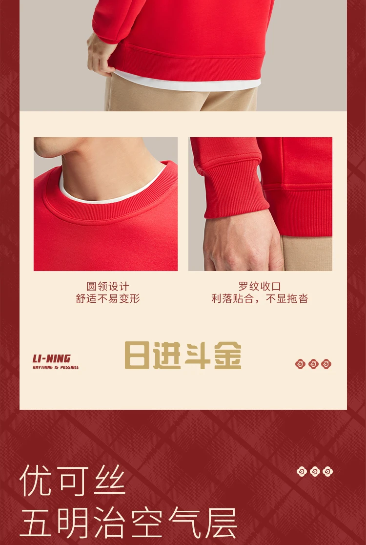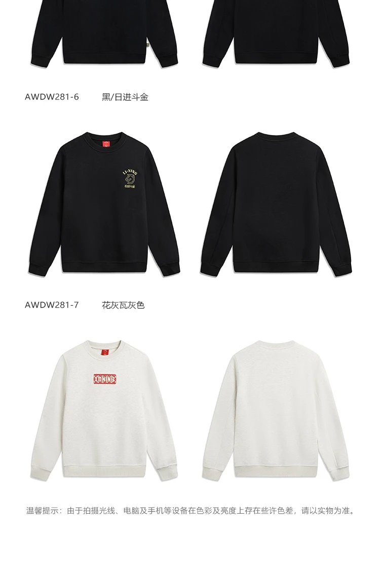 李宁日进斗金系列男女同款易去污套头卫衣AWDW281