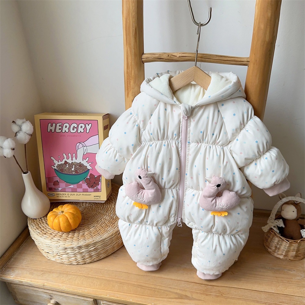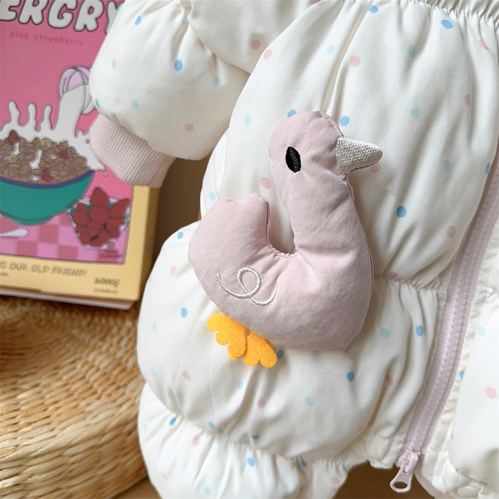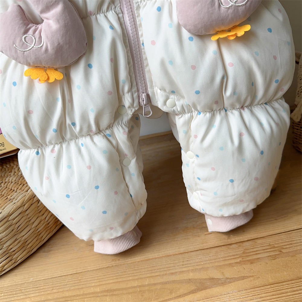 【韩系甜美鸭鸭!萌趣外出必备】婴儿冬装加厚保暖棉衣韩版女宝宝蝴蝶结小鸭子连体衣冬季外出爬服。hb