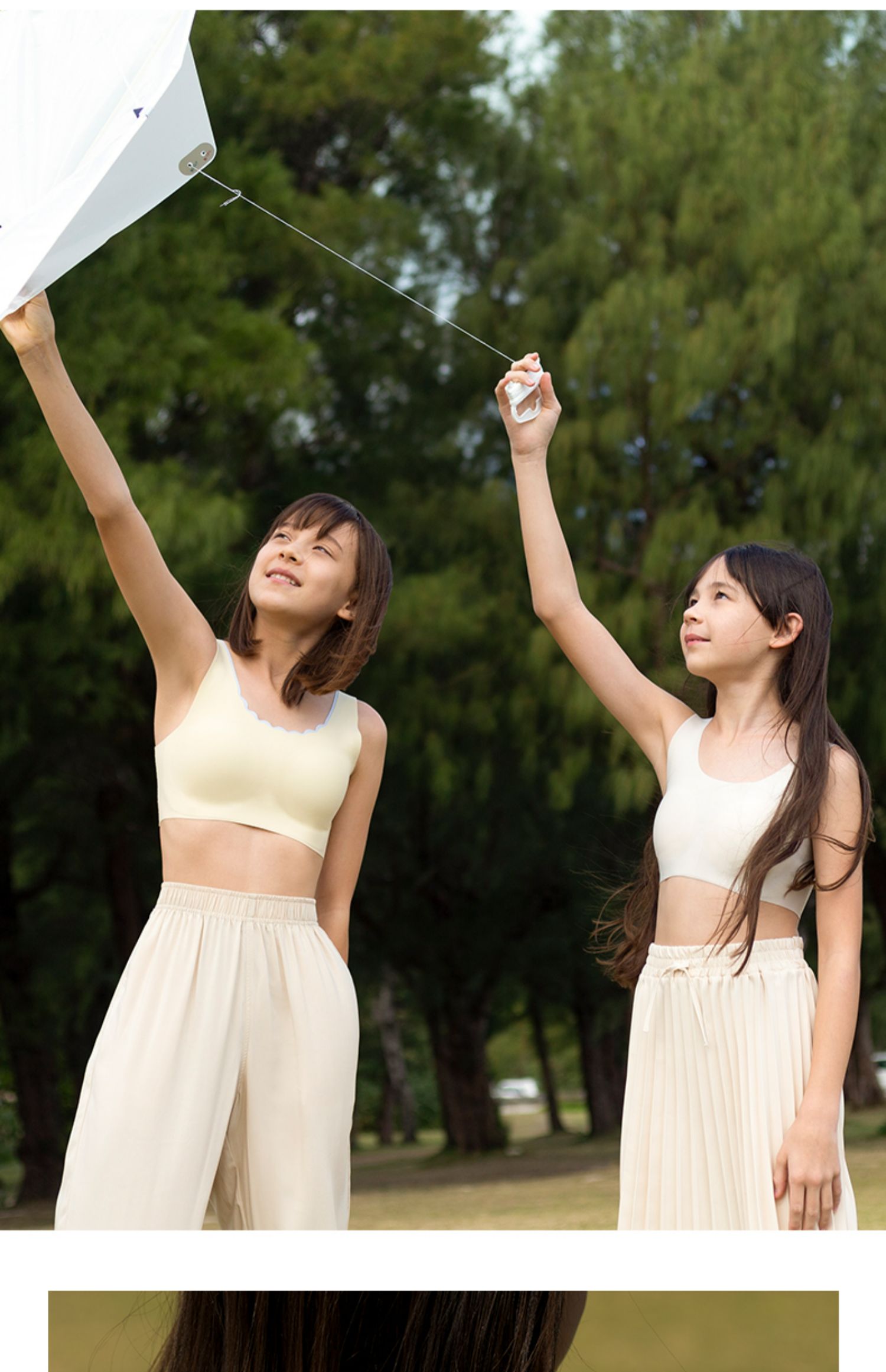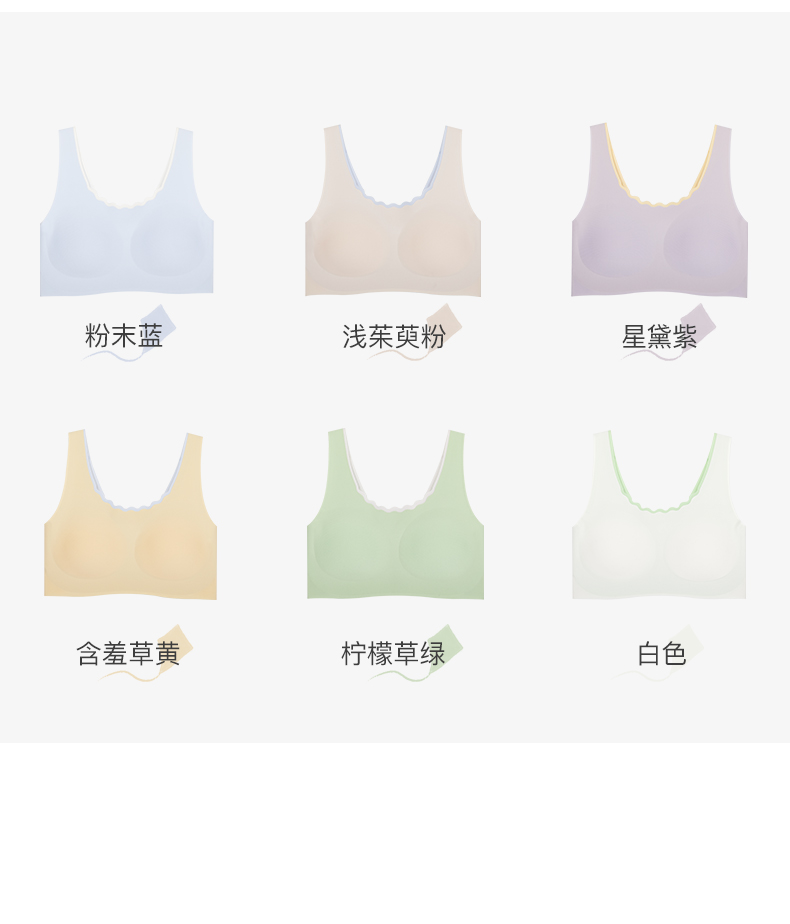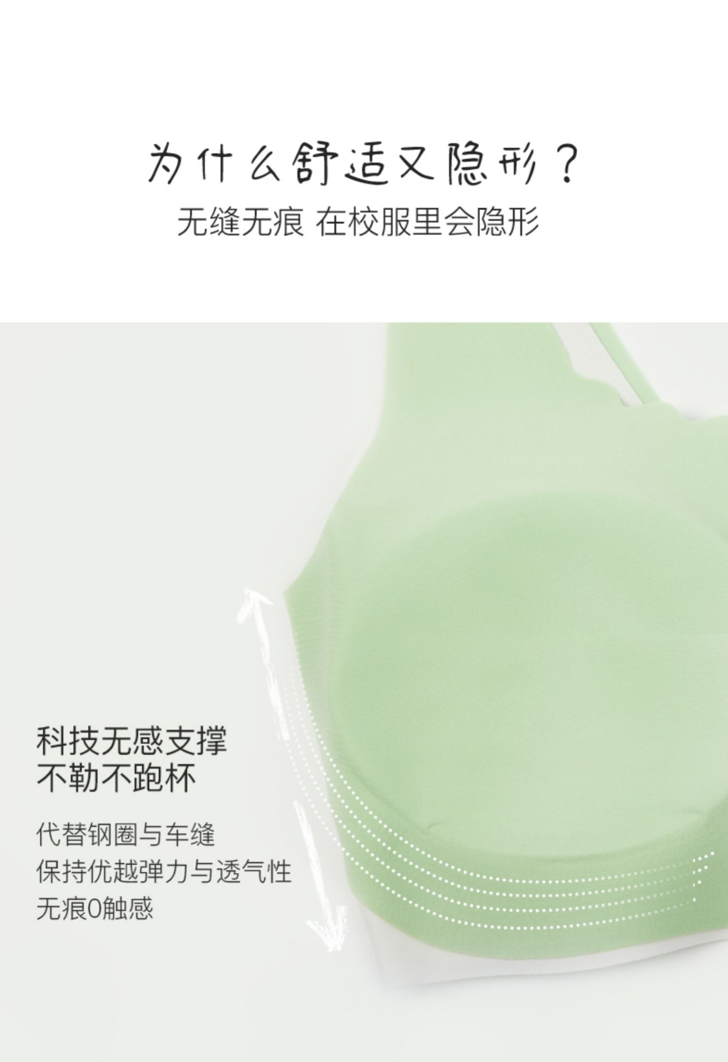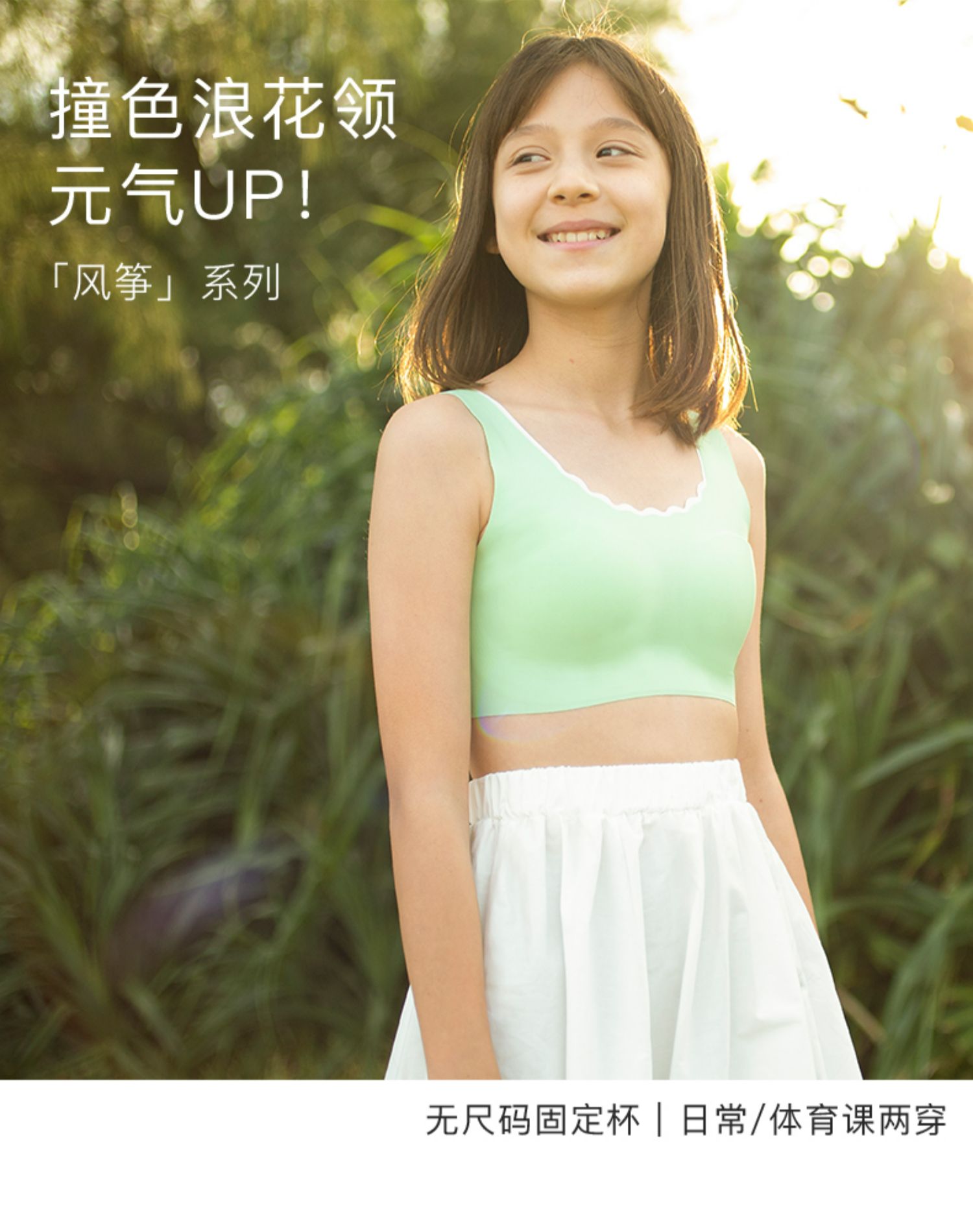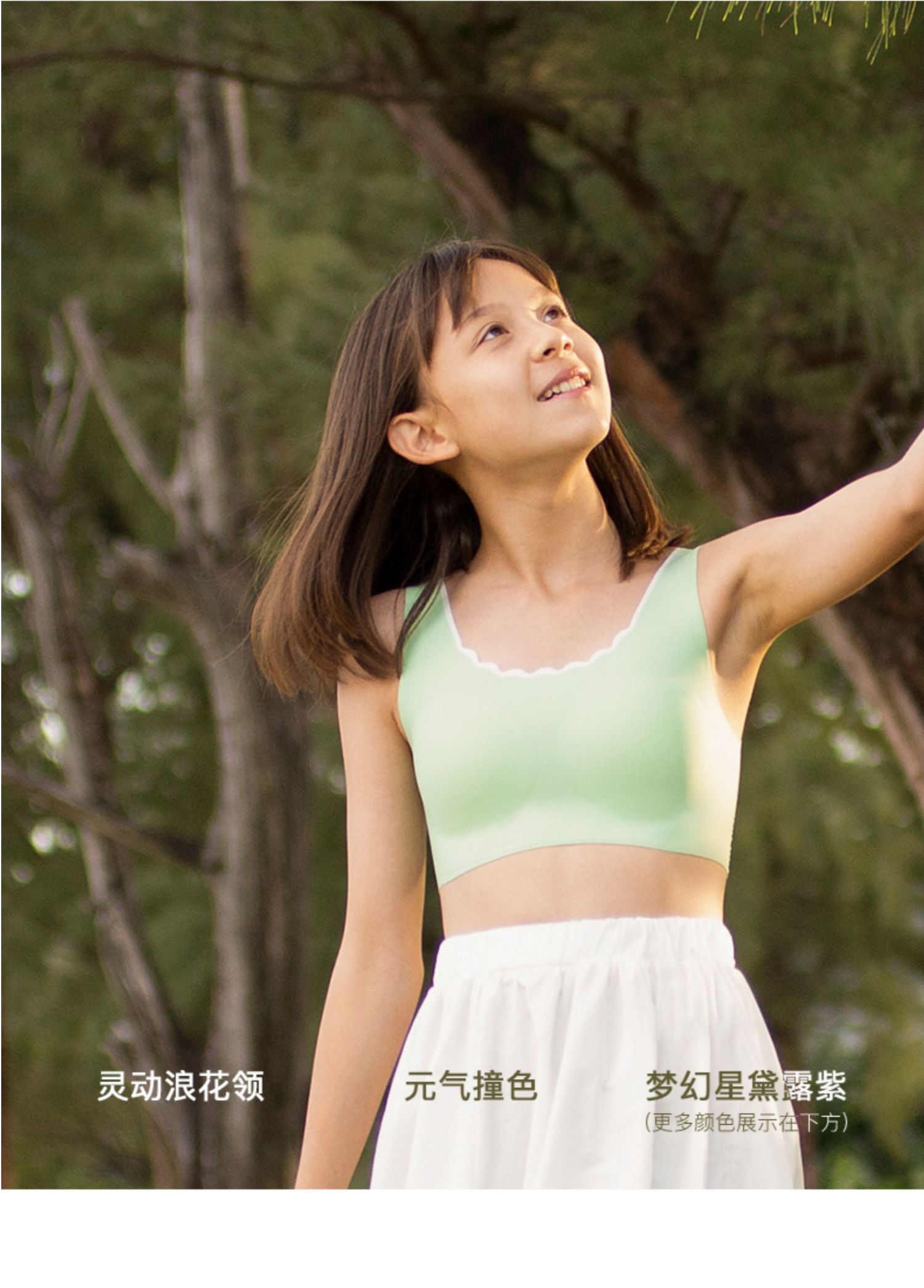 likeuu无尺码小小浪花领口撞色文胸少女内衣新品女童发育期背心