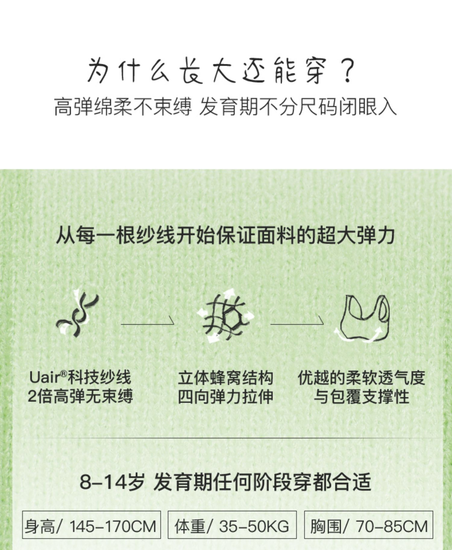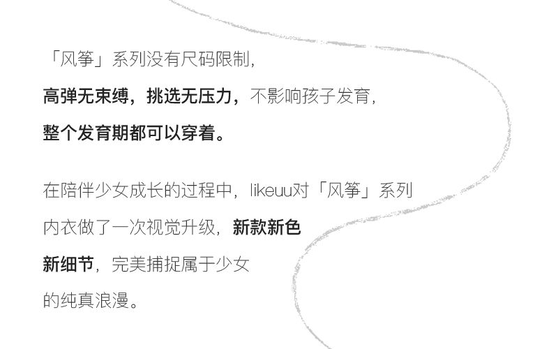 - likeuu是专注于为6~15岁的青少年创造柔软、无束缚的成长体验,以好奇心为灵感的成长发育期贴身衣物品牌。likeuu的产品覆盖内衣、内裤、保暖衣、家居服、运动等品类。
