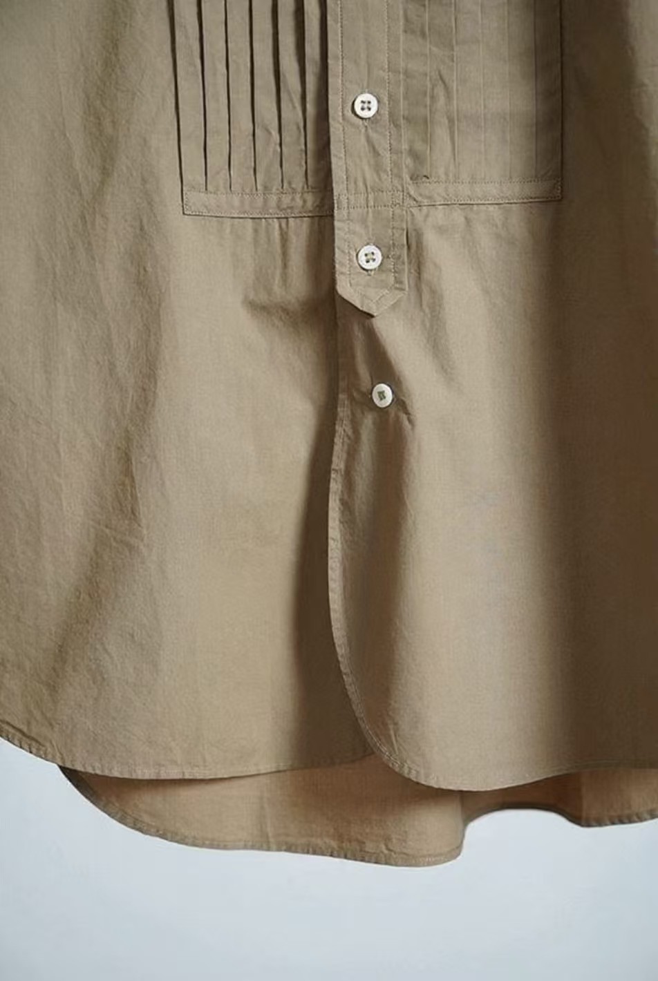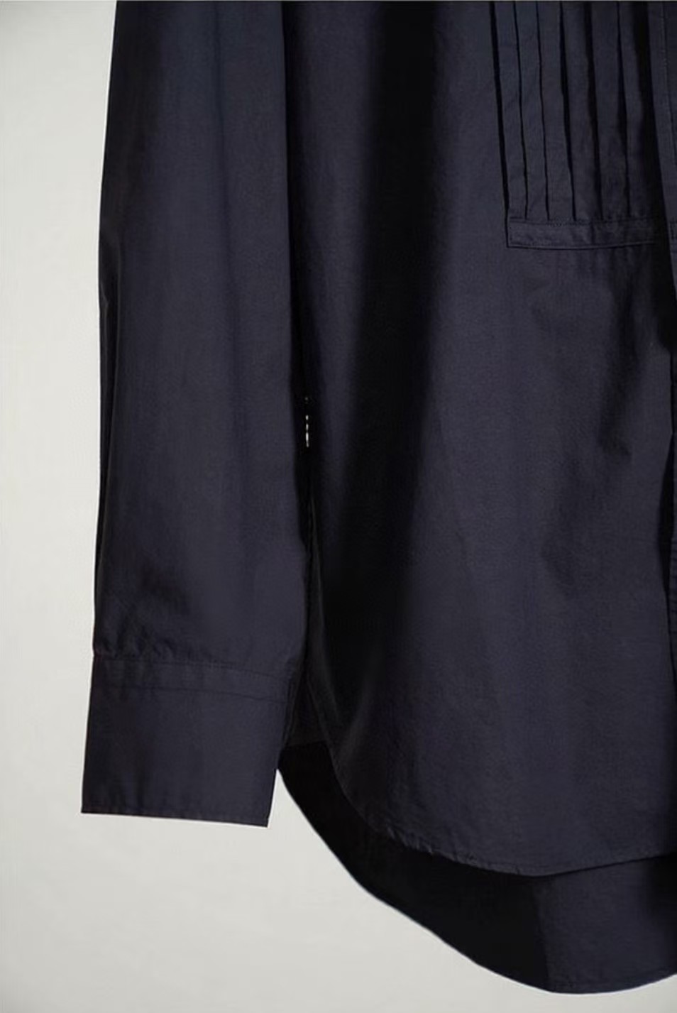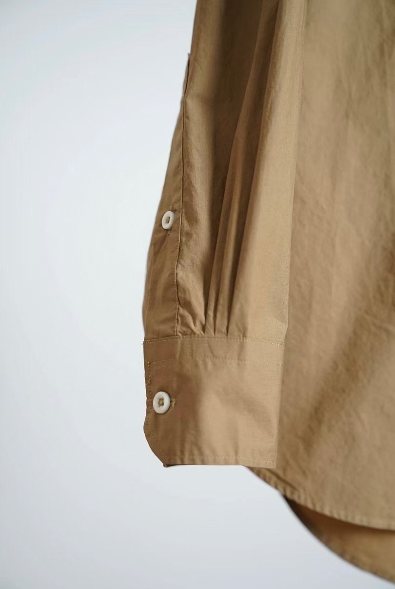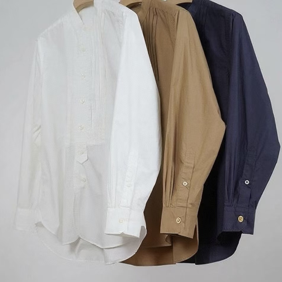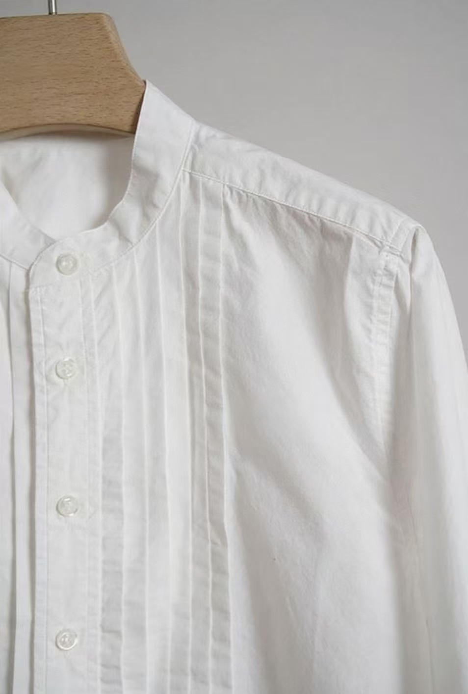 搭配性也会更高一些,整个款式是经典的小立领搭配胸前双组风琴褶设计,层次感拉满!手工将一根一根的褶皱高温熨烫以及缝纫定型的打褶设计,赋予这件衬衣独特的风格,简洁、大气!和T恤叠穿搭配阔腿裤穿出来是很休闲又随性的感觉