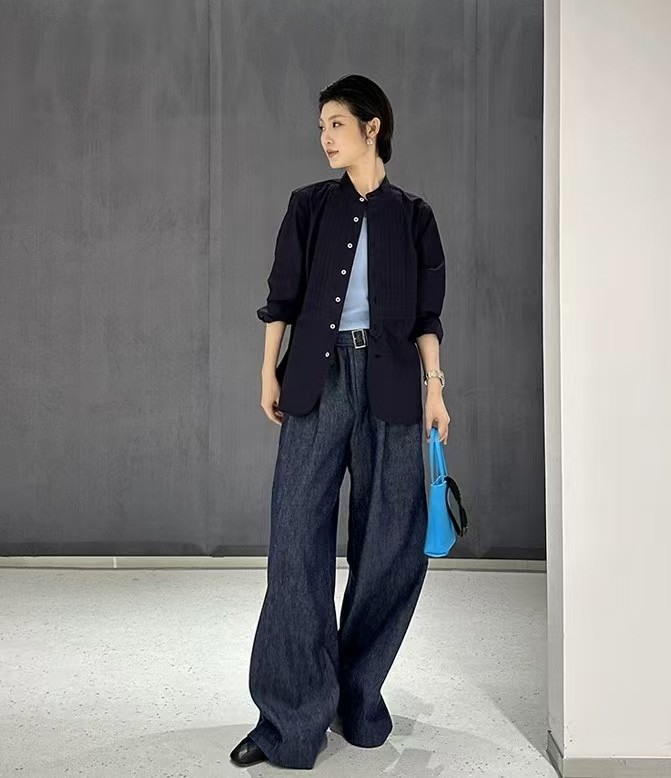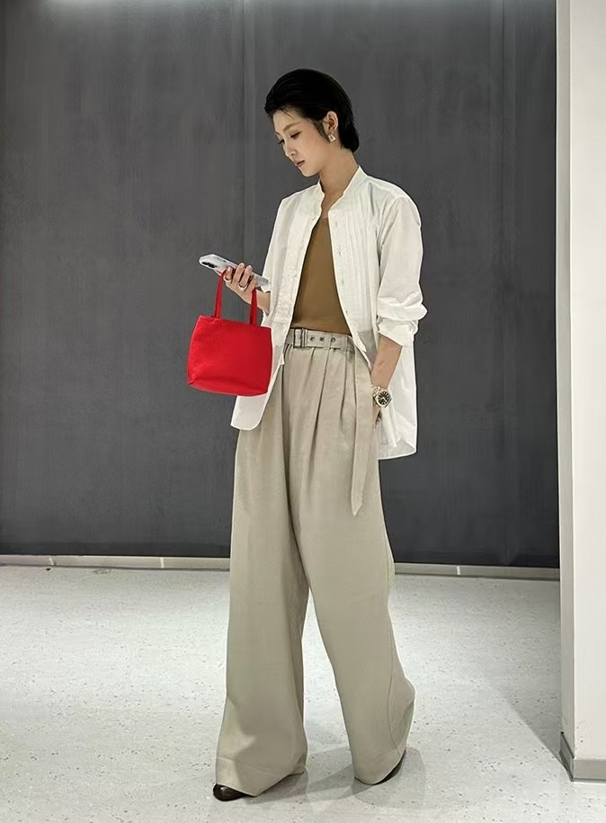 但是它一点都不随意!篙级感十足!JI简又很帅气的风格,如果说单穿搭配半裙又是另一种味道,中和了整个款式的帅气感,上身篙级又非常优雅!但是搭配西装外套,又是非常率性又干练的风格!有种说不出的潮感~~面料用的是非常有筋骨感的纯棉面料,定织定纺,高密度全棉,表面有淡淡珍珠般的光泽感!