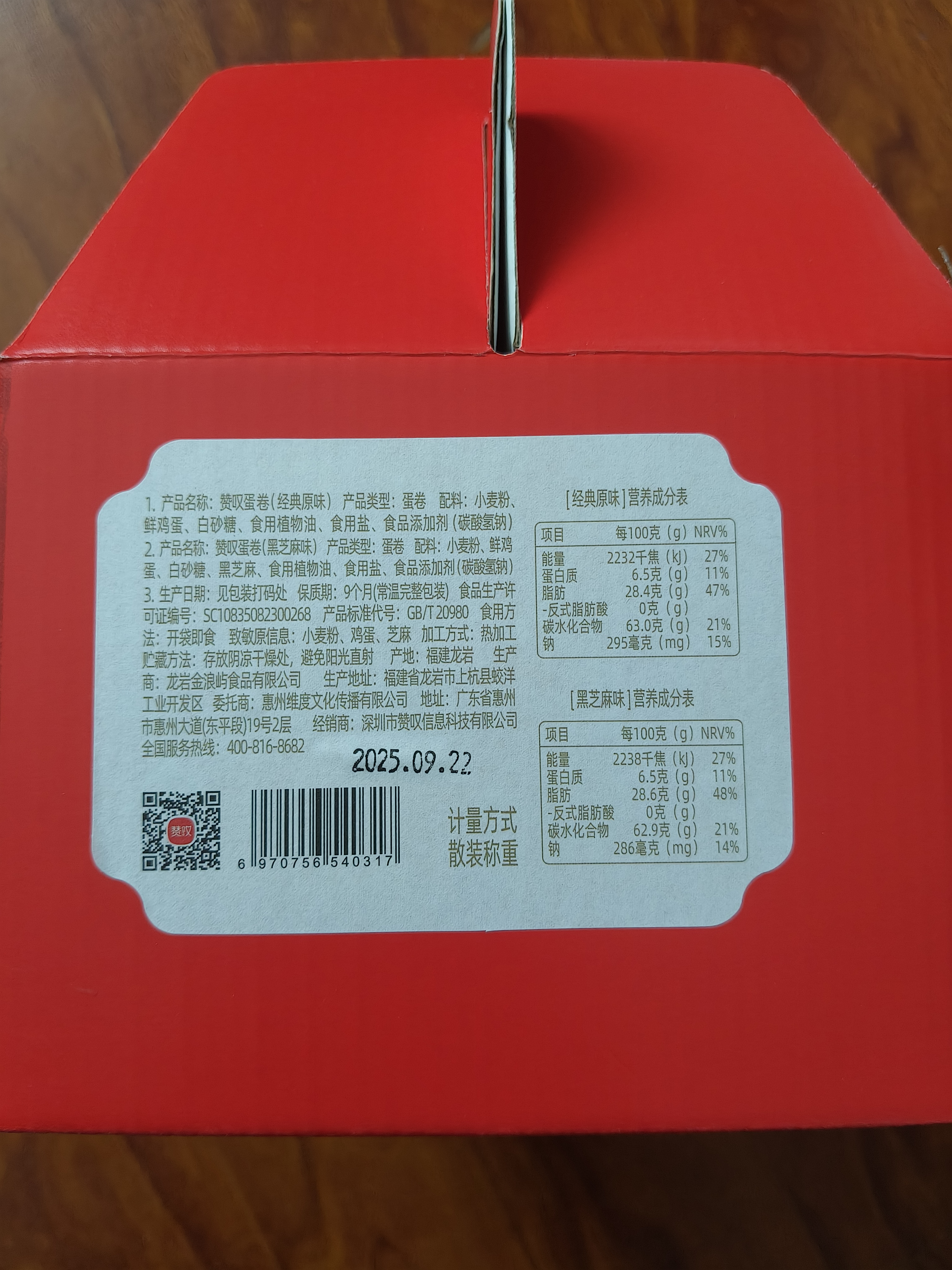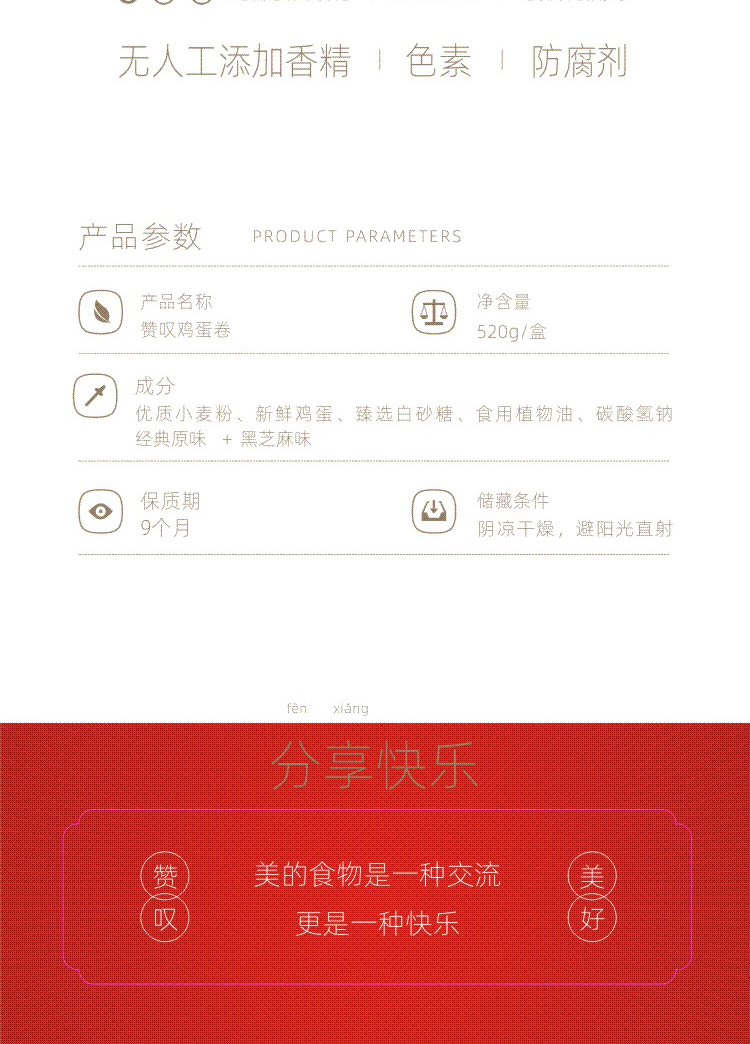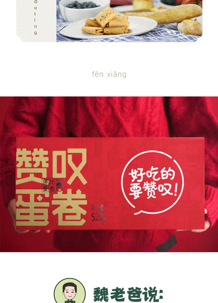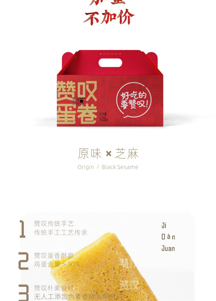 赞叹鸡蛋卷 520g礼盒装(原味+芝麻)混合装独立小包装 休闲食品