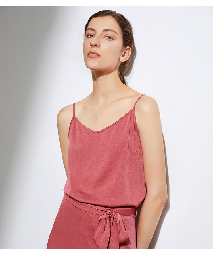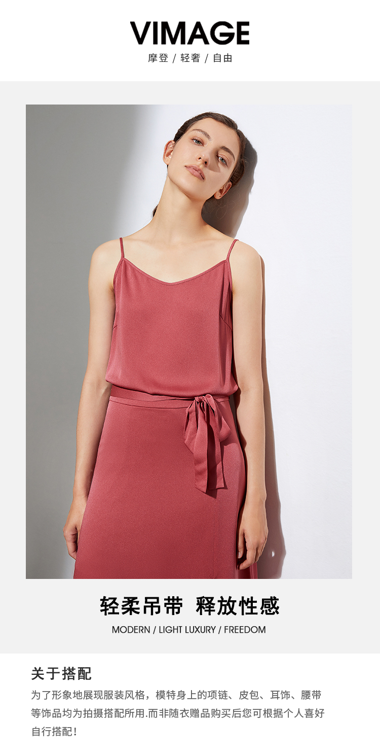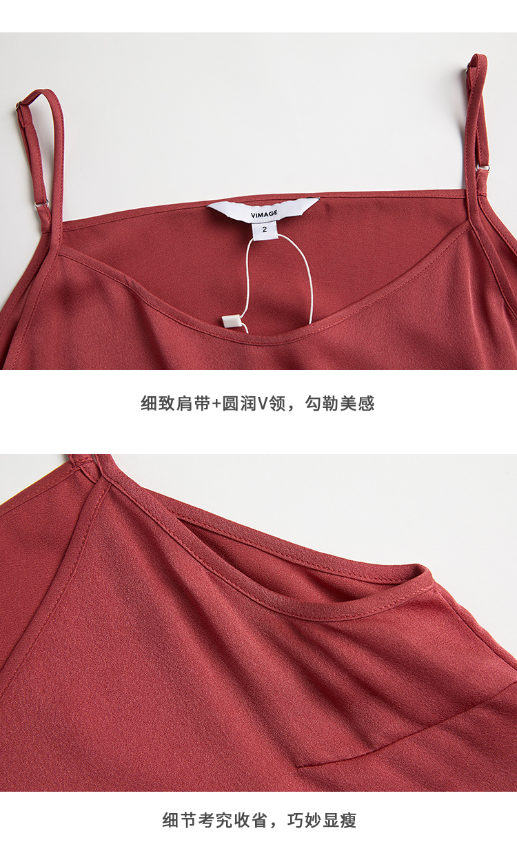 VIMAGE纬漫纪夏季设计感小众轻熟吊带雪纺小上衣女打底衫VA2113107