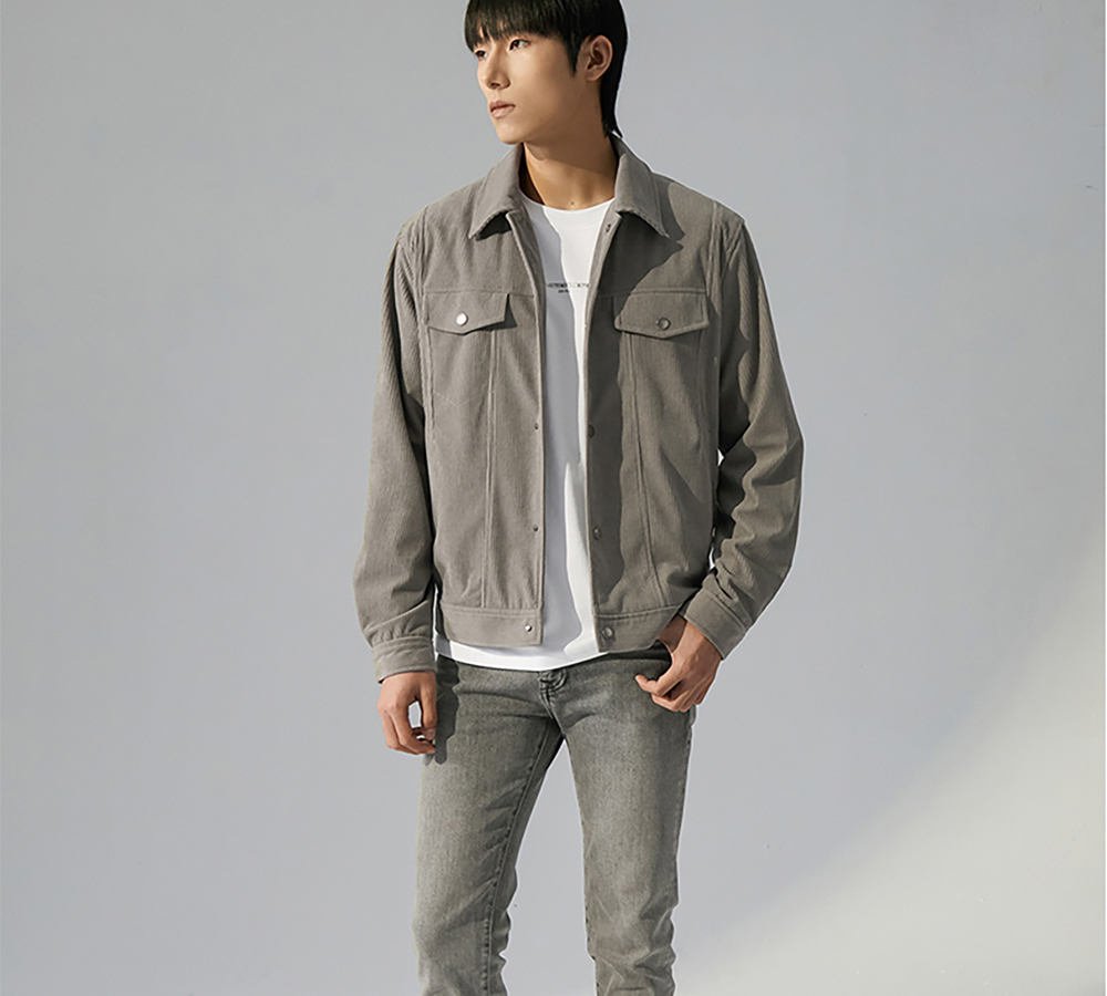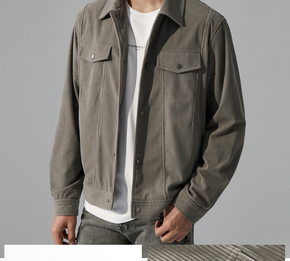 HIM漢崇 柔软灯芯绒翻领夹克男潮流高端复古休闲短款外套2025秋季