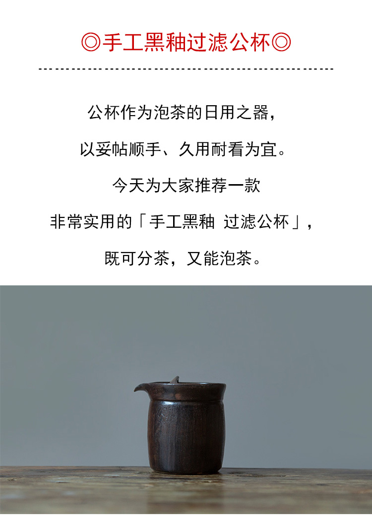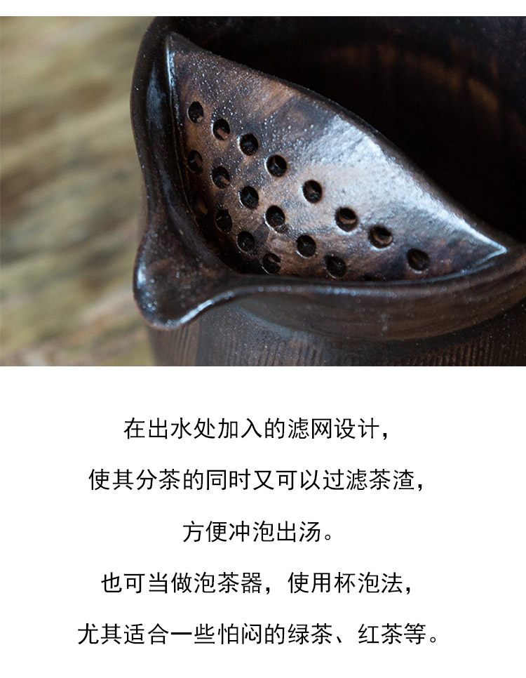 茶香记 手工黑釉 过滤公杯 泡茶分茶两用 质朴天然 出水流畅