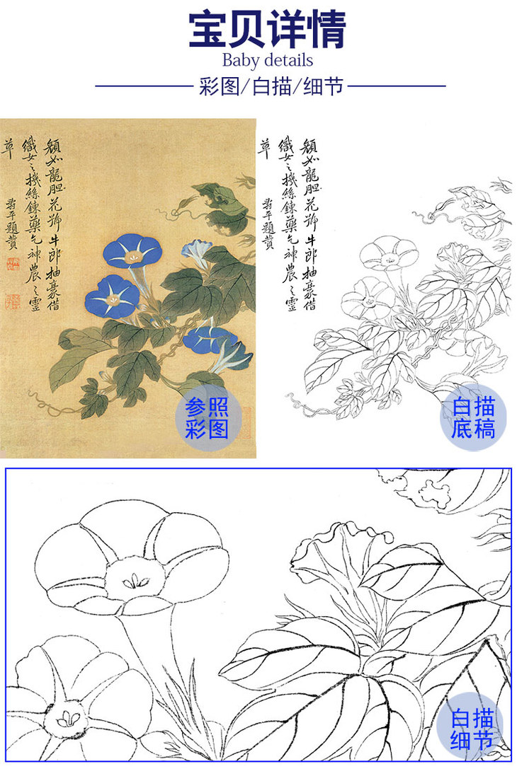 工笔花鸟白描底稿-周中耀牡丹小品《二乔》-多种白描尺寸可选-ZY04