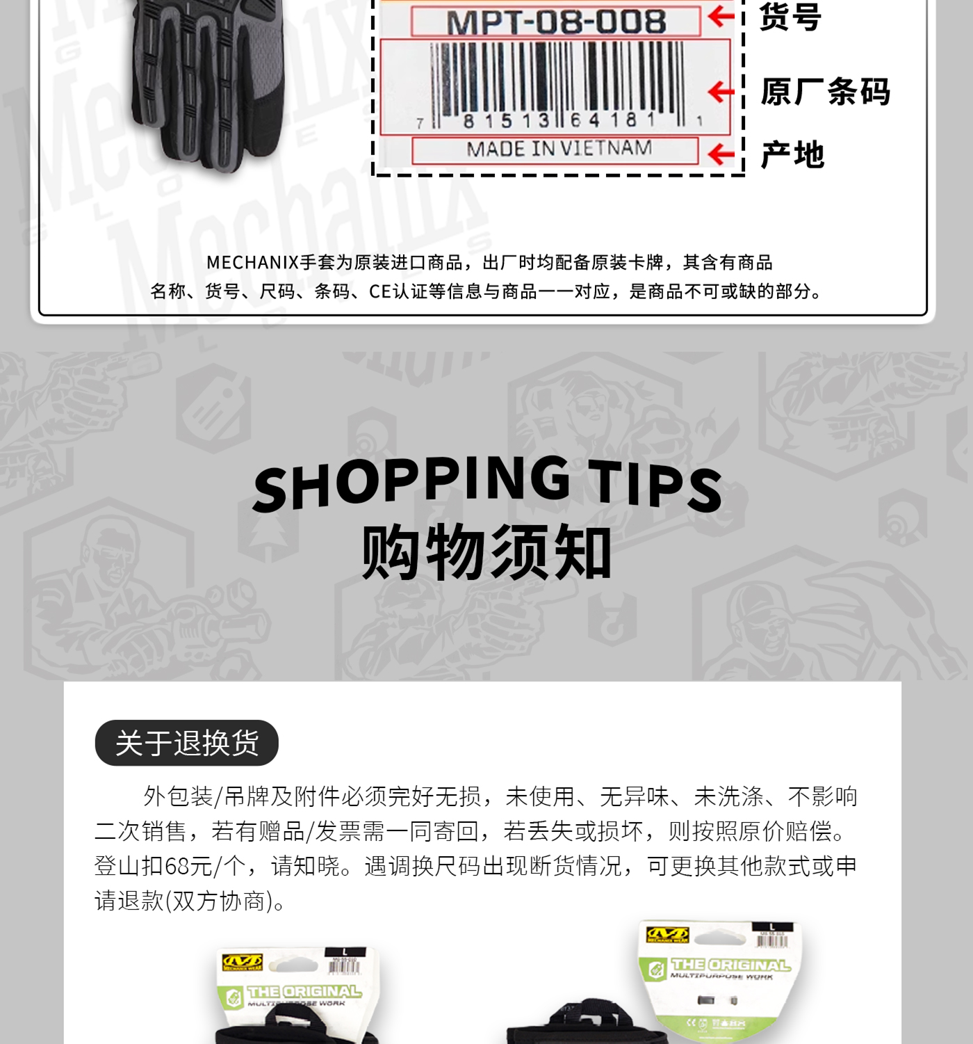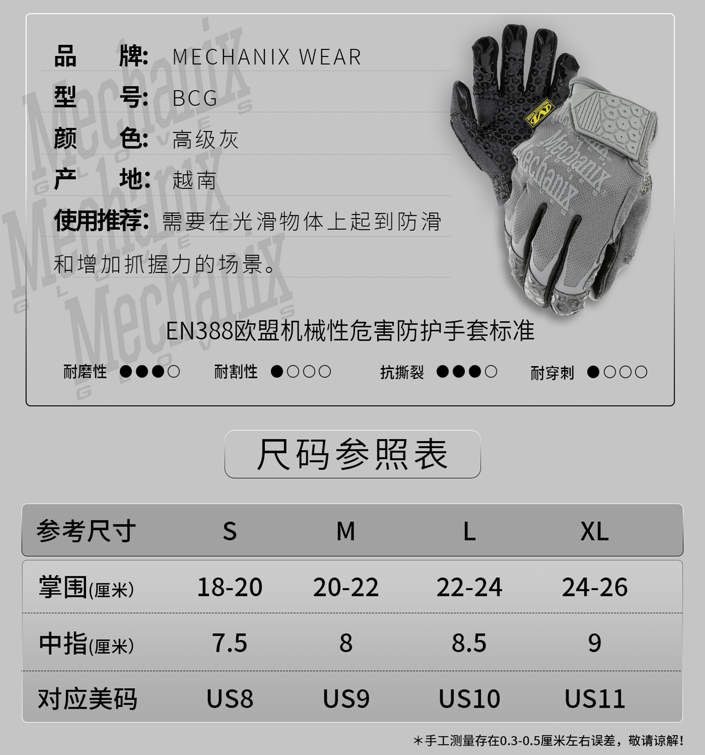 【偏日常款 宽版魔术贴 手背速干 硅胶防滑】美国Mechanix超级技师机械师战术户外射击骑行工作防滑手套BCG(js)ds