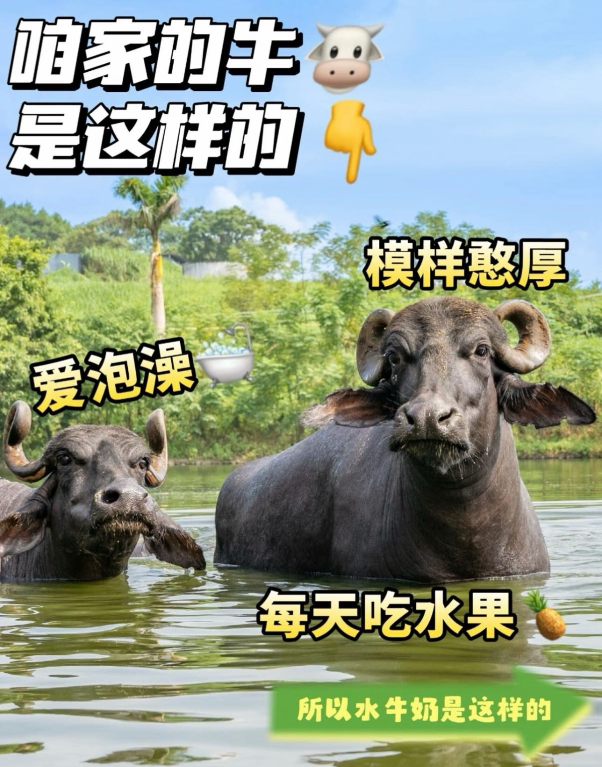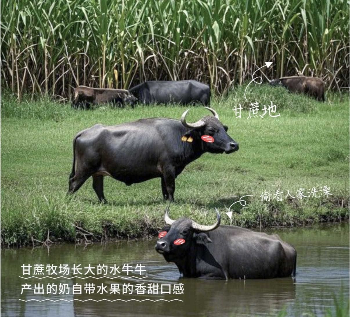 自有甘蔗牧场专属奶源,水牛吃甘蔗和菠萝