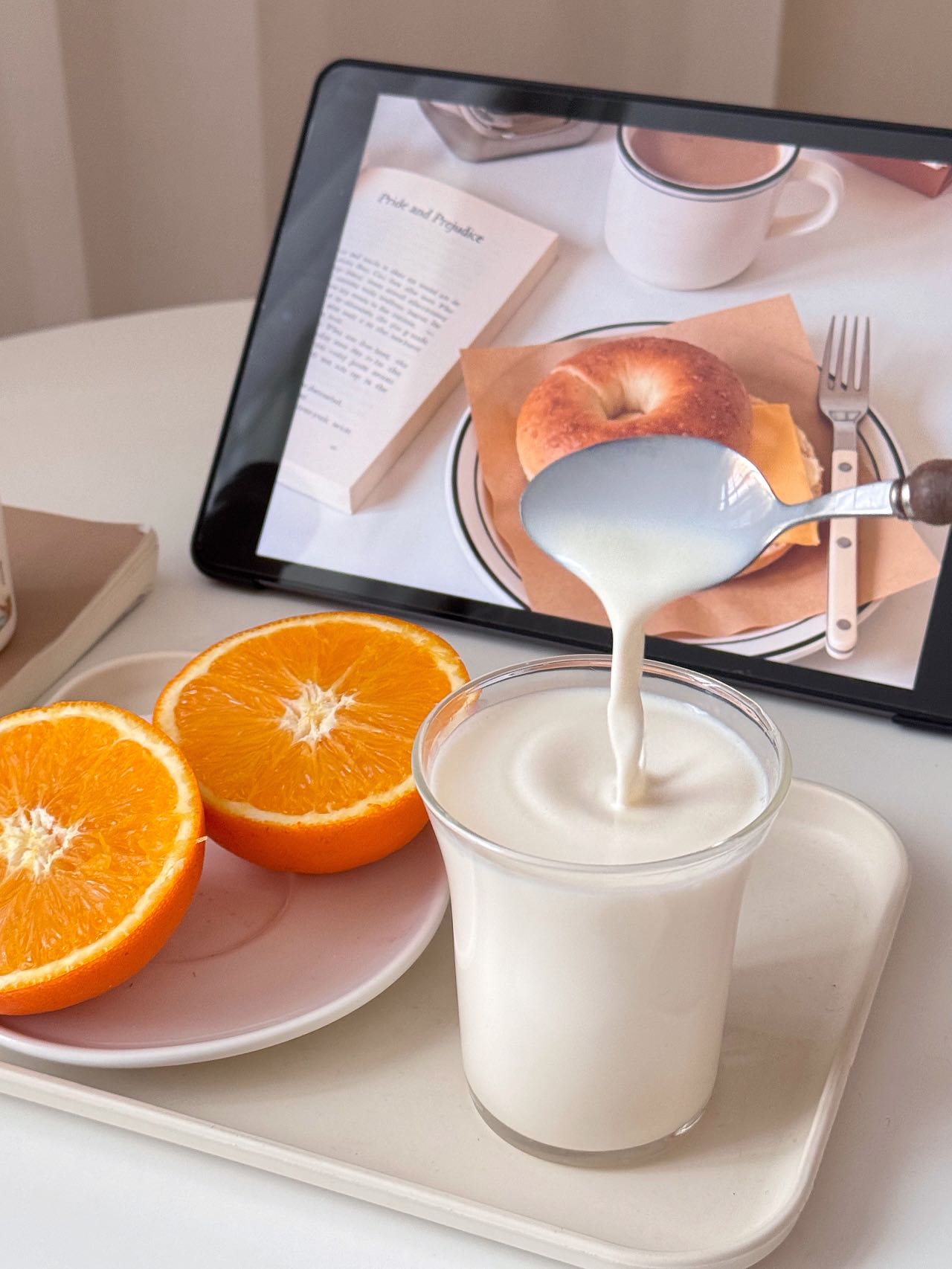 冲咖啡秒变特浓拿铁,早餐配麦片