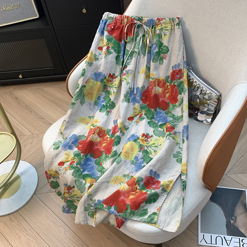 GYH 5130复古休闲百搭休闲文艺简约数码印花半身裙
