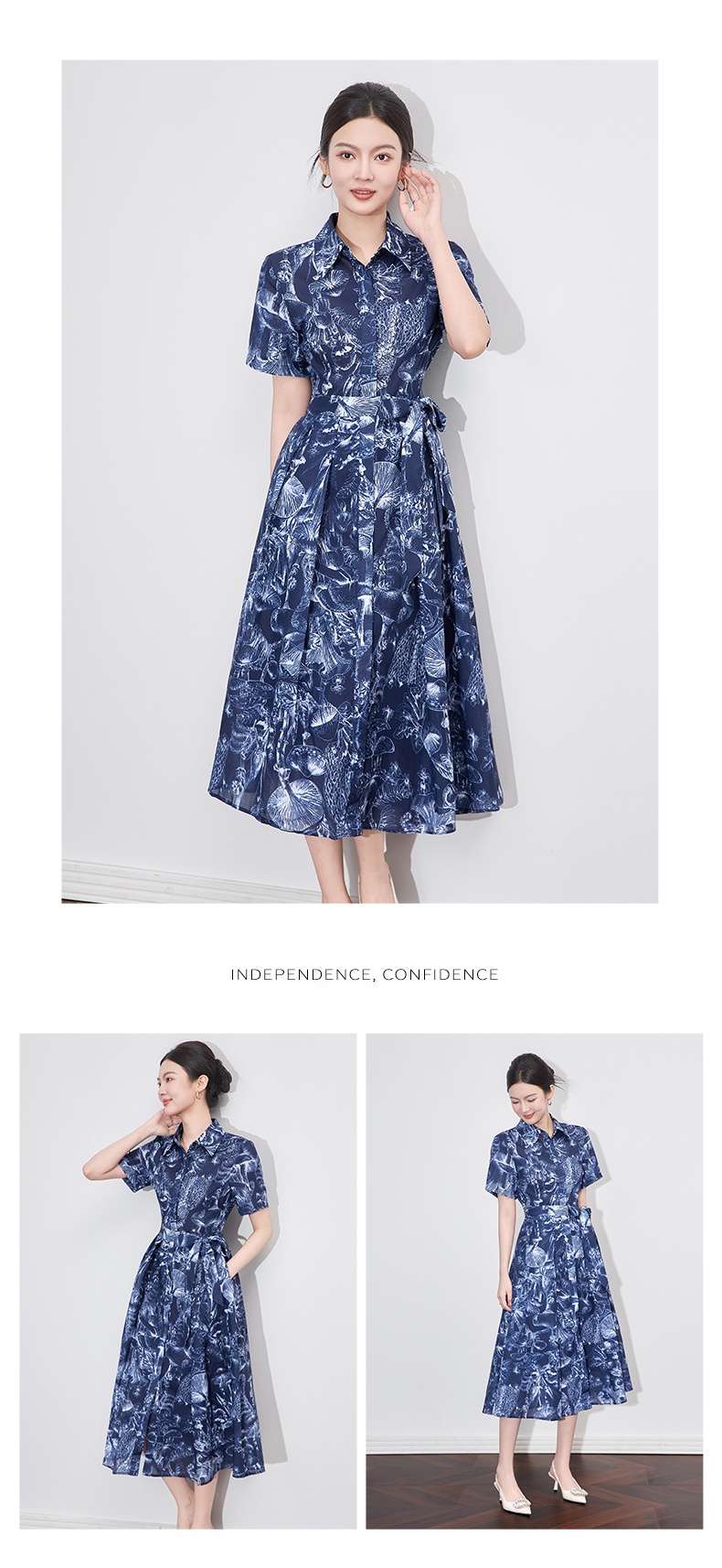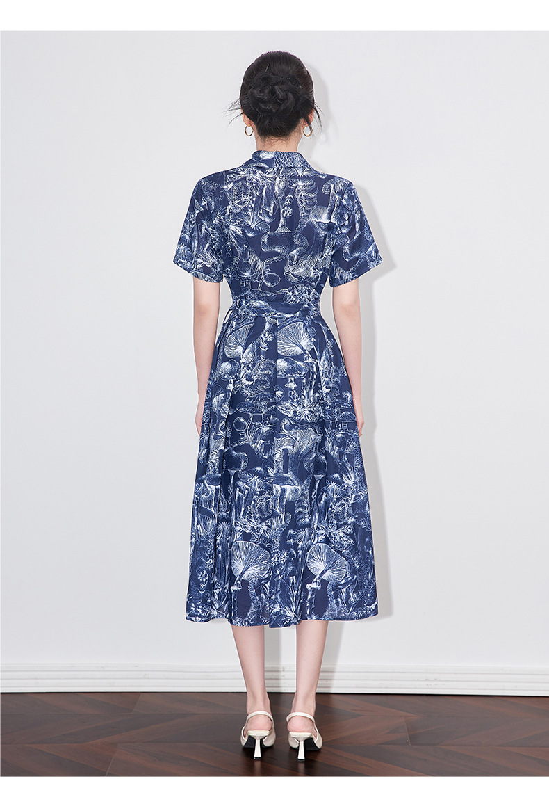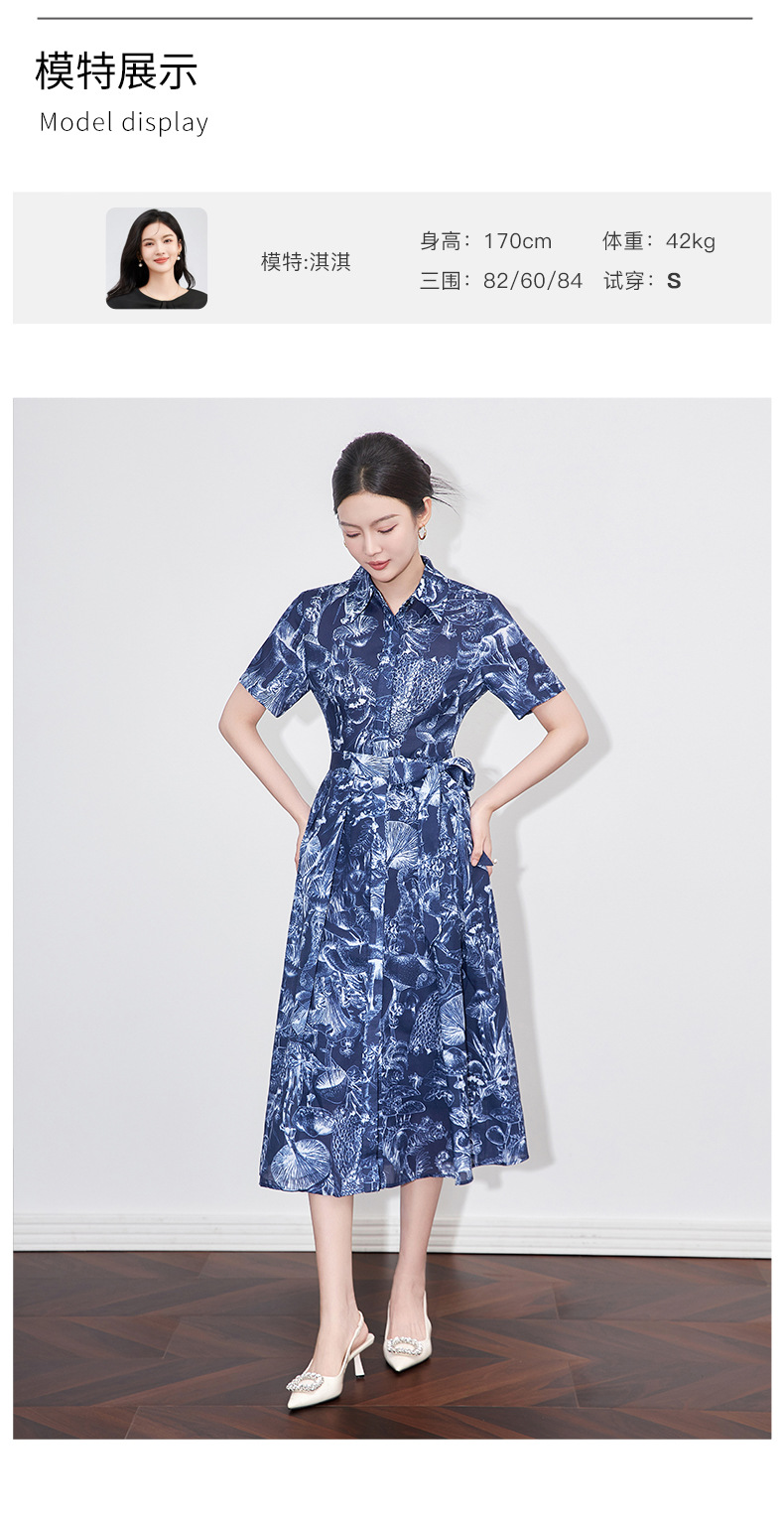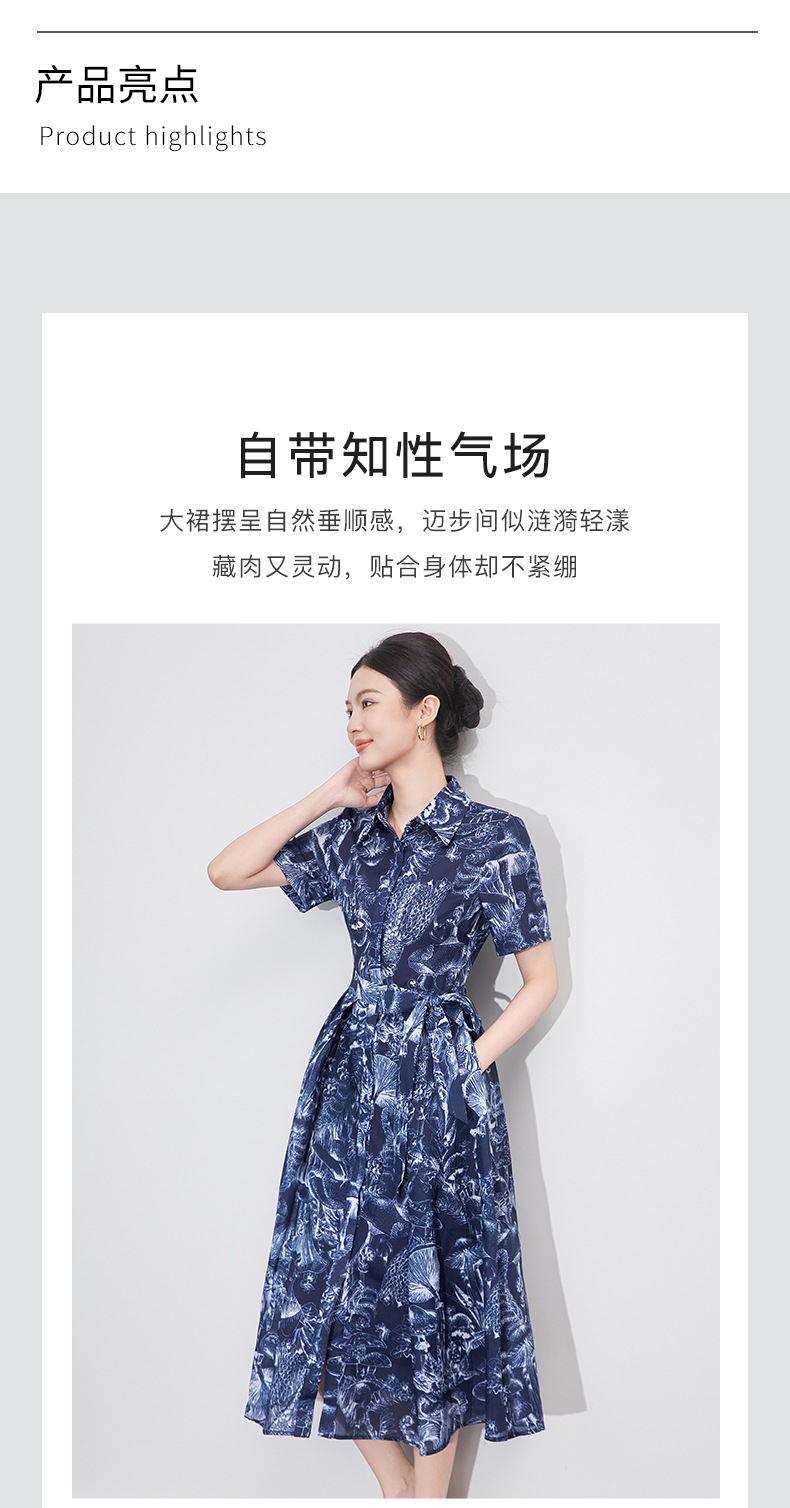 「高货wl」全新升级【铂金会员367/天猫489/差价122】(10204)洛诗琳通勤气质翻领印花连衣裙2025夏季新款度假风衬衫裙