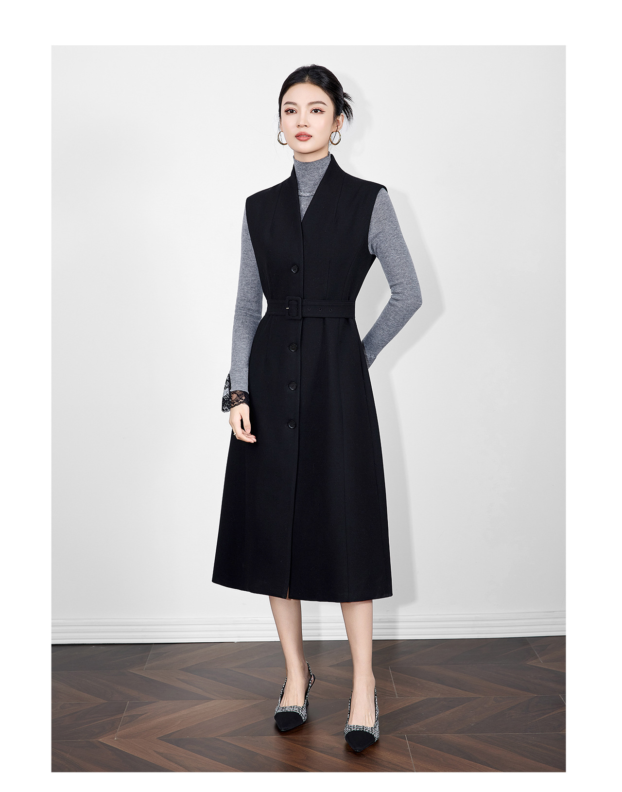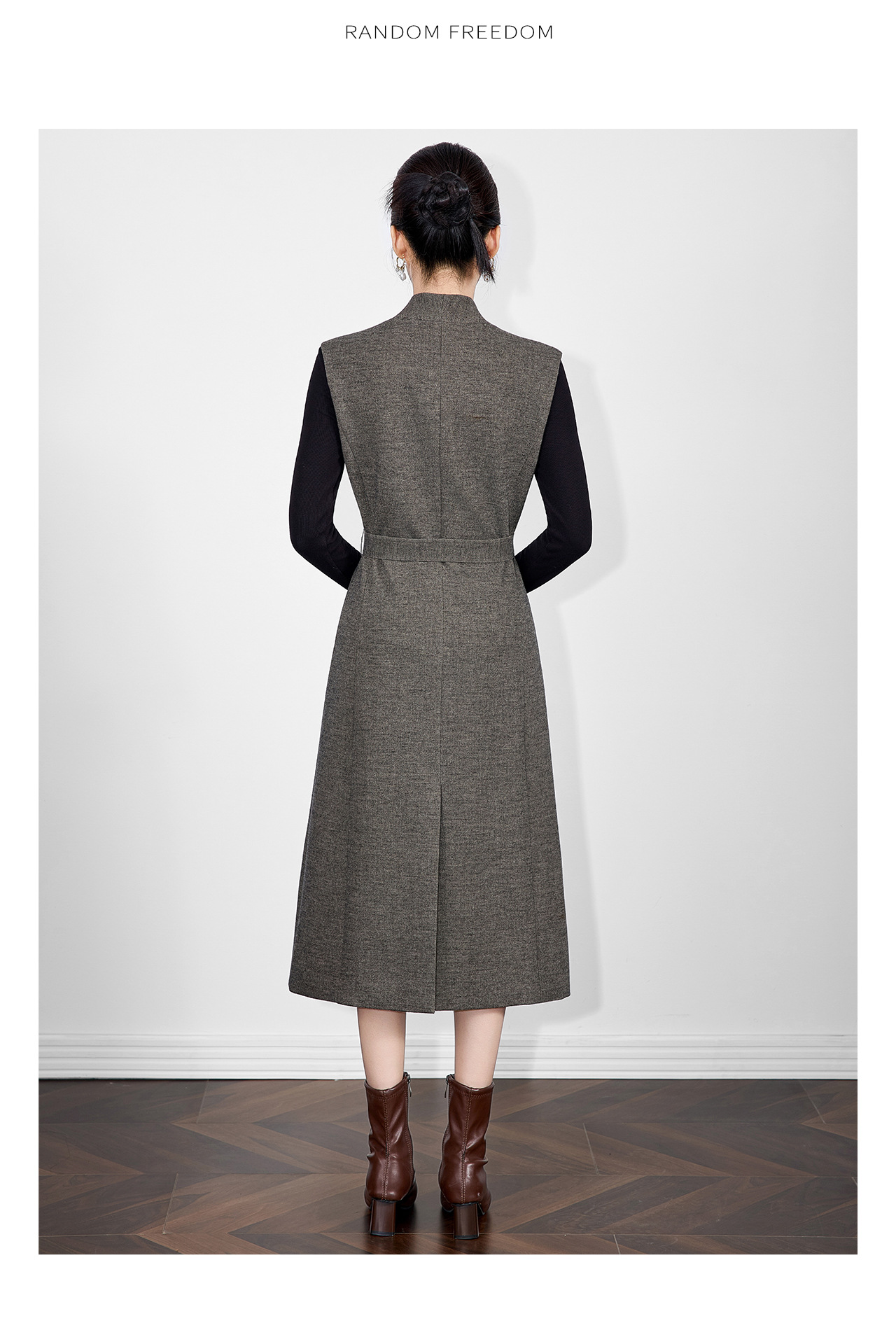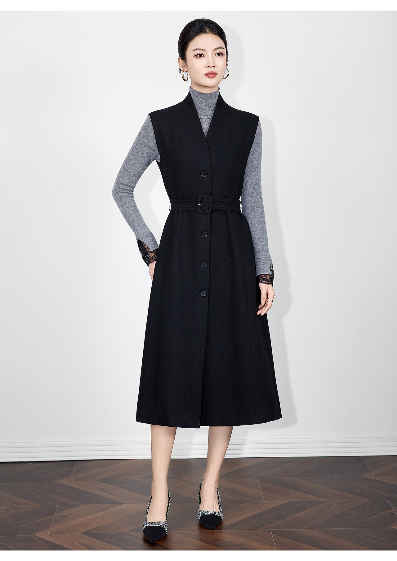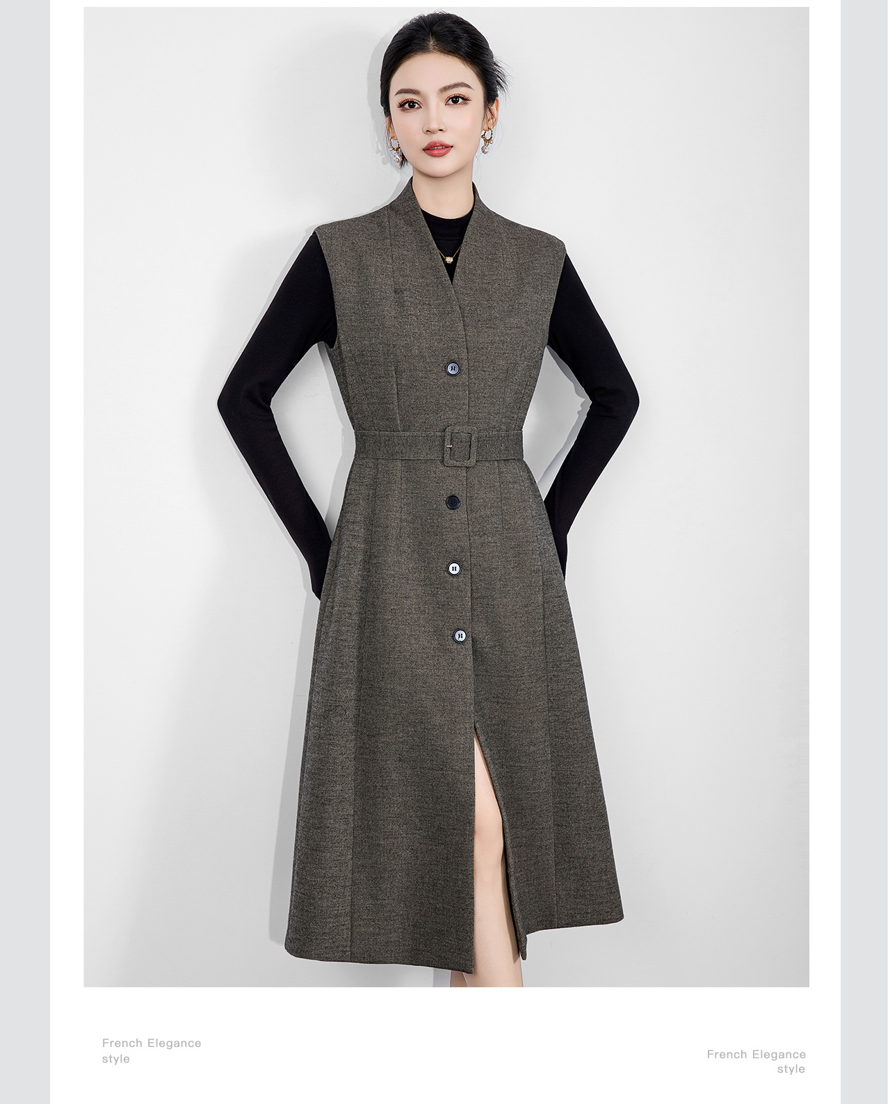 「高货wl」全新升级【铂金会员441/天猫599/差价158】(21317)洛诗琳法式V领斜纹毛呢连衣裙2025秋冬气质收腰背心裙女