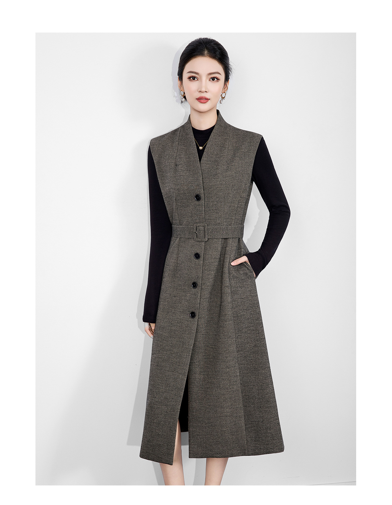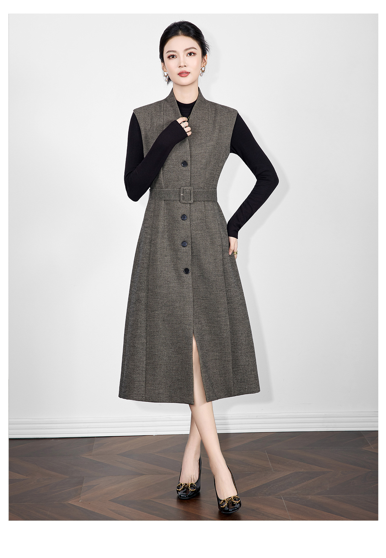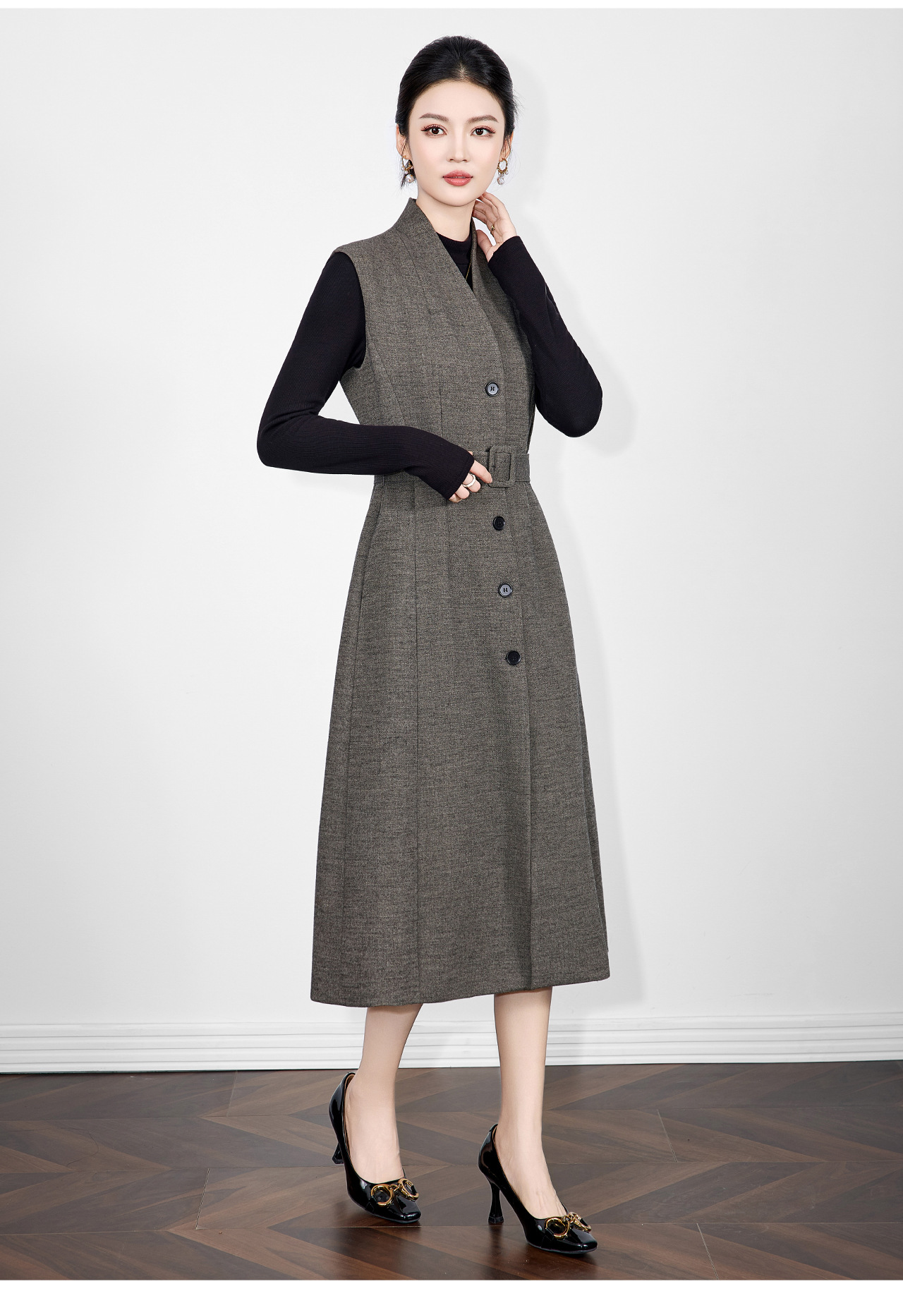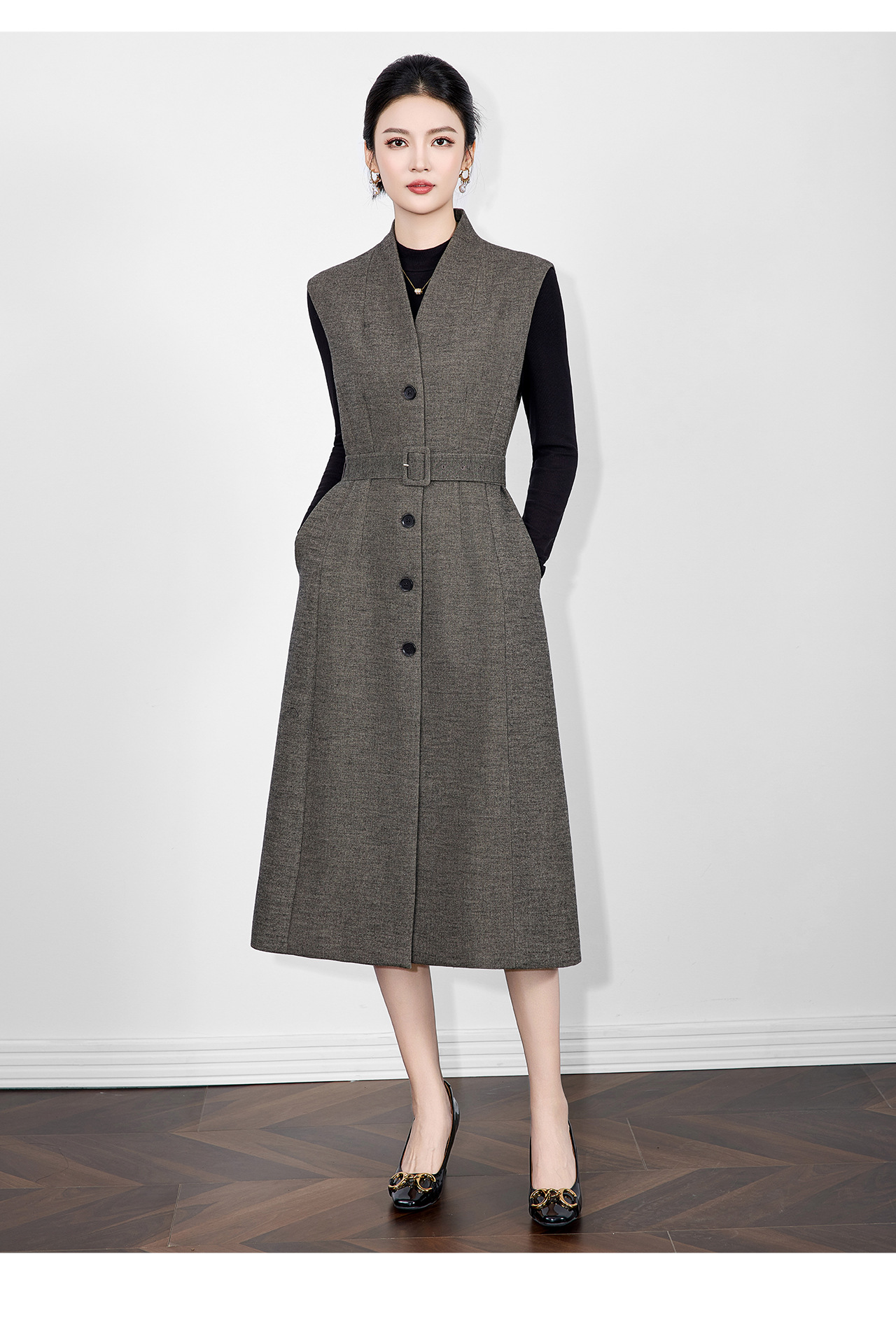 「高货wl」全新升级【铂金会员441/天猫599/差价158】(21317)洛诗琳法式V领斜纹毛呢连衣裙2025秋冬气质收腰背心裙女