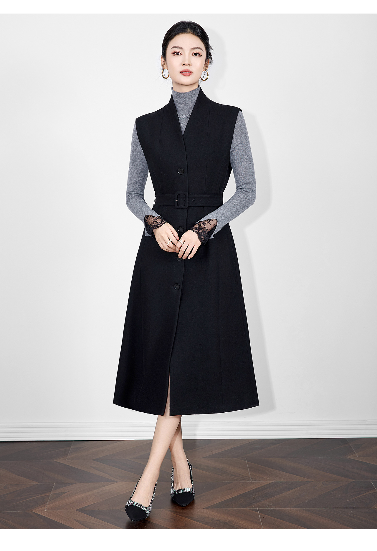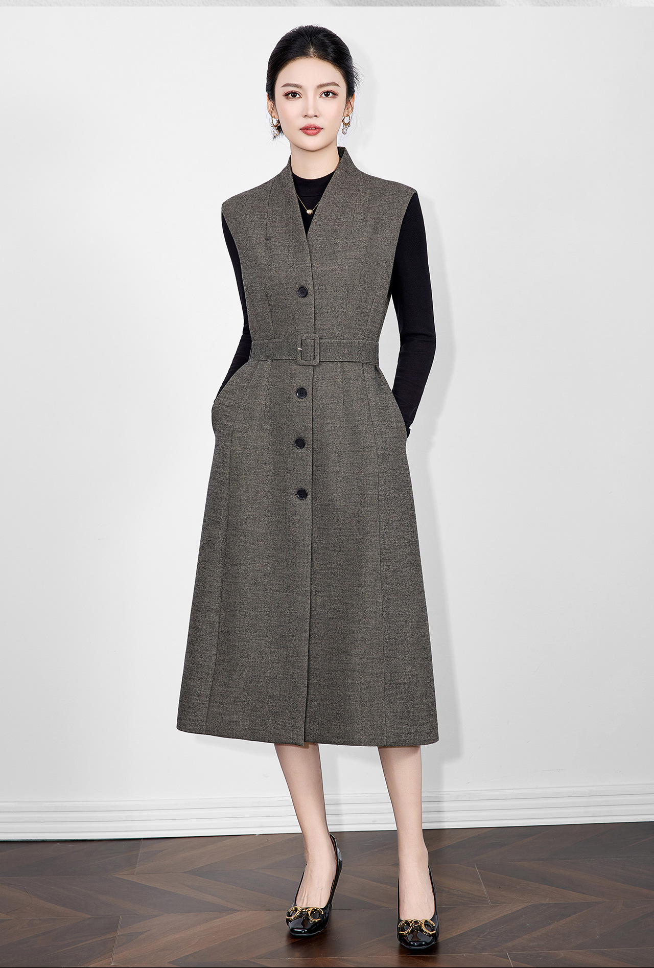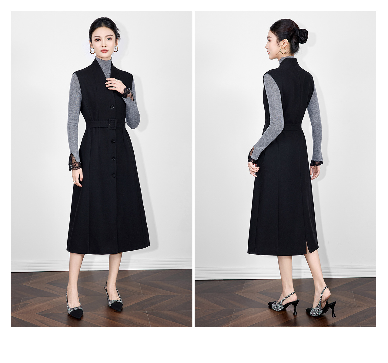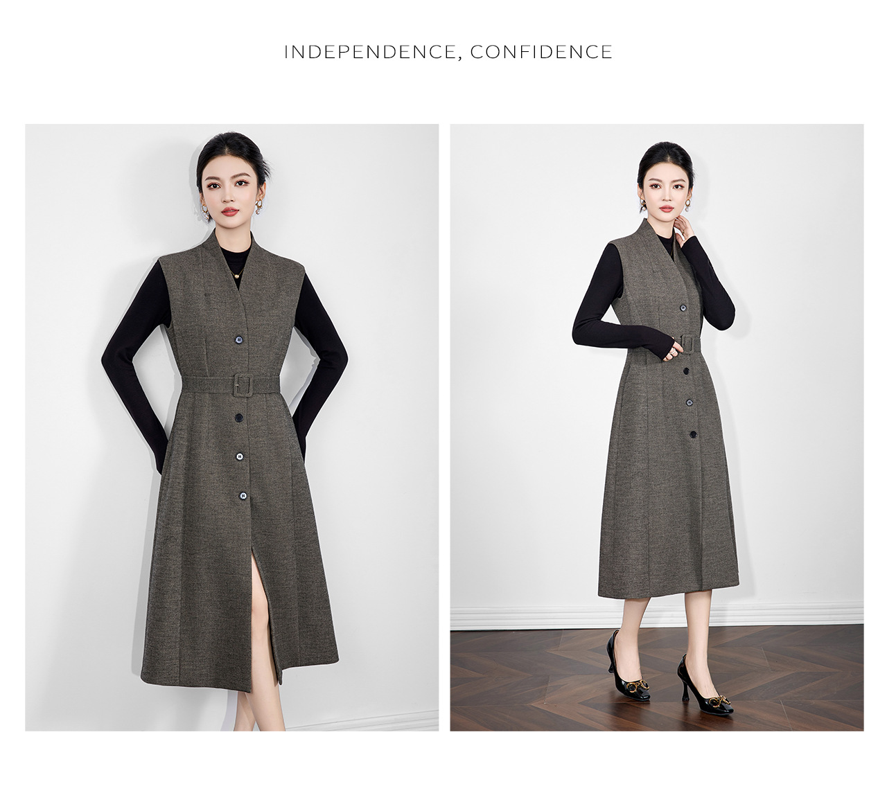 「高货wl」全新升级【铂金会员441/天猫599/差价158】(21317)洛诗琳法式V领斜纹毛呢连衣裙2025秋冬气质收腰背心裙女