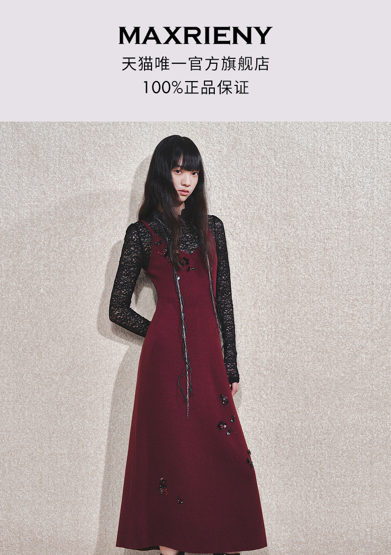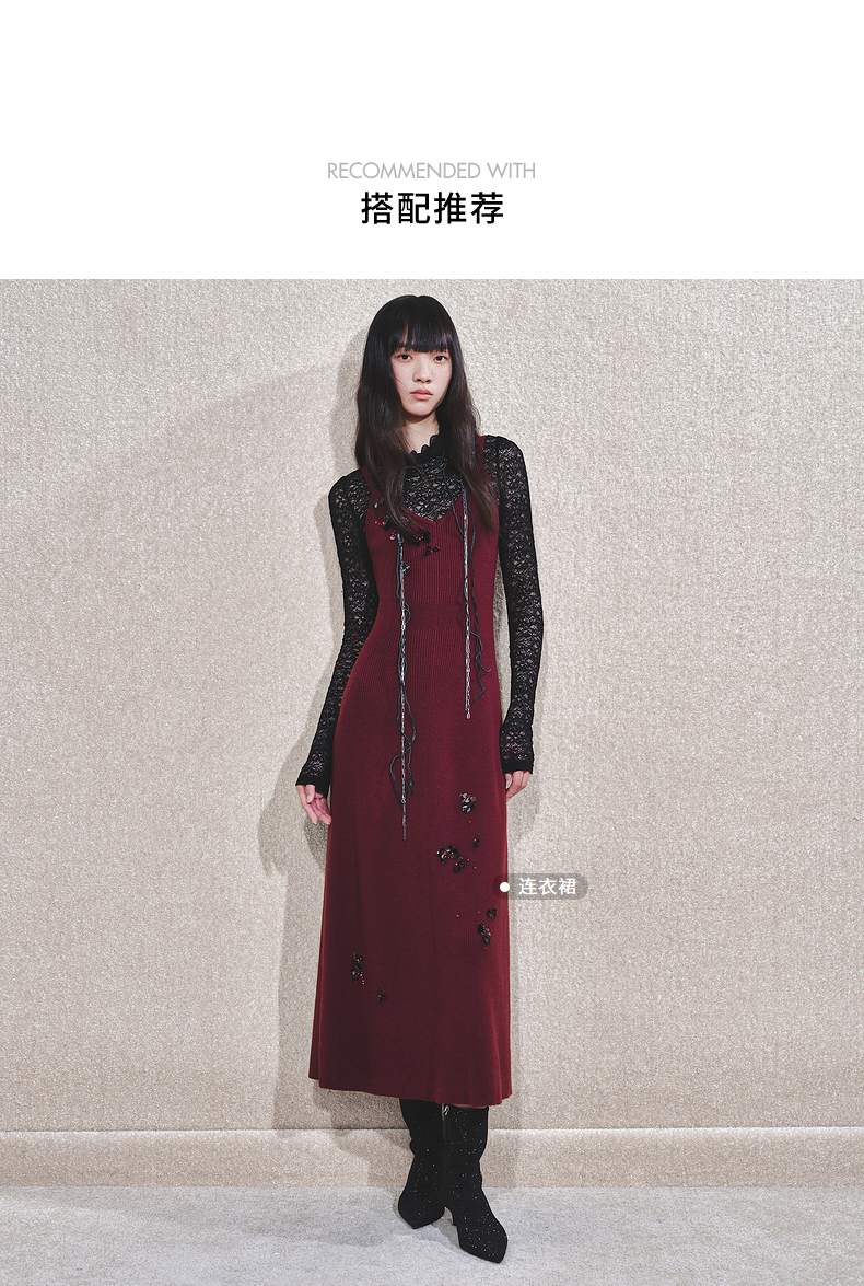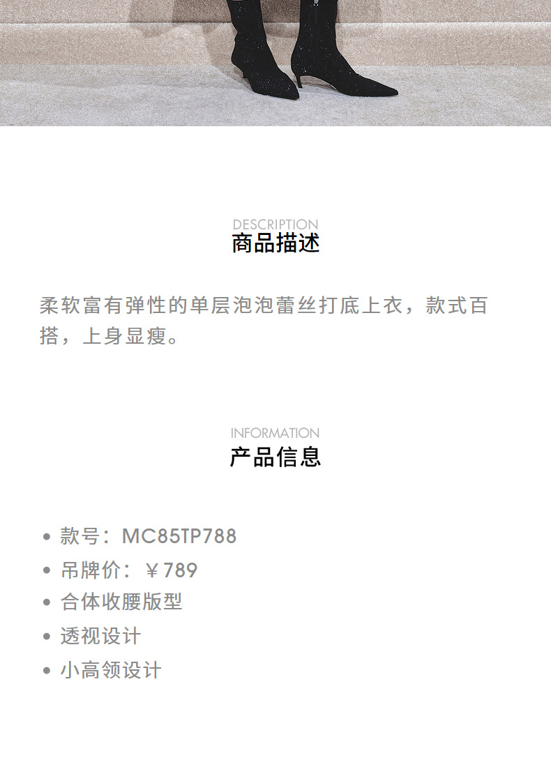 MAXRIENY【商场同款-节庆穿搭】MAXRIENY法式复古高透蕾丝打底(货号:MC85TP788)