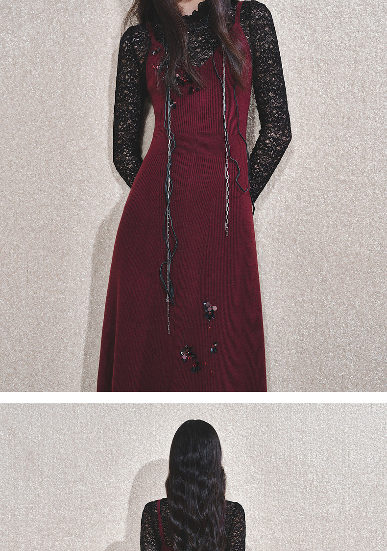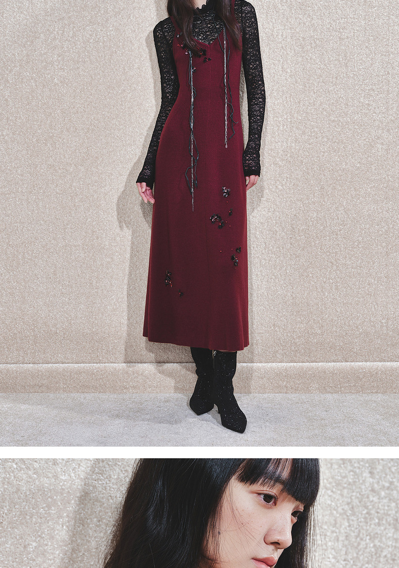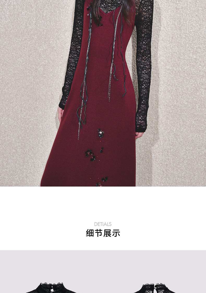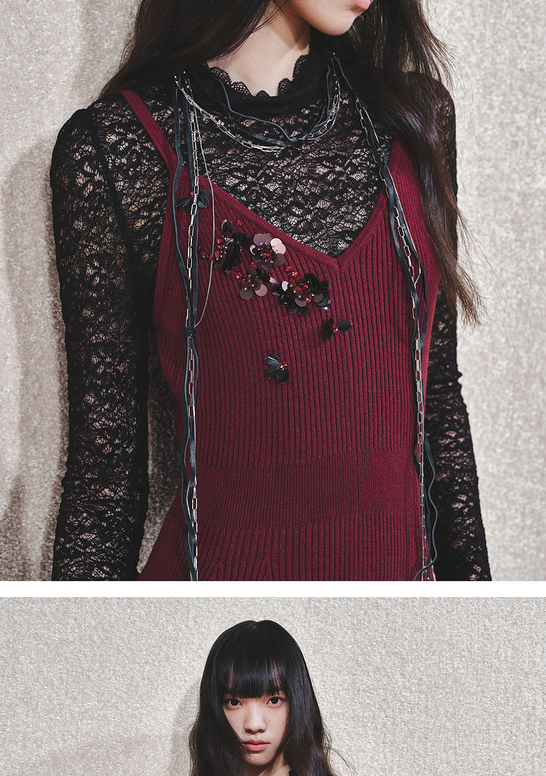 MAXRIENY【商场同款-节庆穿搭】MAXRIENY法式复古高透蕾丝打底(货号:MC85TP788)