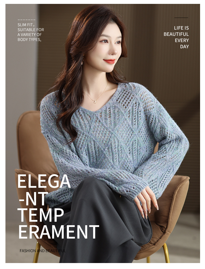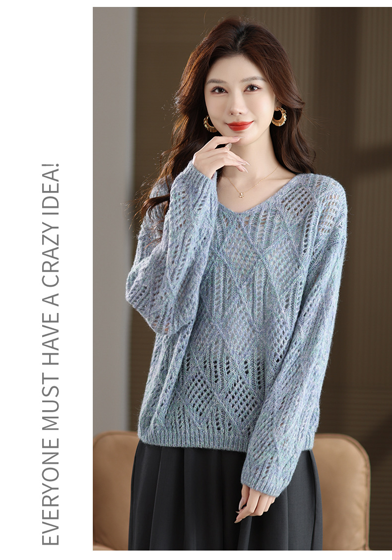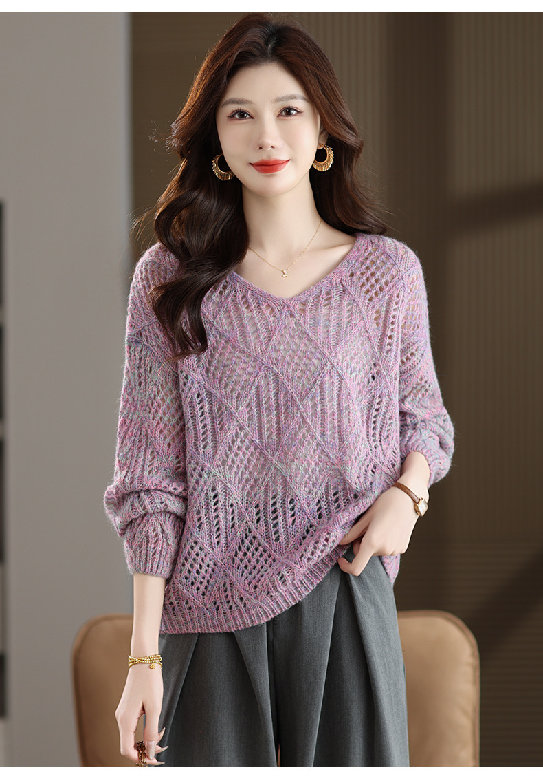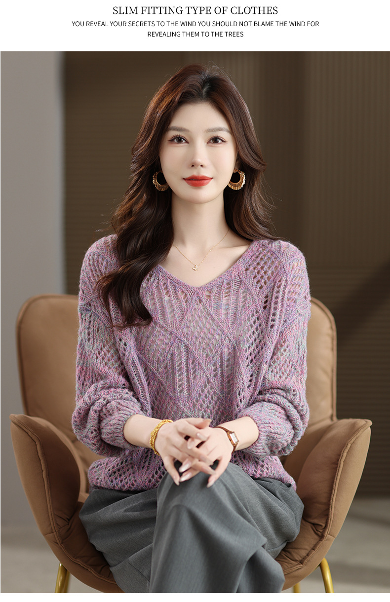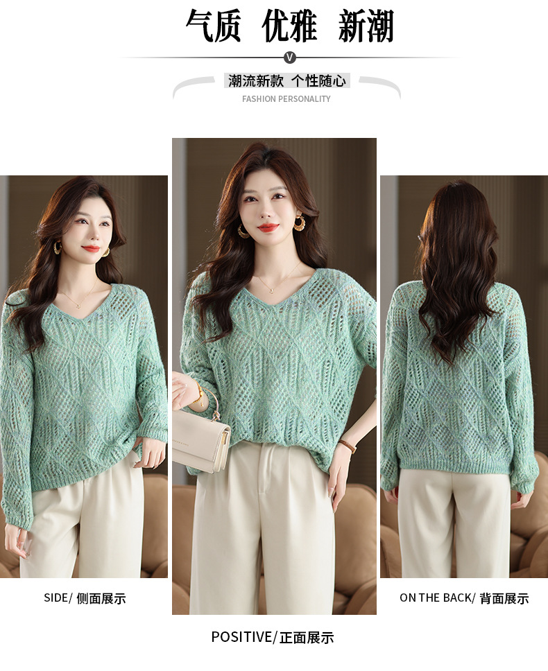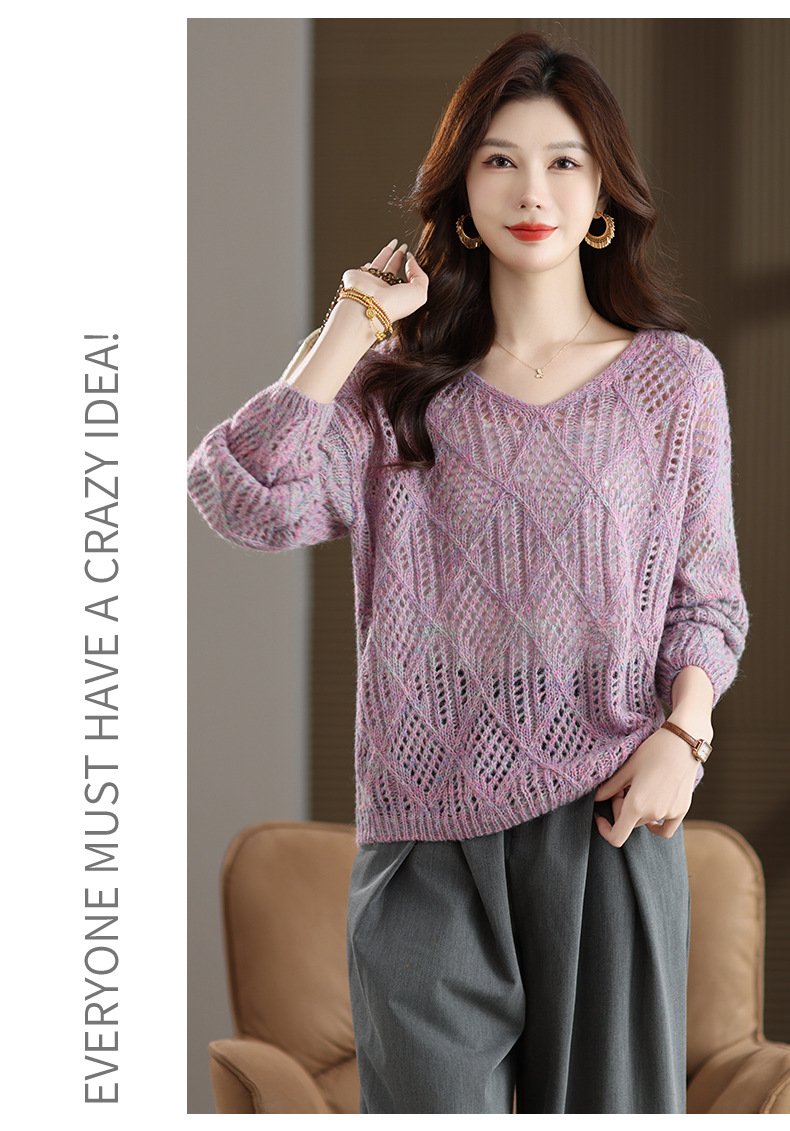 CC镂空罩衫上衣女春秋宽松外穿毛衣2025年新款大码胖mm慵懒风打底衫