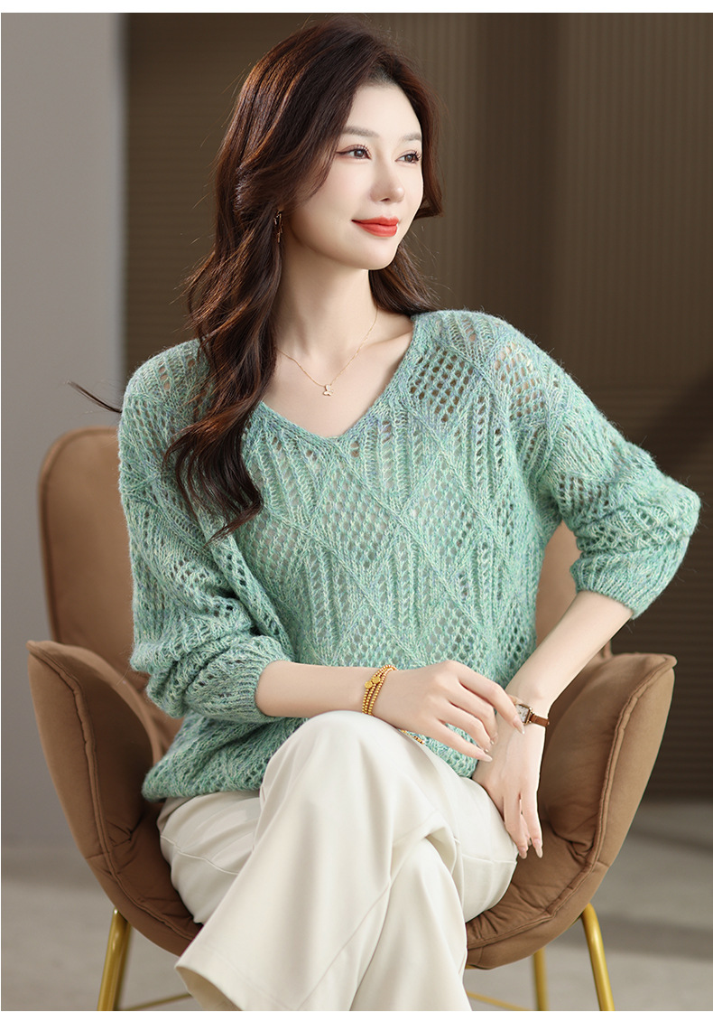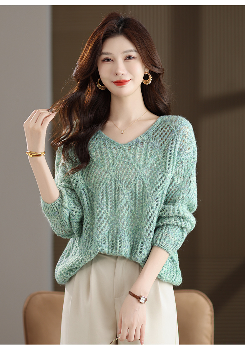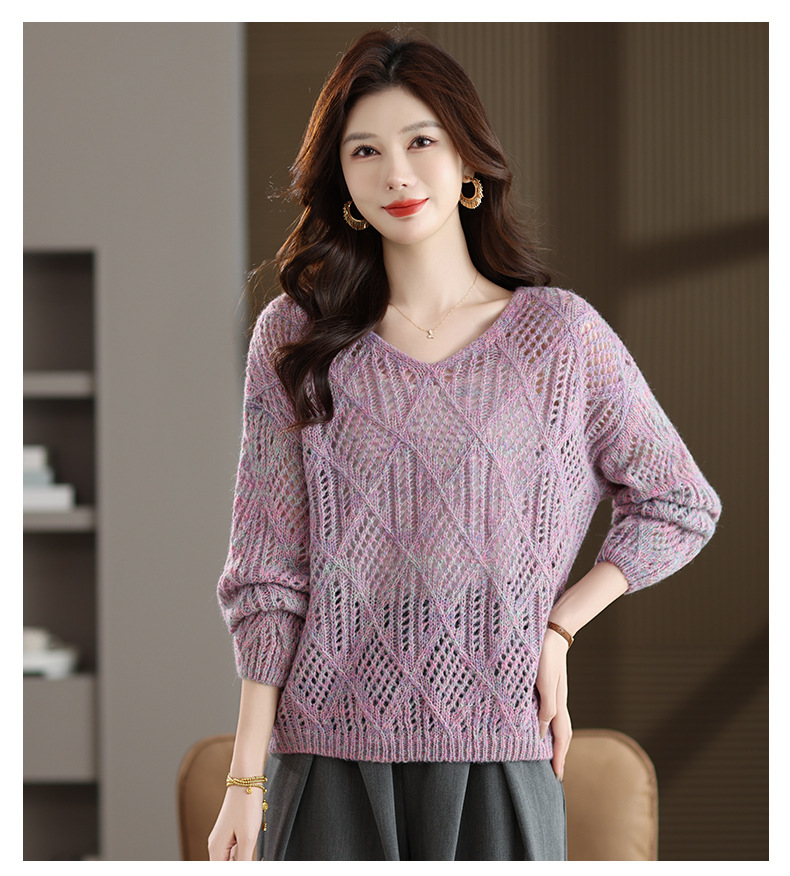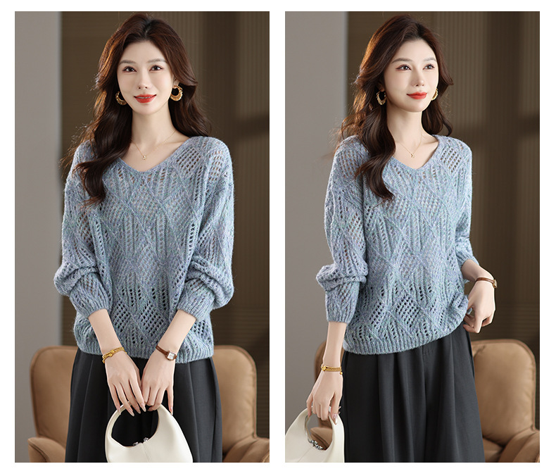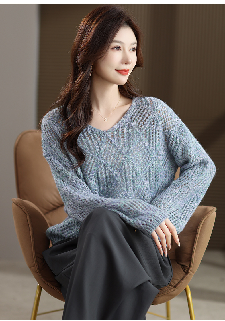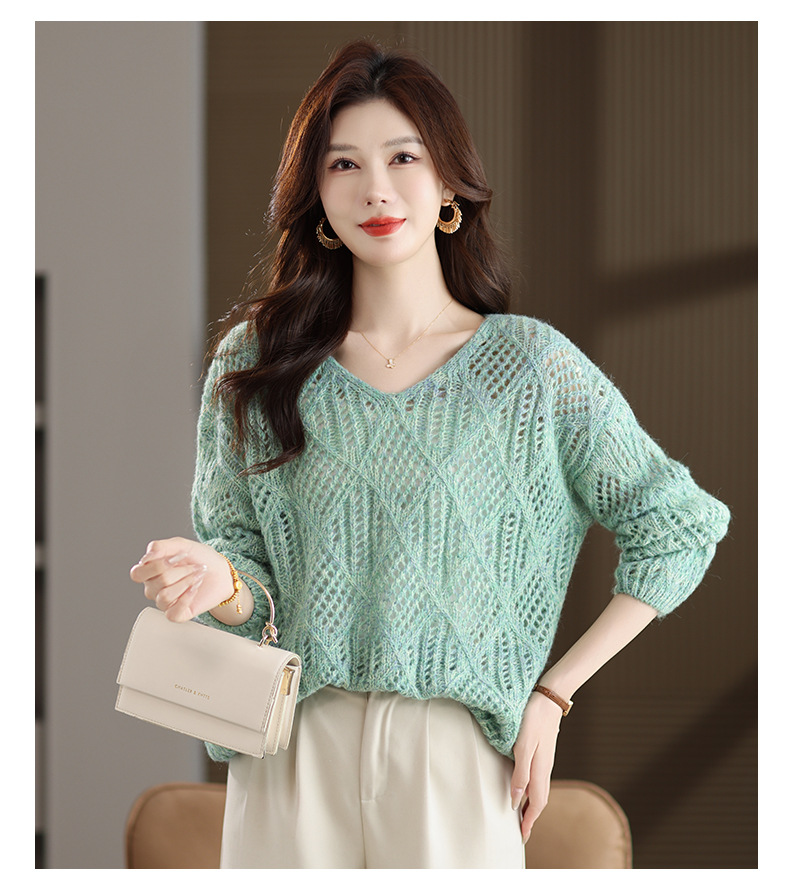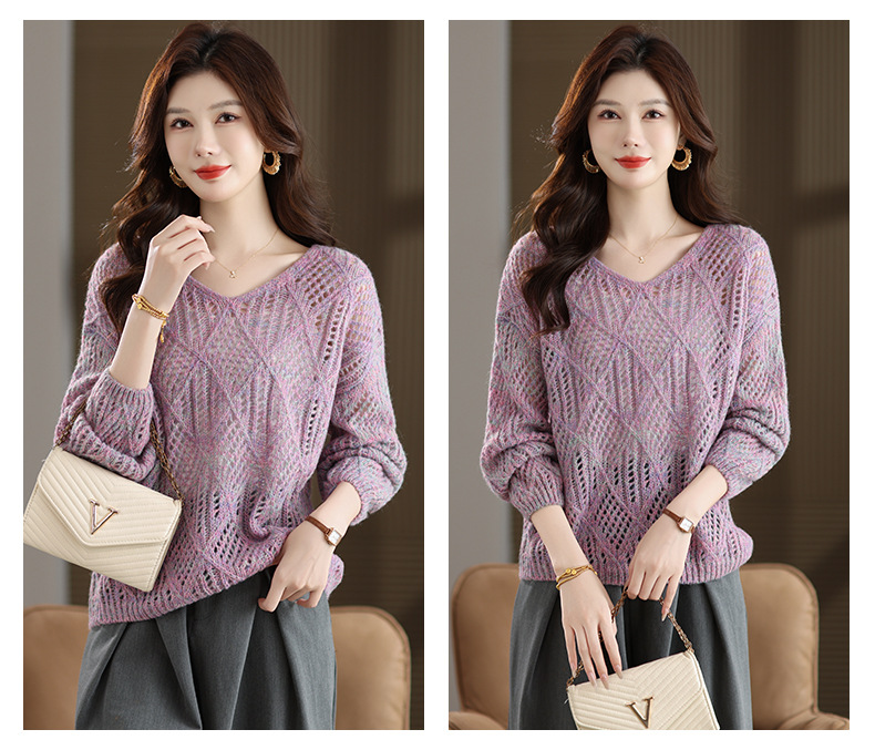 CC镂空罩衫上衣女春秋宽松外穿毛衣2025年新款大码胖mm慵懒风打底衫