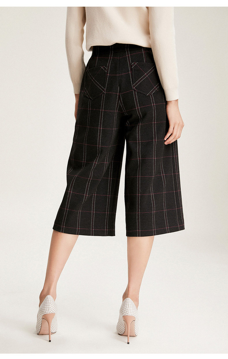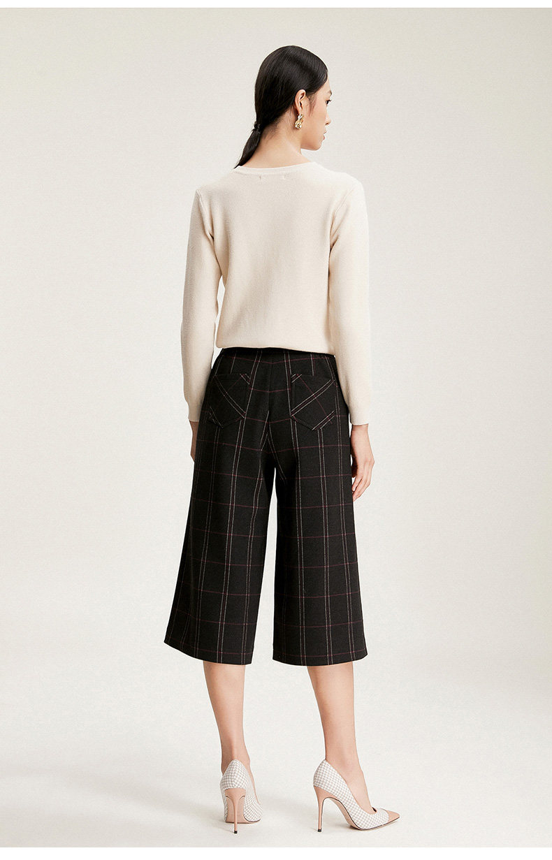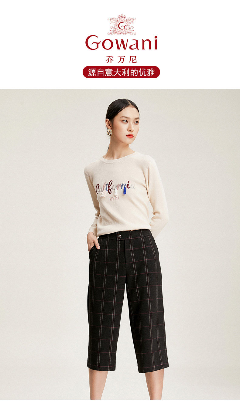 乔万尼裤子女秋冬经典英伦风格子气质七分阔腿裤EN4F837