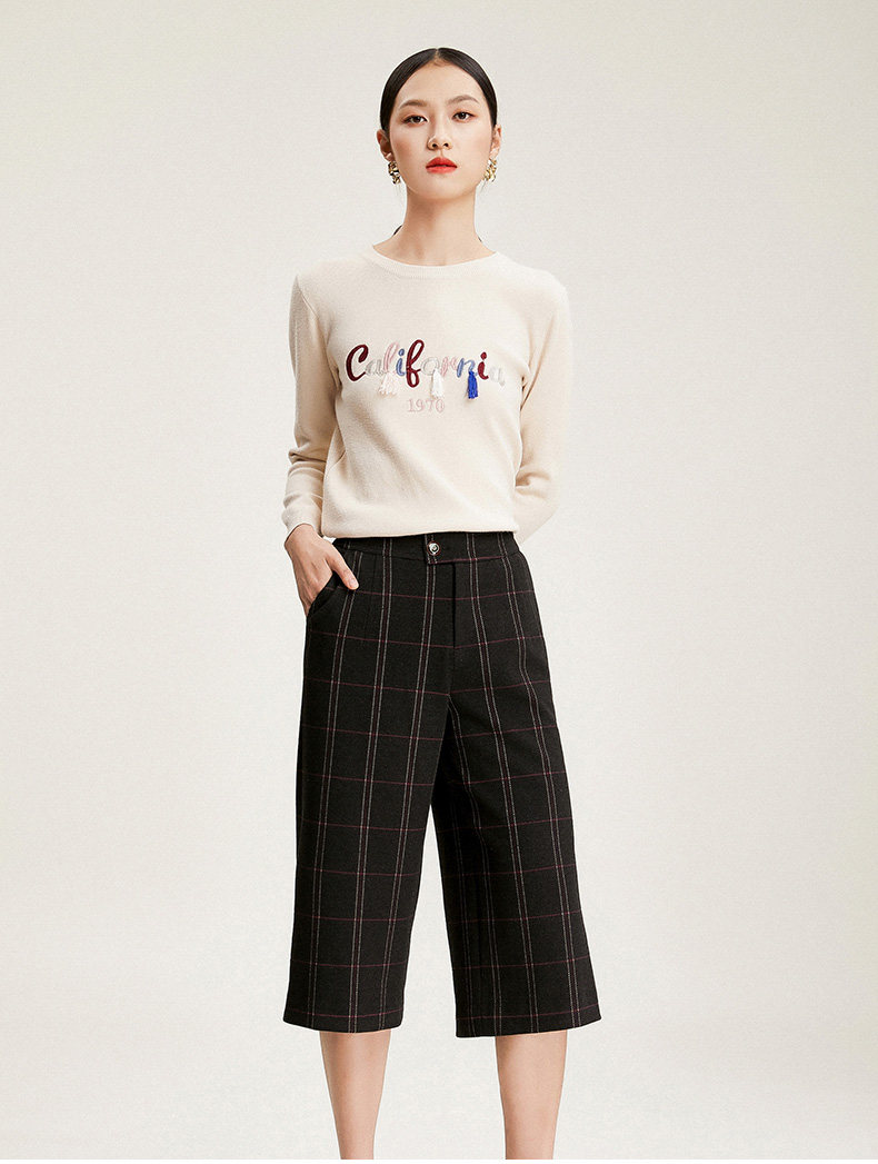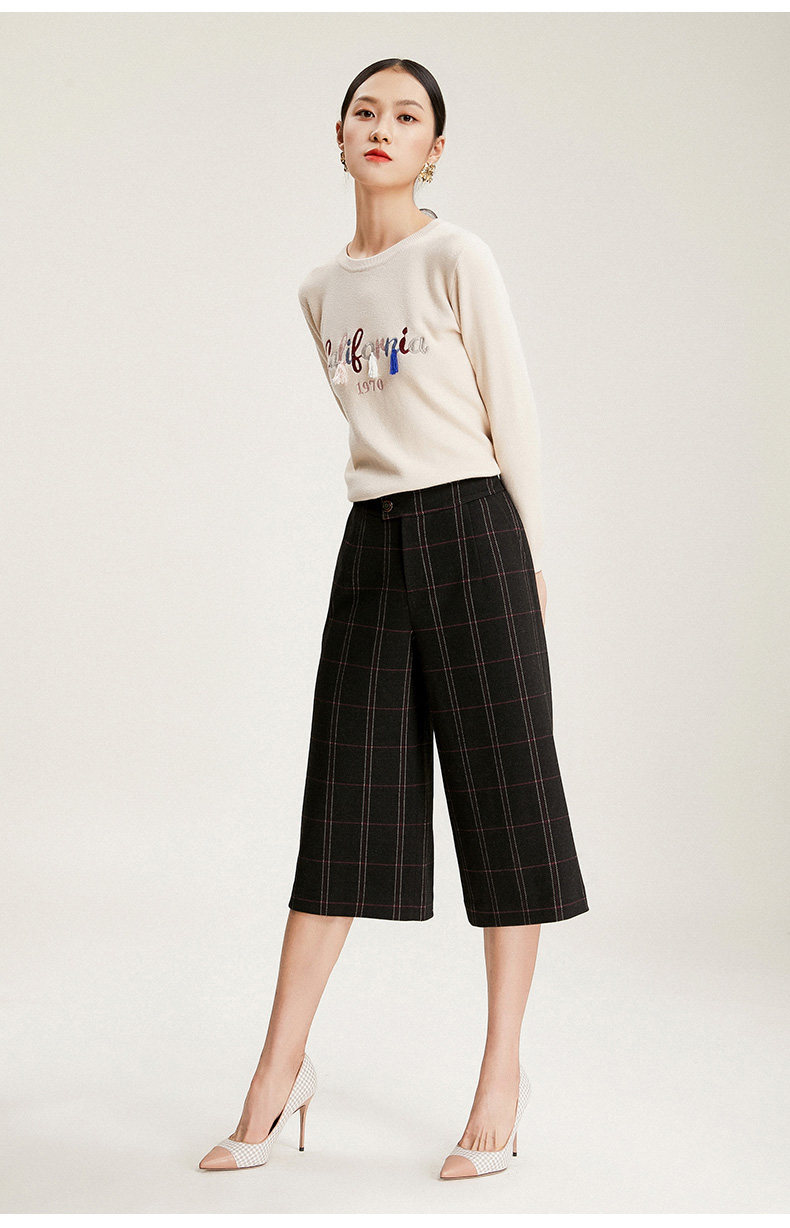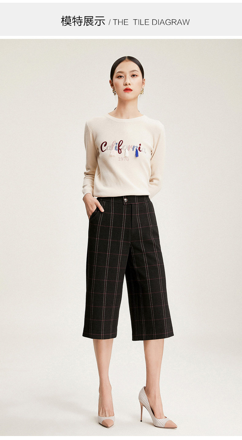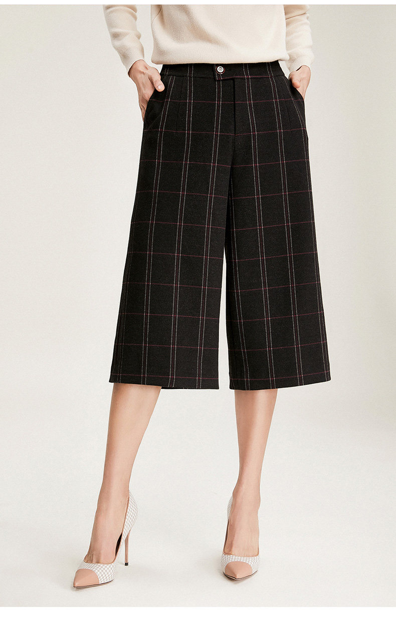乔万尼裤子女秋冬经典英伦风格子气质七分阔腿裤EN4F837