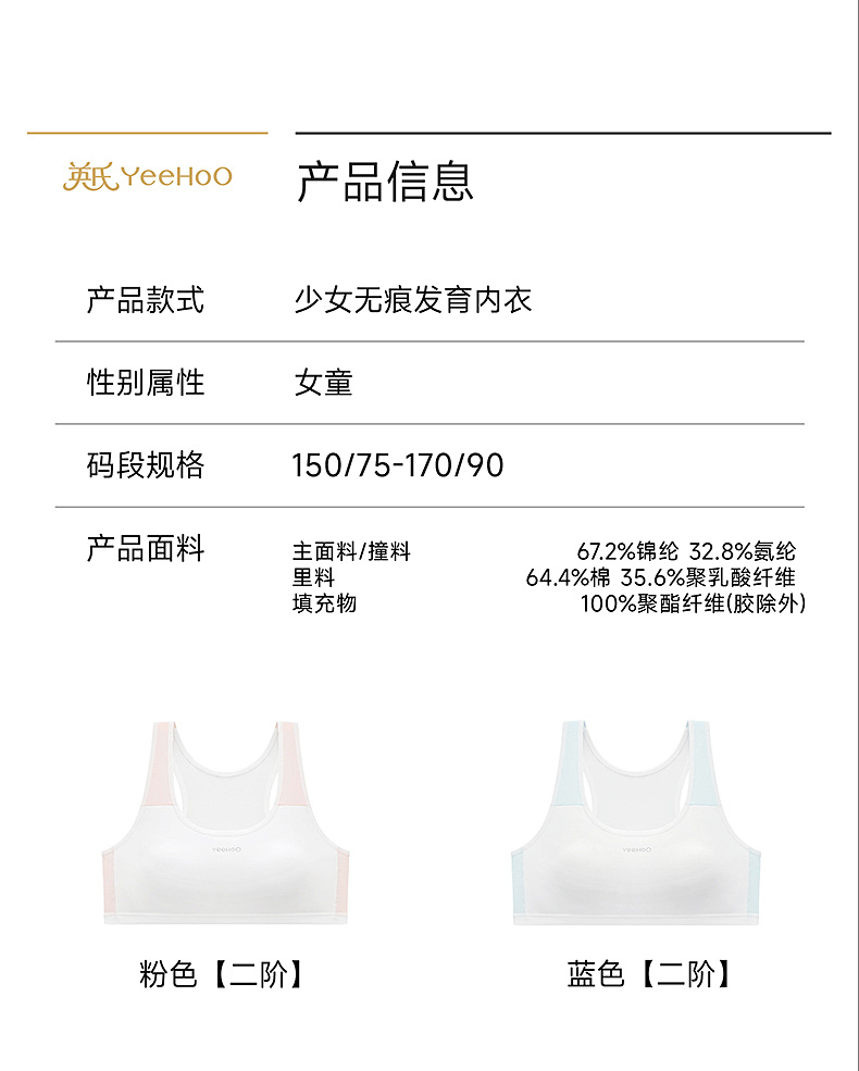 【10A抗菌二阶段】英氏儿童内衣女童发育期文胸四季款少女内衣抗菌小背心
