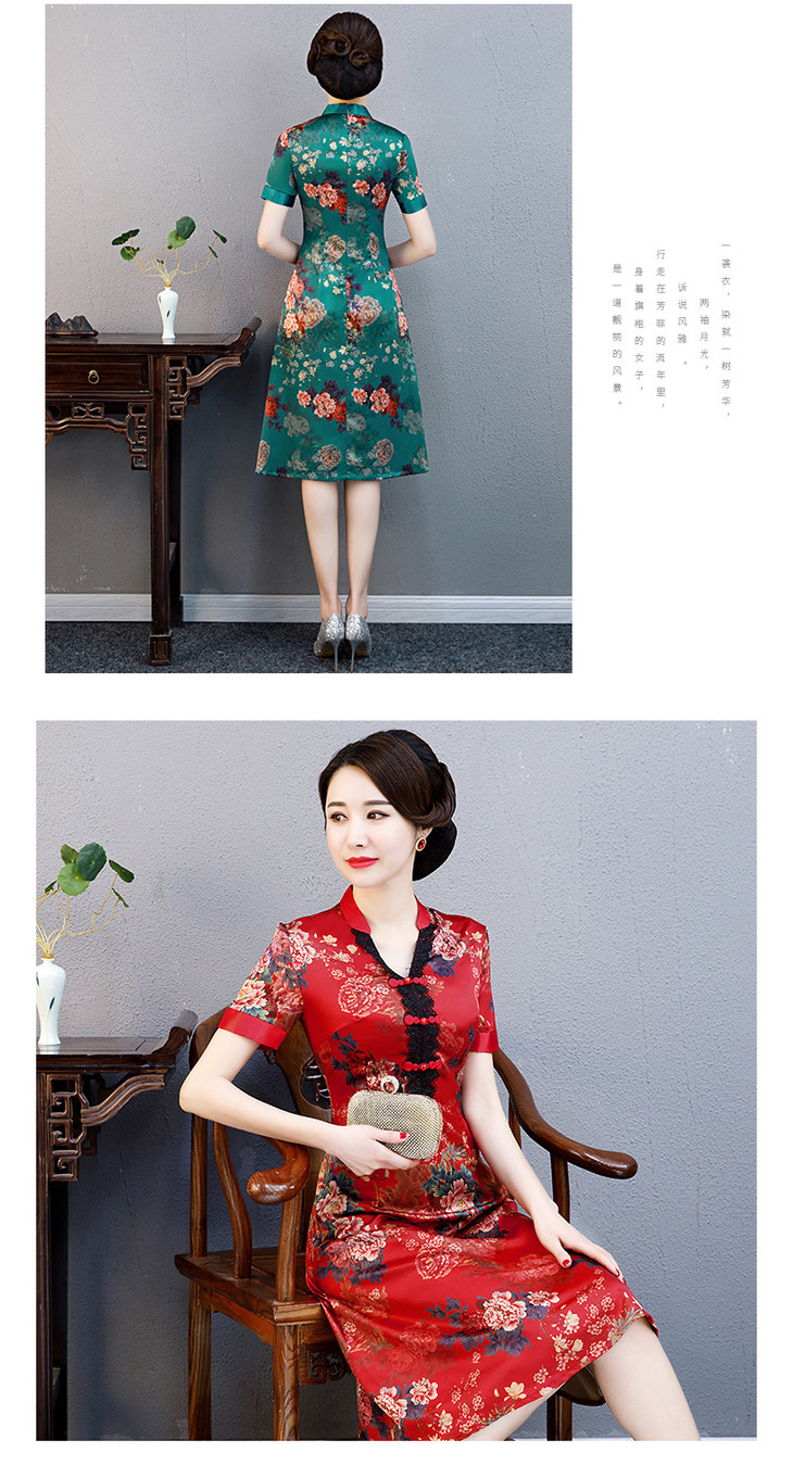 ZA花荣时尚气质印花旗袍