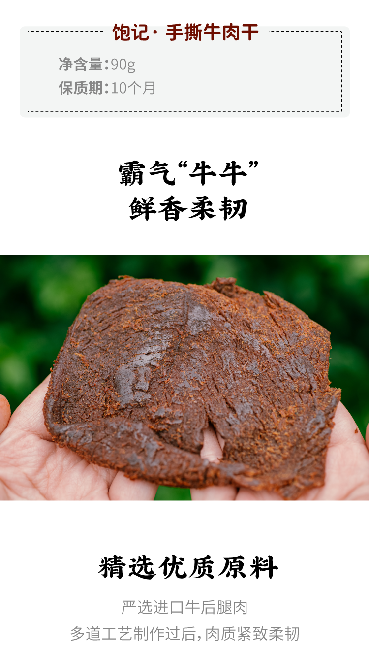手撕牛肉片 原味高坑牛肉干大块浓香一口拉丝休闲零食