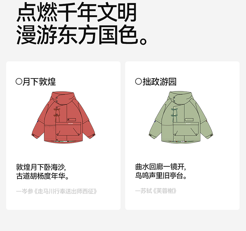 推荐理由:高端新手感,柔软棉感尼龙外套游园外套系列新款,经典古典国风的斜门襟,袖子新增加可拆卸设计,可适应更复杂的户外场景。