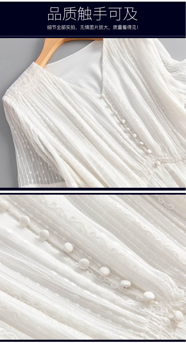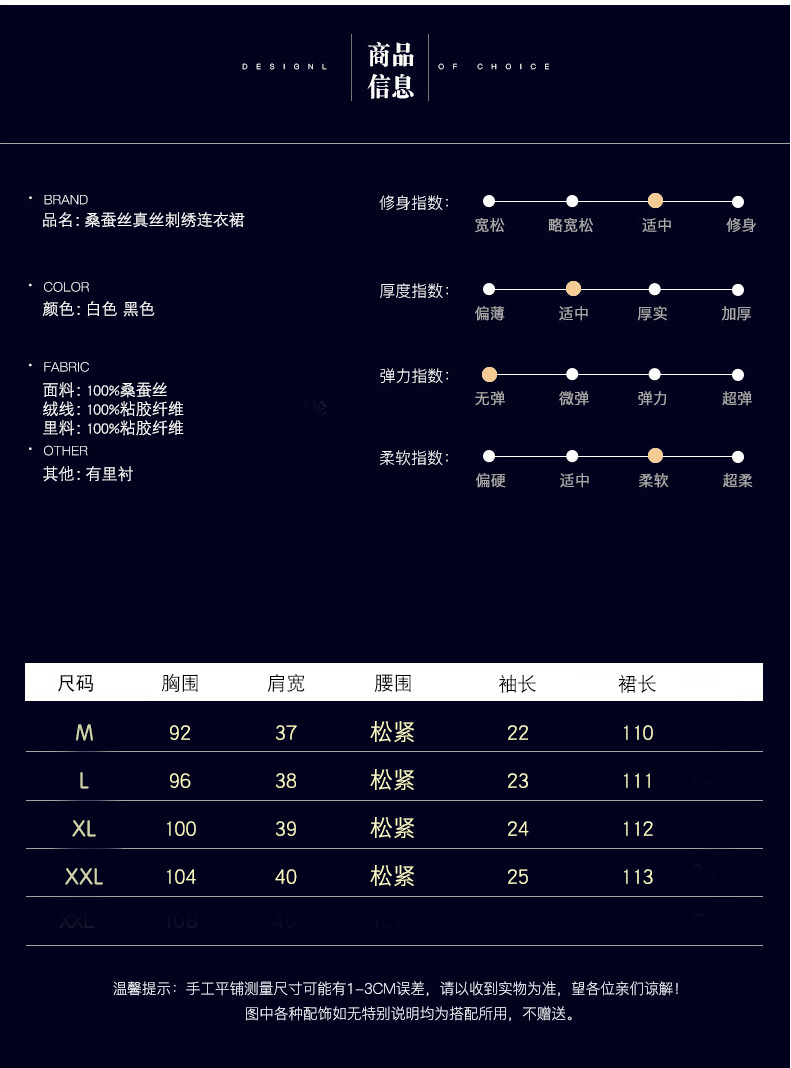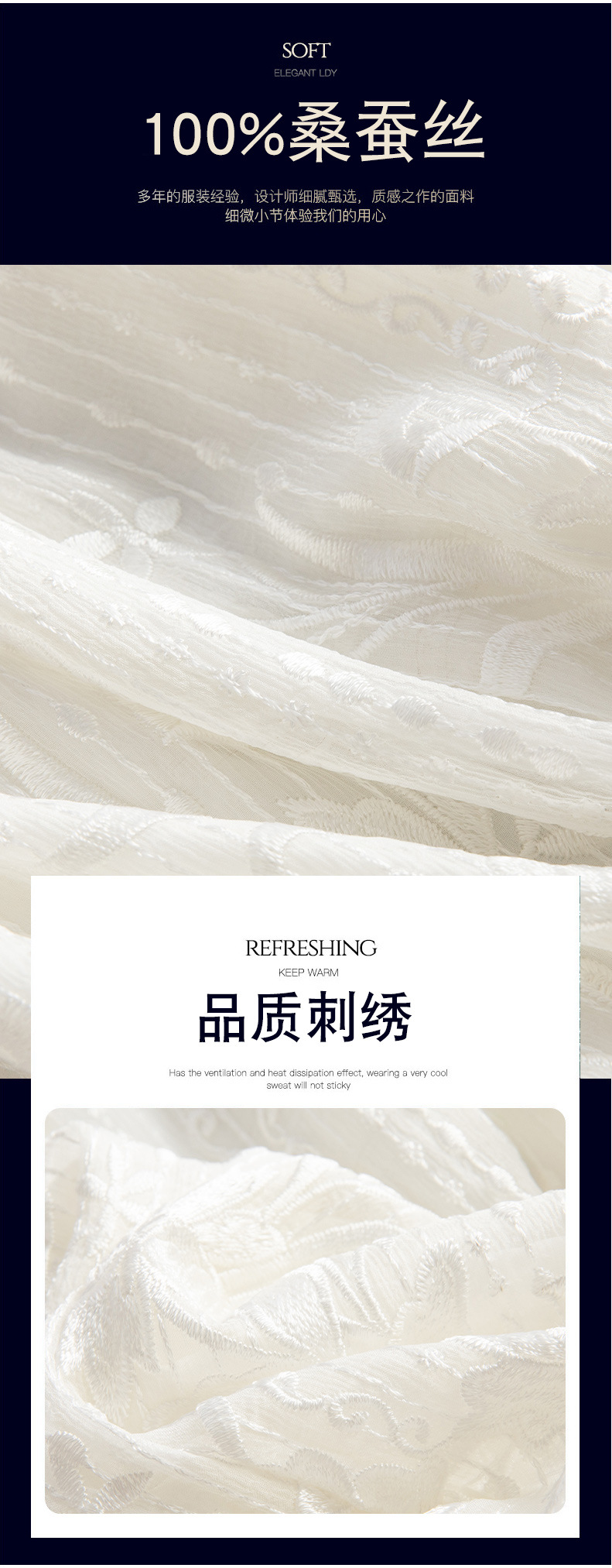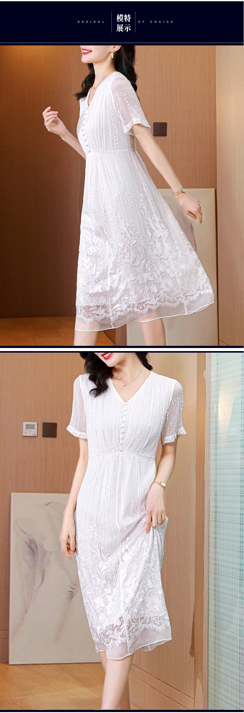 短袖薄款,刺绣V领气质减龄中长款真丝连衣裙KQN-B21010