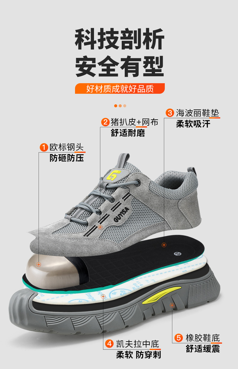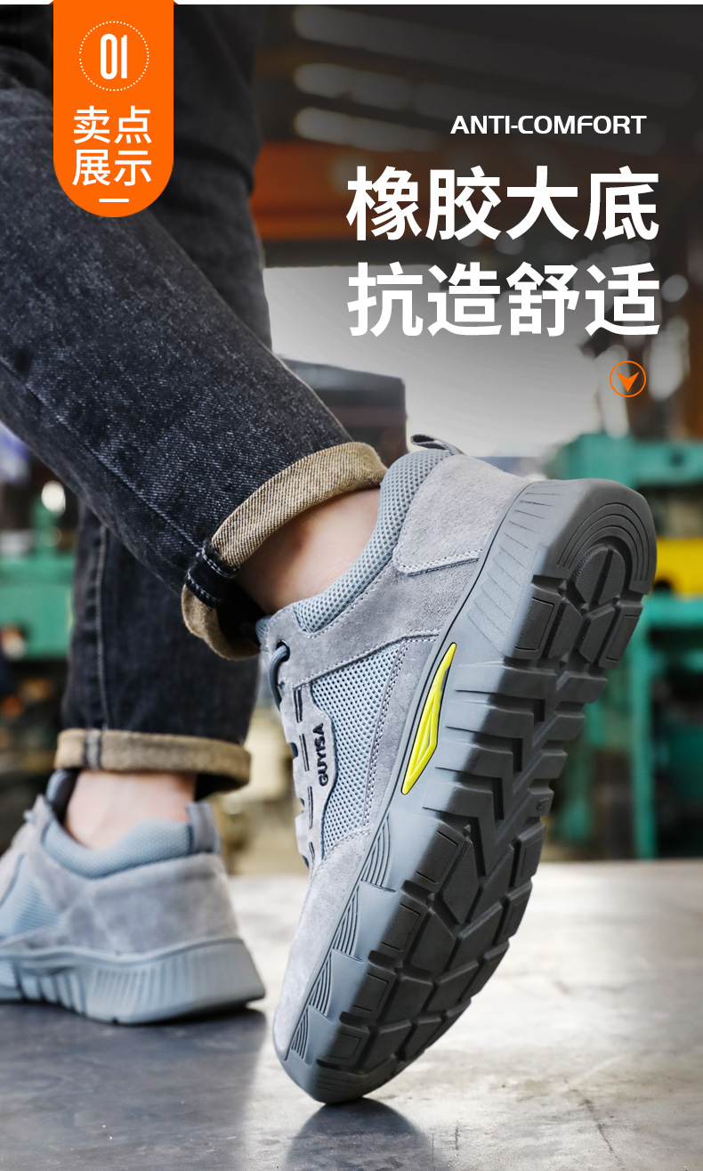 劳保鞋男防砸防刺安全鞋工作鞋橡胶底钢包头夏季款