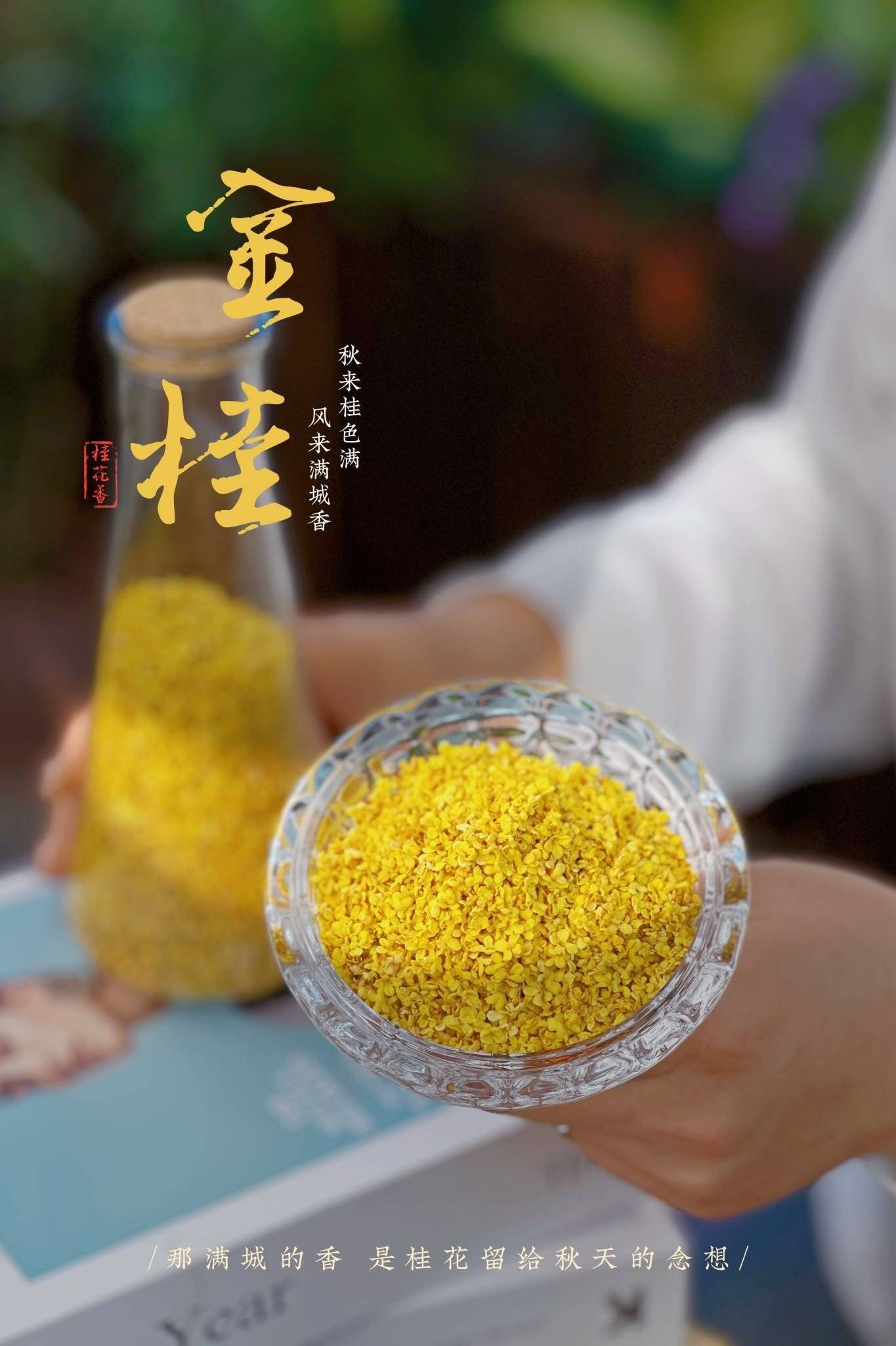 品名:天然桂花干,金桂花 规格:净重35克 等级:特级 介绍,上好茶饮桂林金桂花茶,淡黄透亮,清香淡雅,色泽金黄,朵大饱满,花香浓郁,清香扑鼻,可做糕点,可配茶饮。