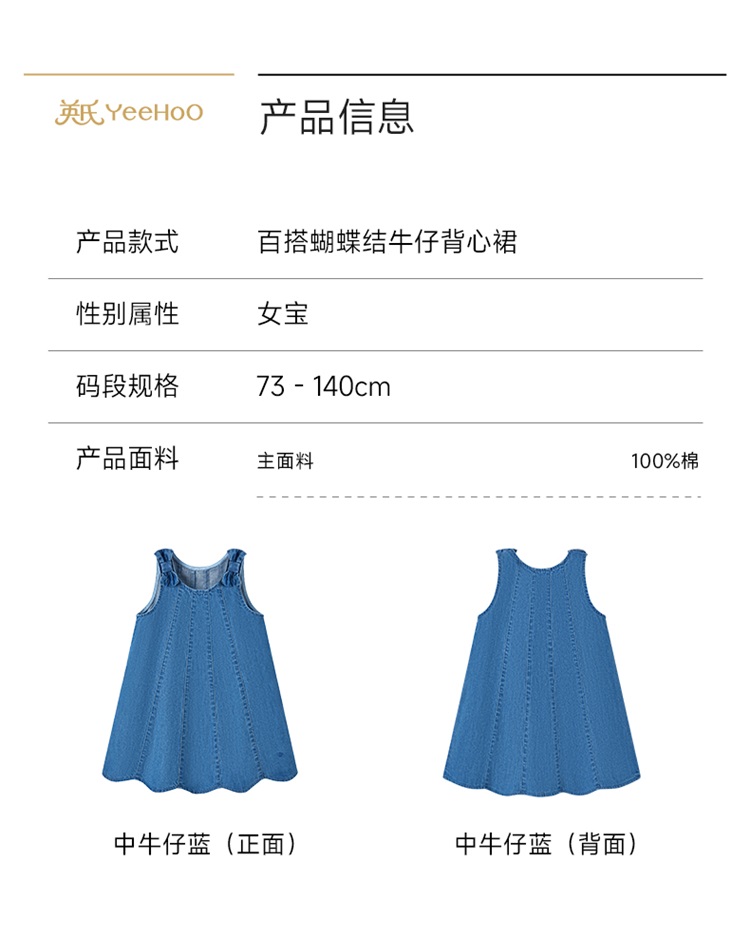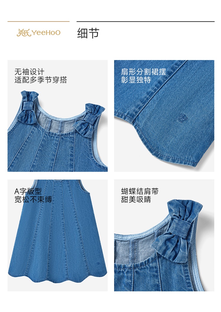 【商场同款】英氏童装女宝宝连衣裙纯棉牛仔背心裙夏季日常儿童裙