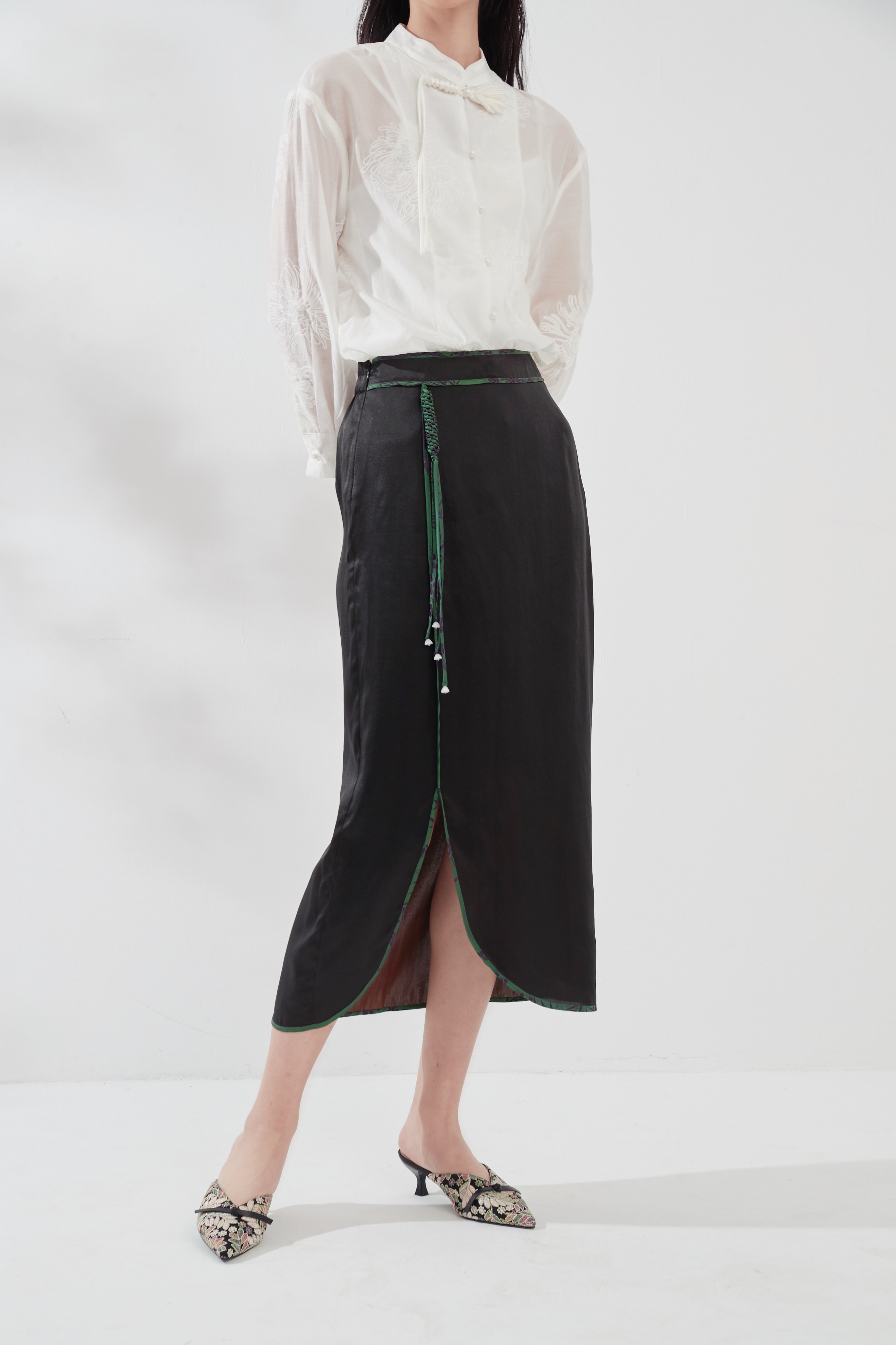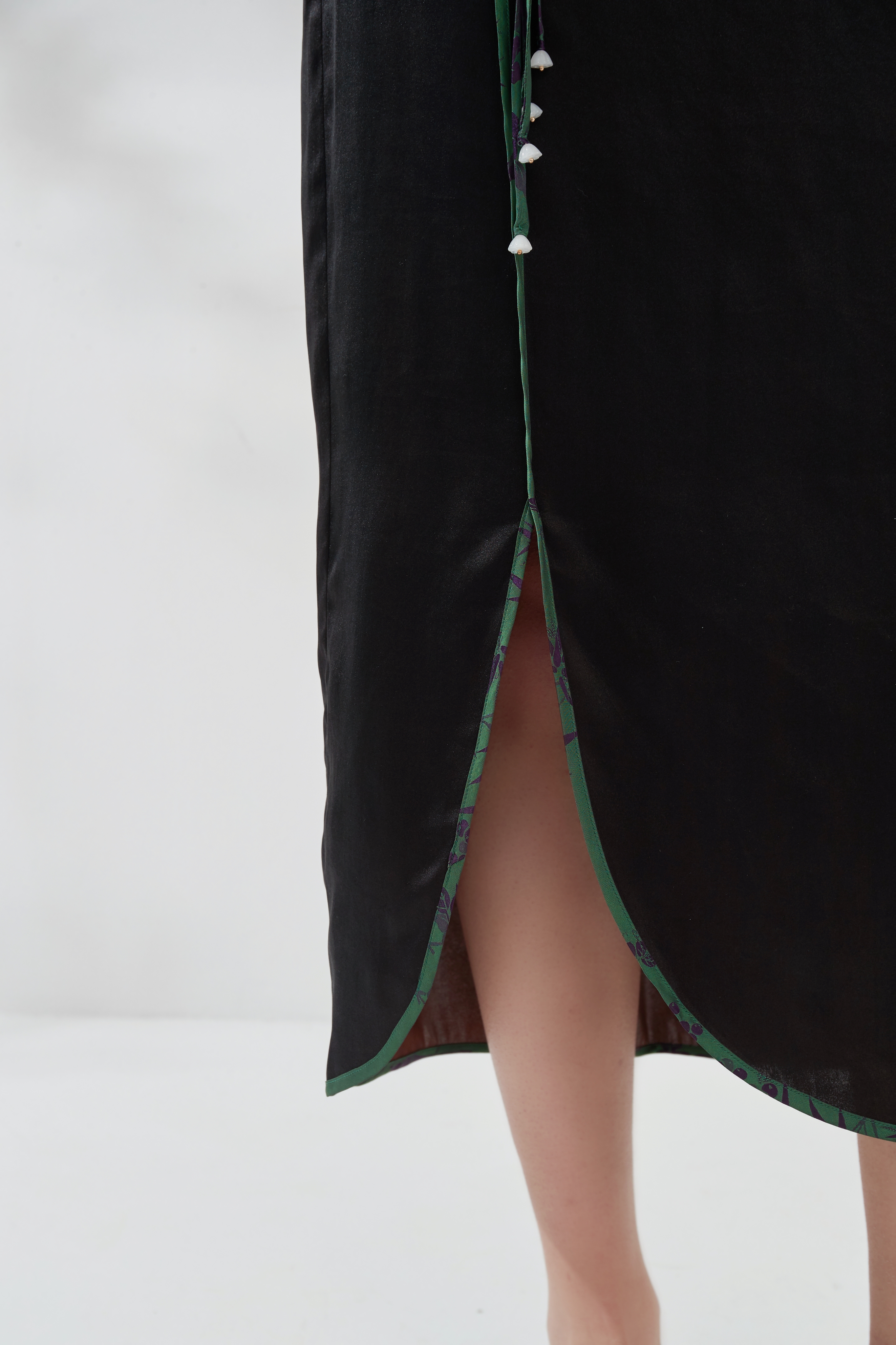 香云纱真丝包边半裙