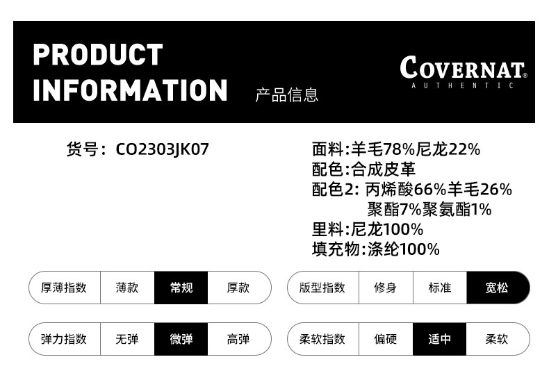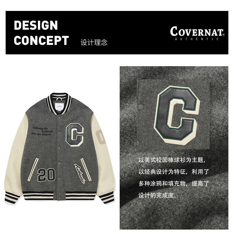 Covernat2023冬季新品男款刺绣夹克棉服外套CO2303JK07