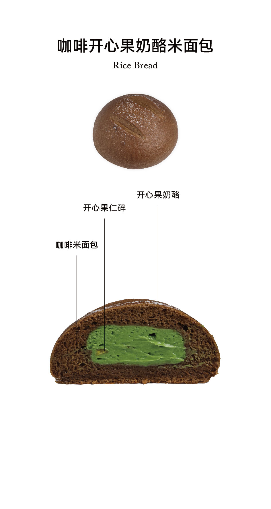 咖啡开心果奶酪米面包
