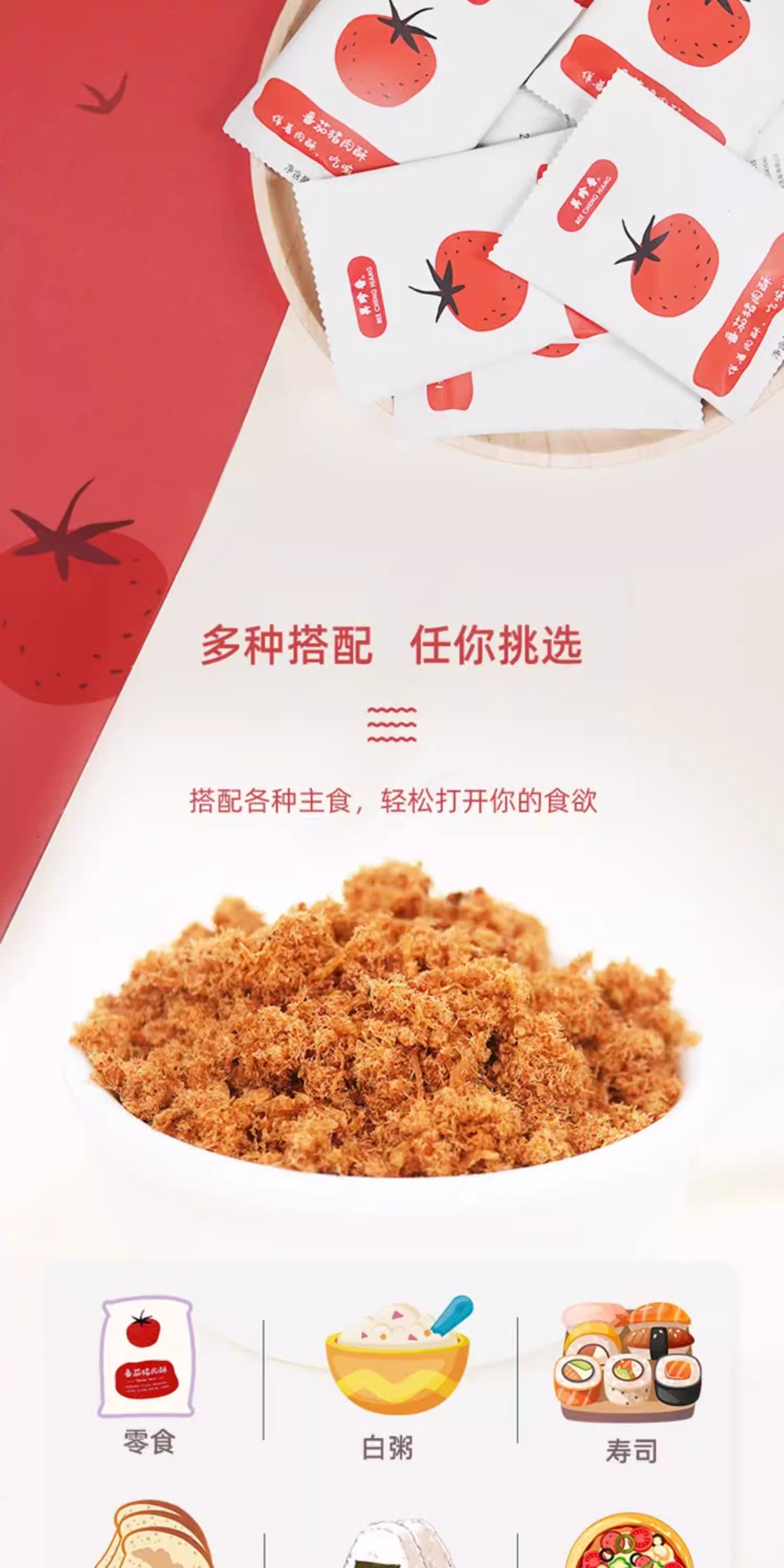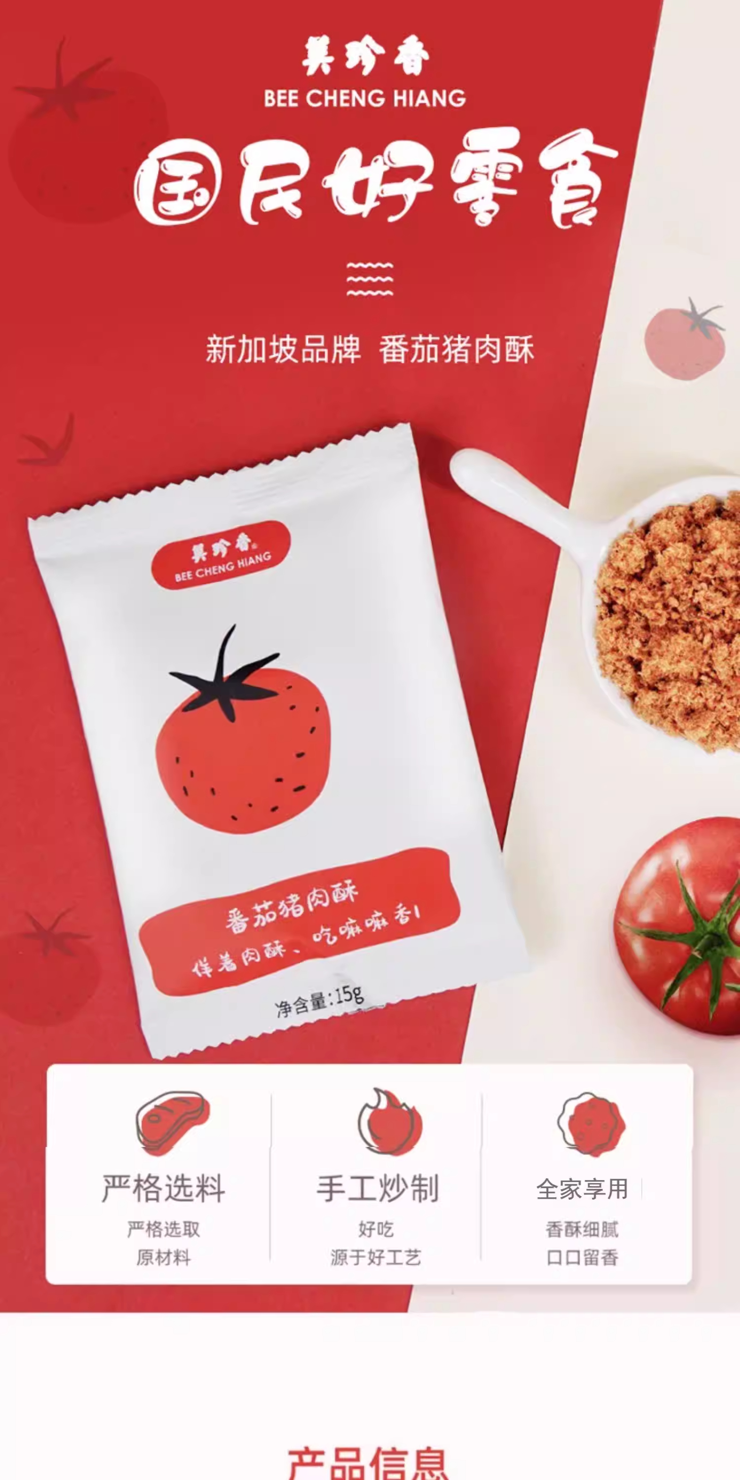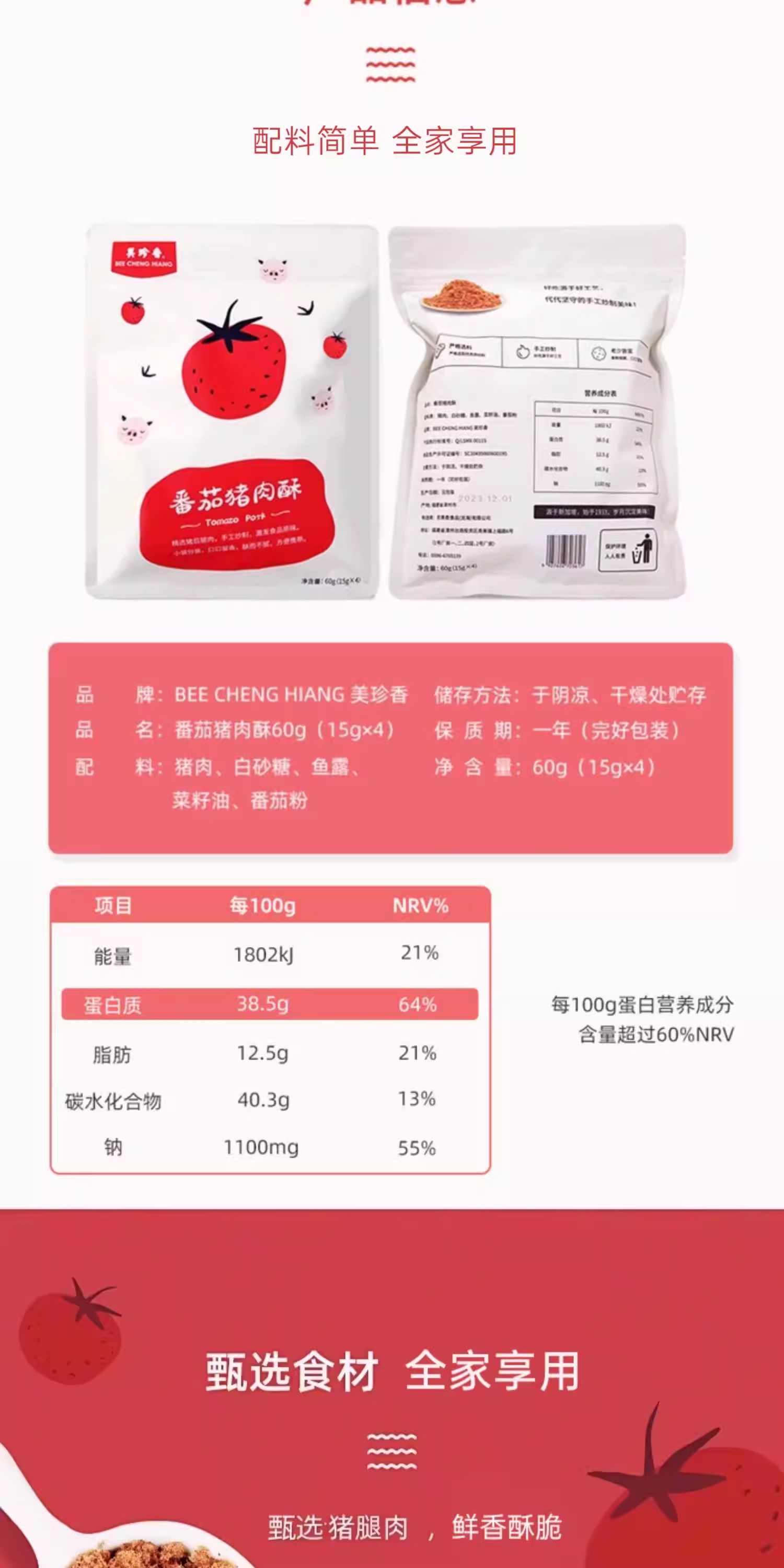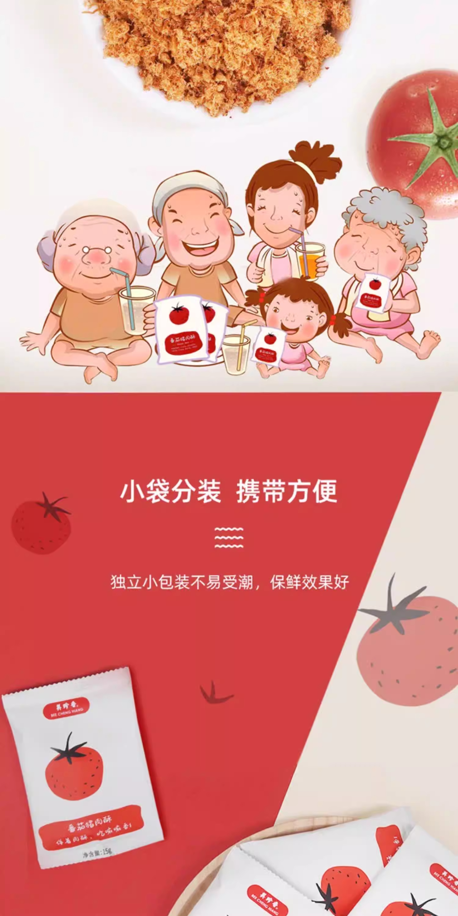 美珍香番茄/香酥猪肉酥60g(15gx4)香酥美味零食独立小包装解馋