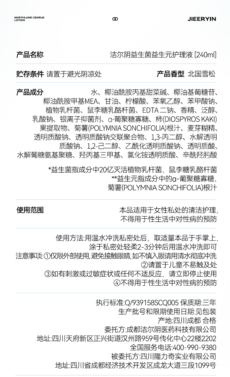 【新品首发款】洁尔阴益生菌益生元护理液私部清洗日常洗护女生洗私妇科抑菌