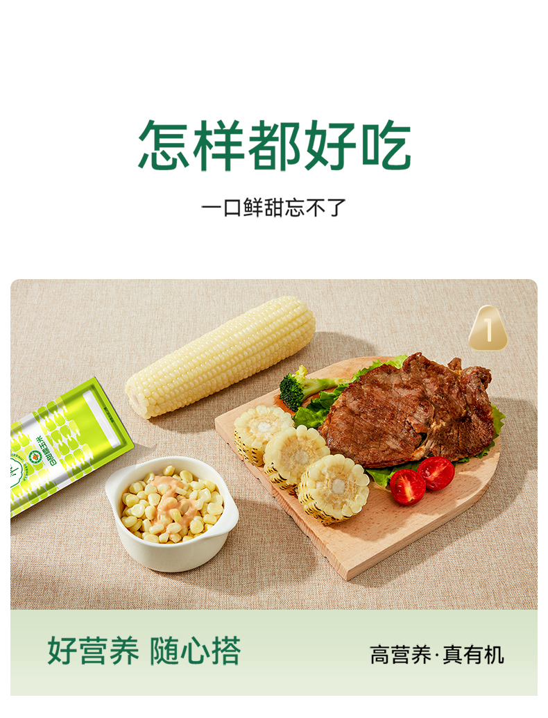来自北纬41°张家口优质玉米基地,口感软糯香气扑鼻,快速鲜制保留自然的味道,有机非转健康粗粮,孕妇儿童老人和家人吃的安心!