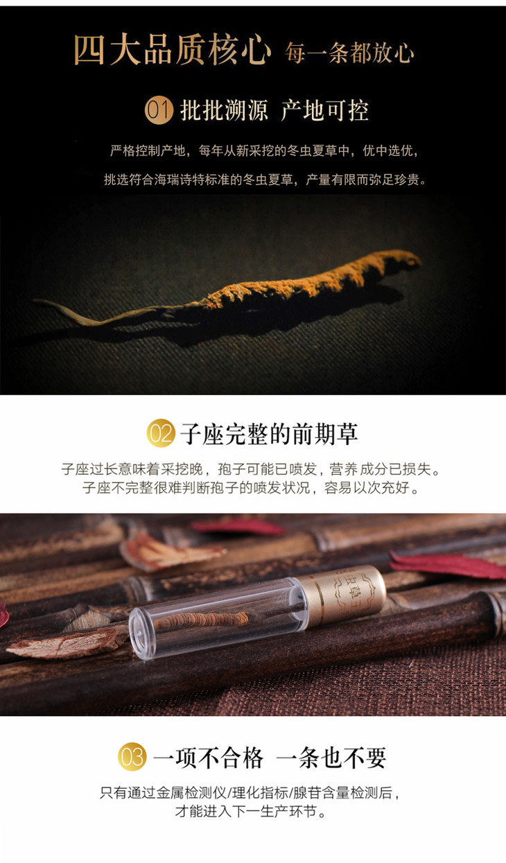 【原产地直发】海瑞海特 冬虫夏草高海拔青海玉树虫草4条/克 2g礼盒装