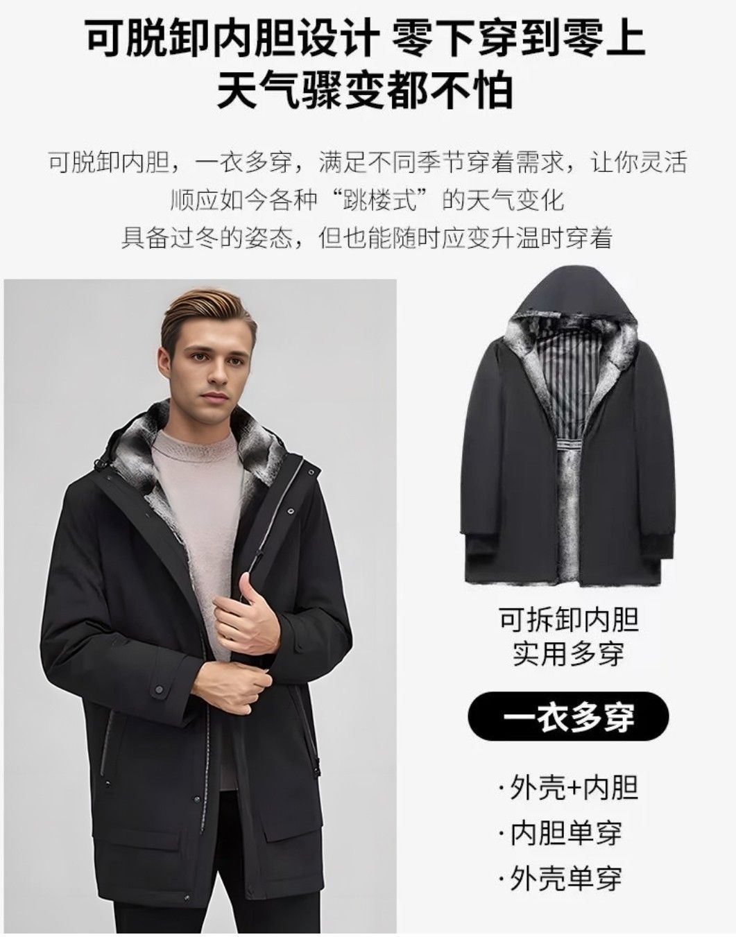 原价2398元!!【罗蒙】限时促!!可拆卸派克服男款中长冬季保暖派克外套-喜出