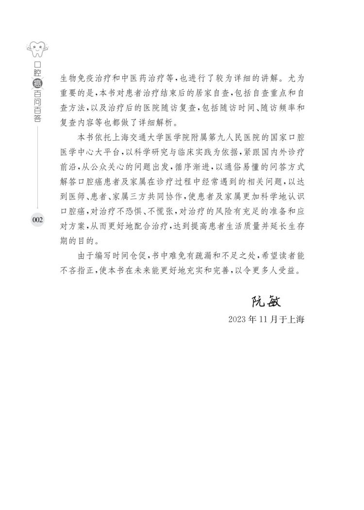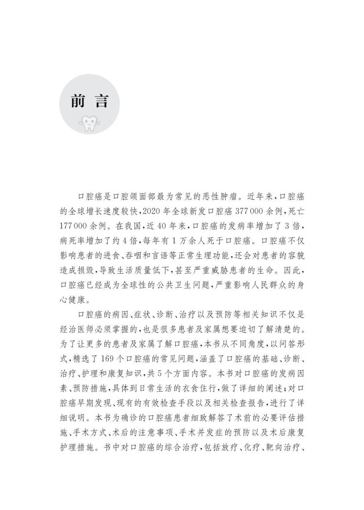 本书适合口腔癌患者及家属阅读,也可供对医学科普感兴趣的大众阅读。