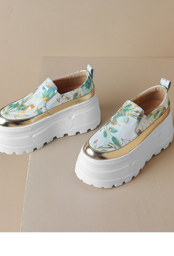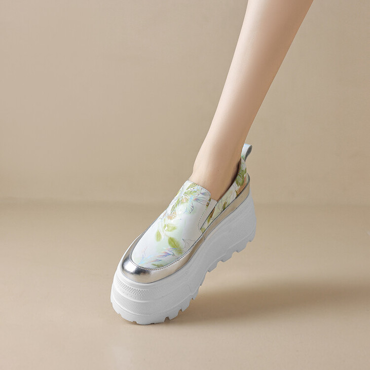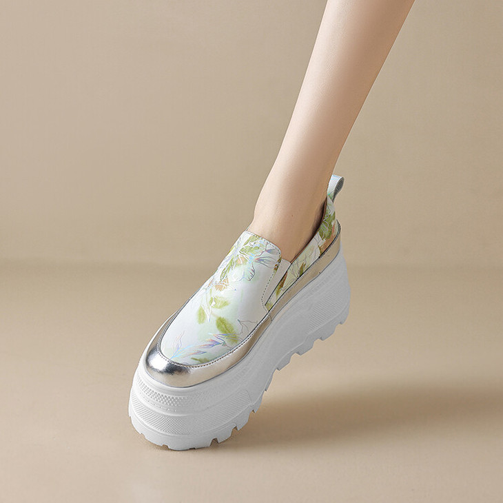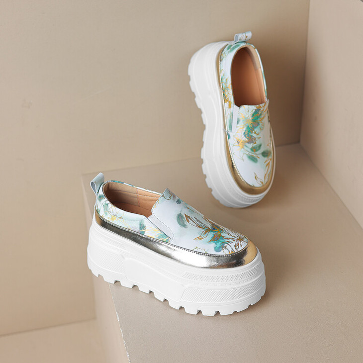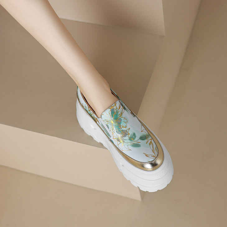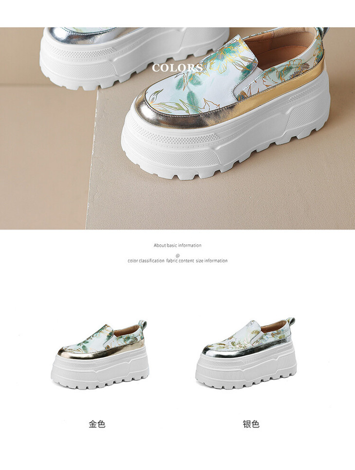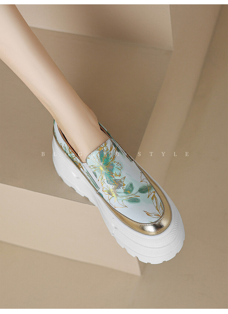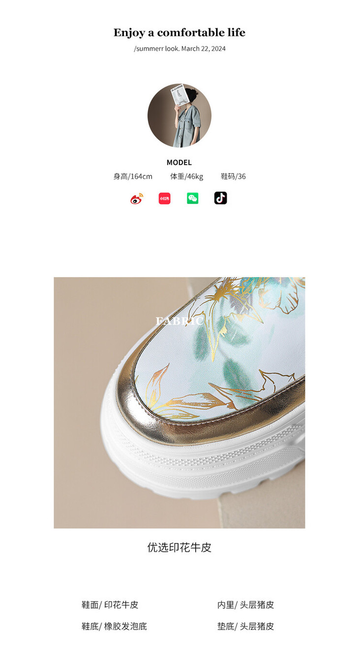 【预售5天】里外全皮松糕跟圆头深口单鞋印花牛皮休闲厚底时尚乐福女鞋AD&123-298