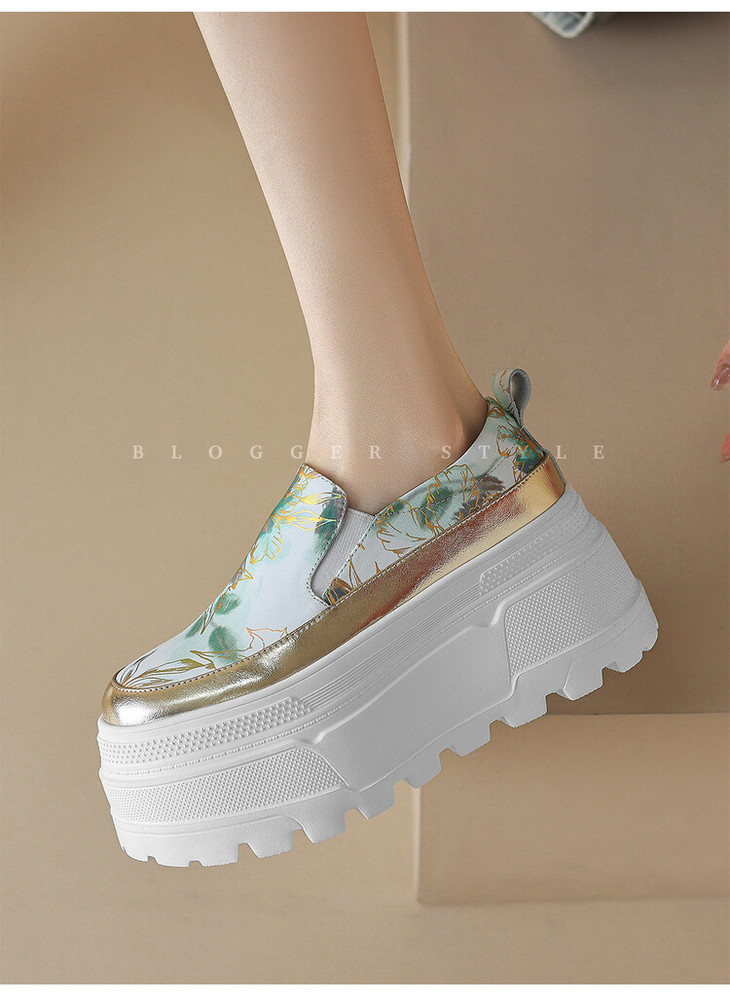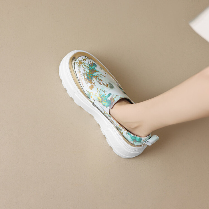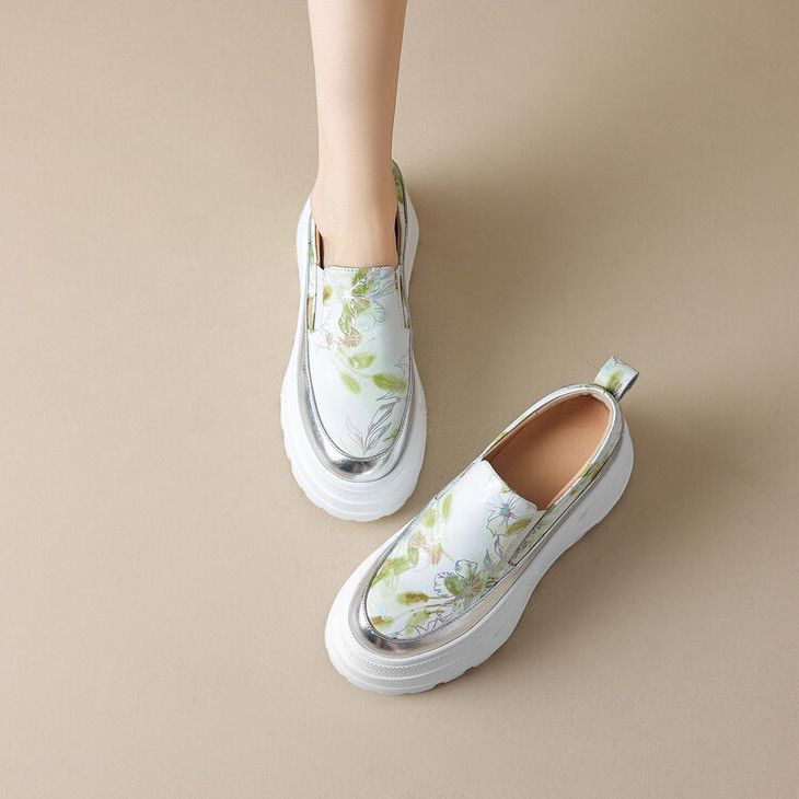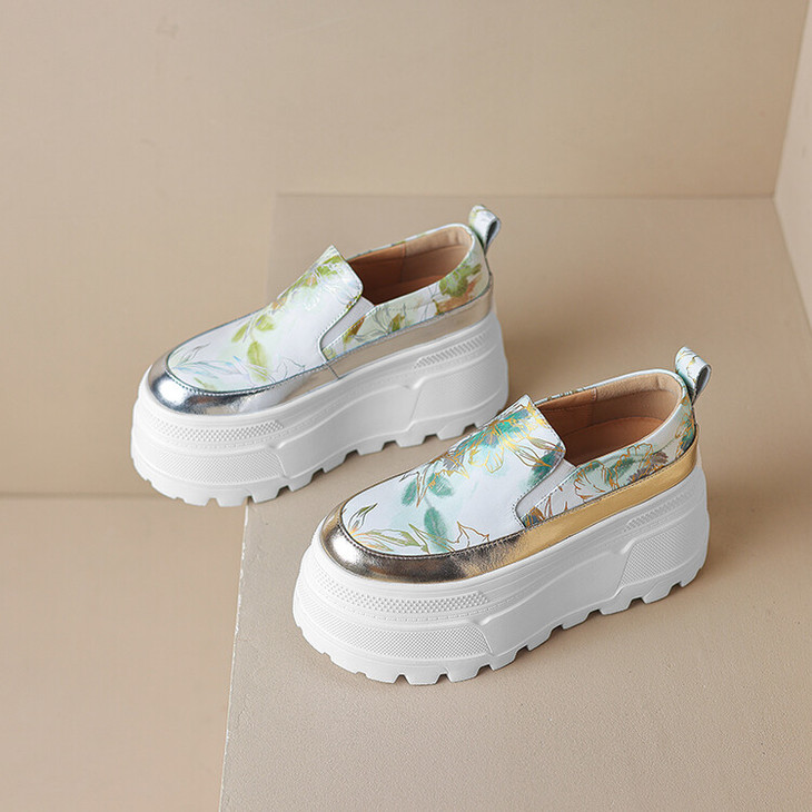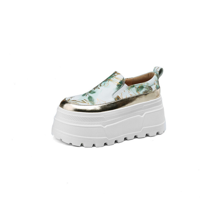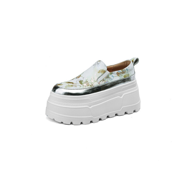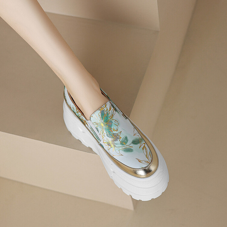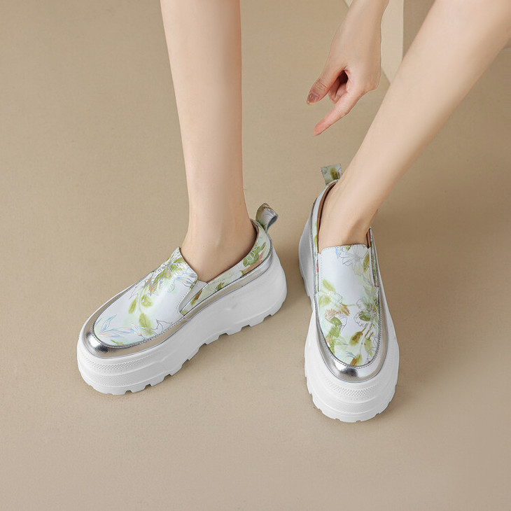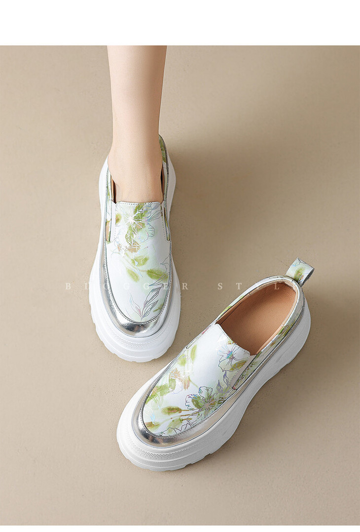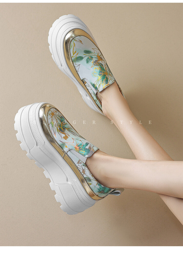 【预售5天】里外全皮松糕跟圆头深口单鞋印花牛皮休闲厚底时尚乐福女鞋AD&123-298