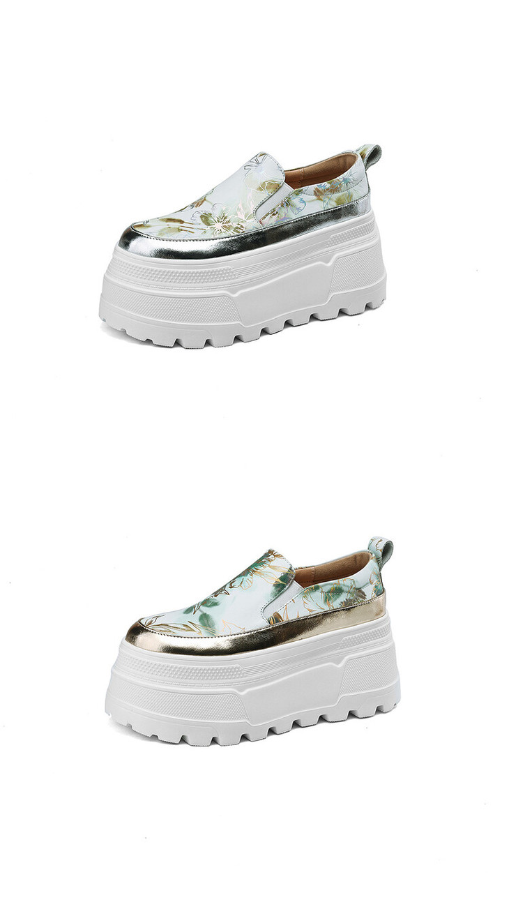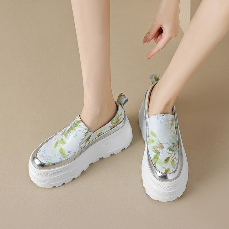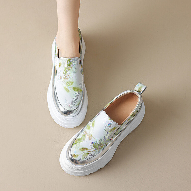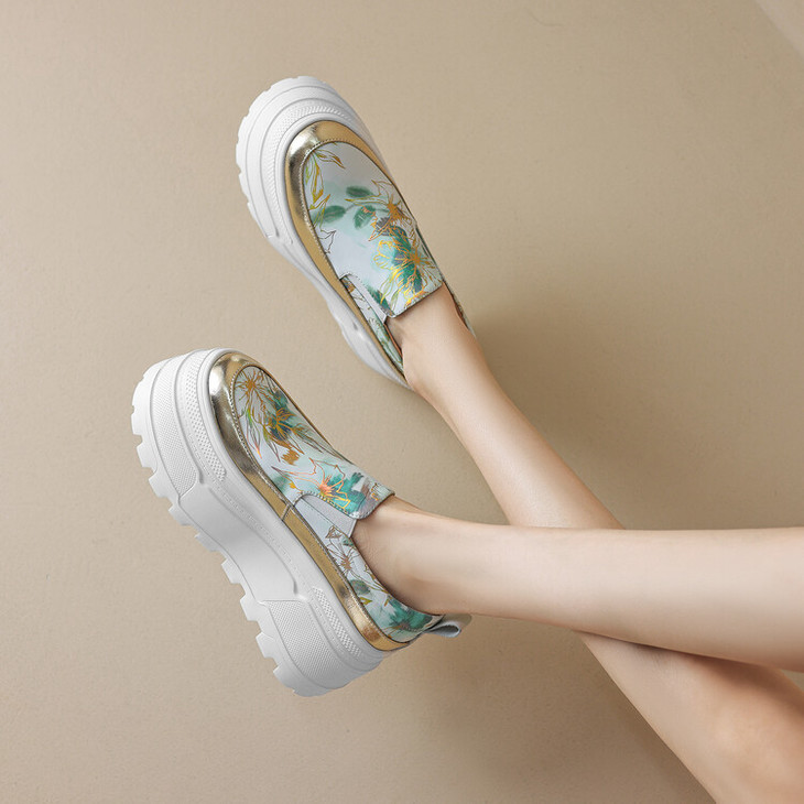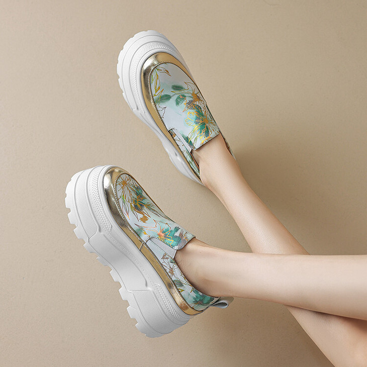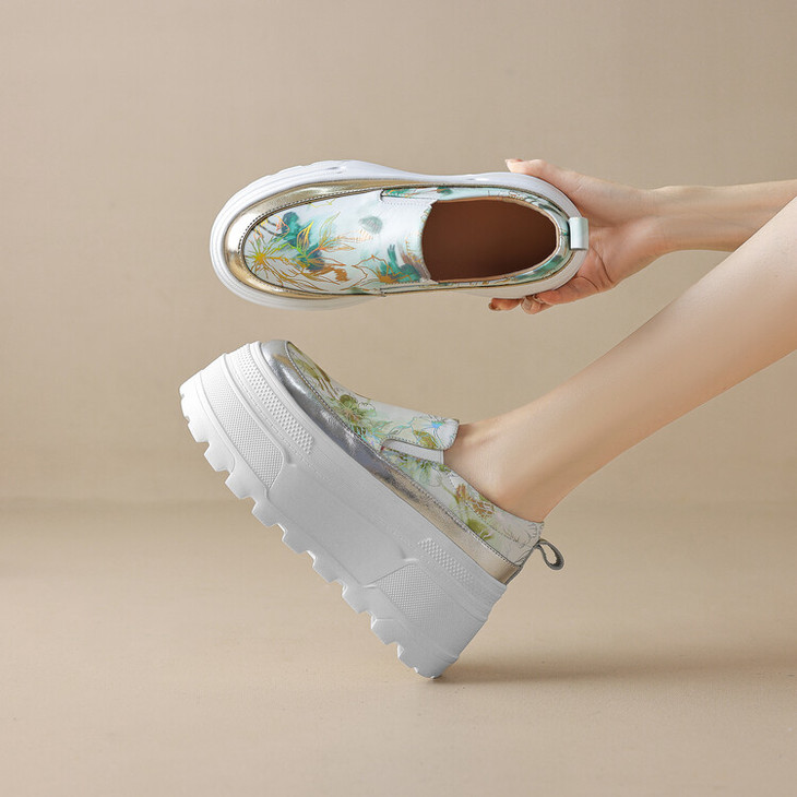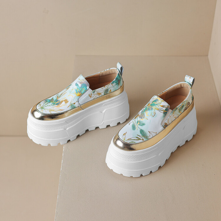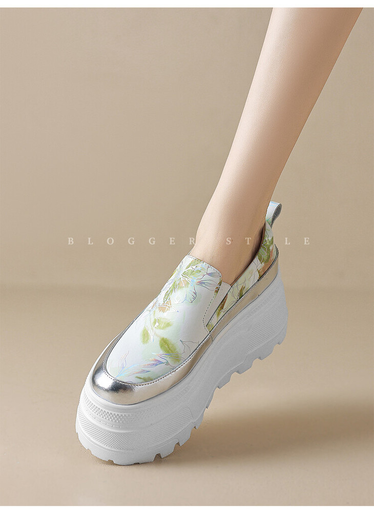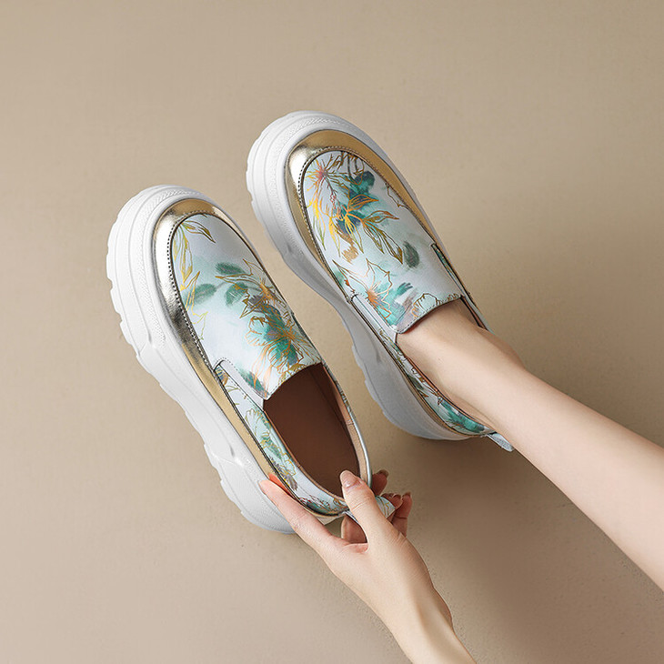 【预售5天】里外全皮松糕跟圆头深口单鞋印花牛皮休闲厚底时尚乐福女鞋AD&123-298