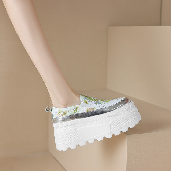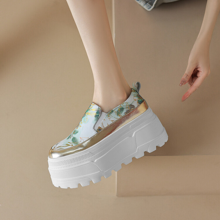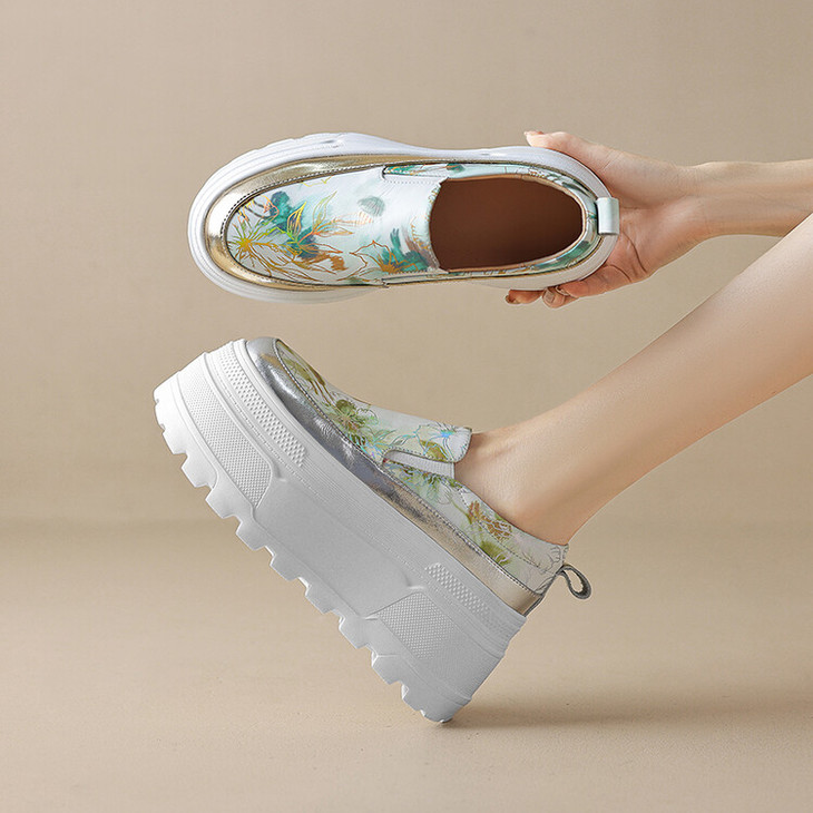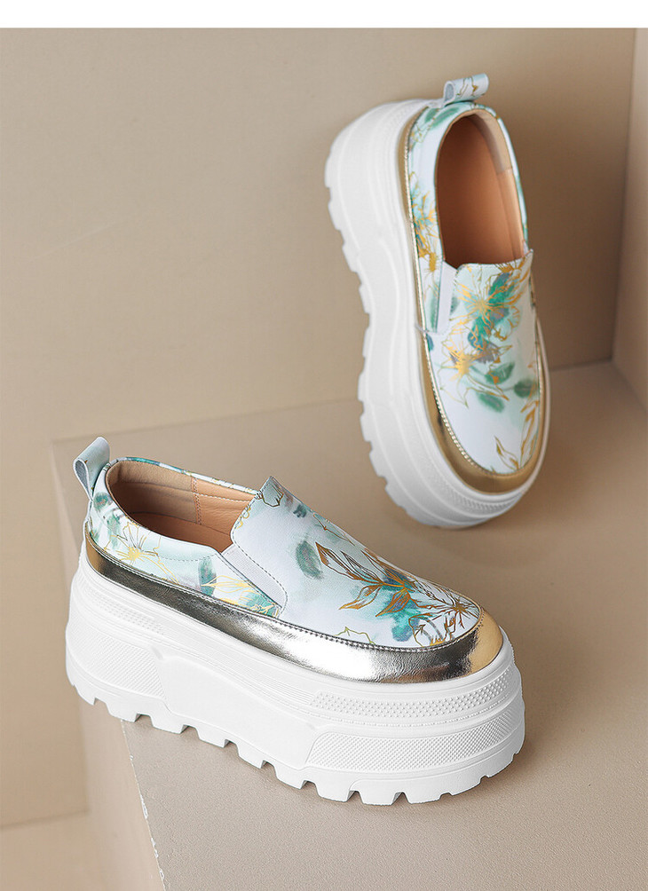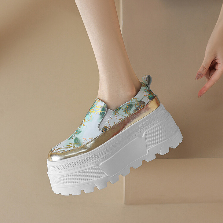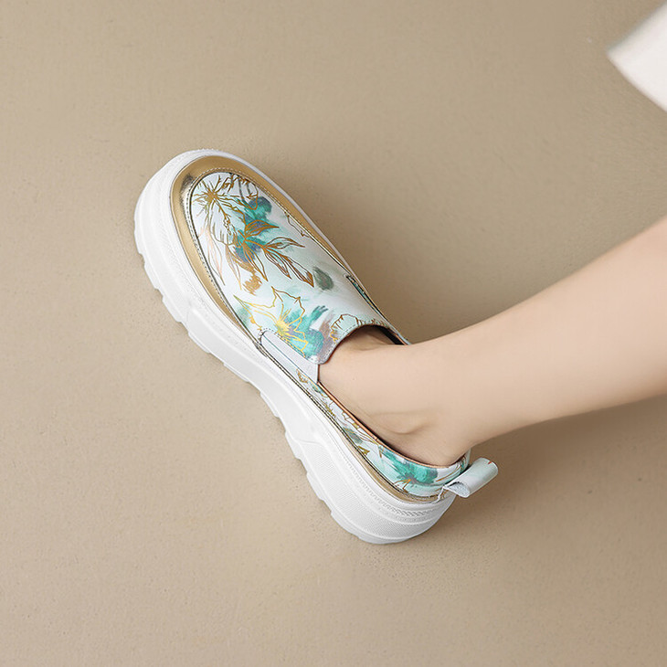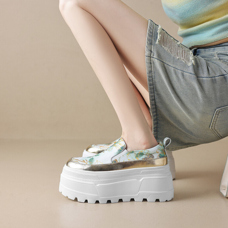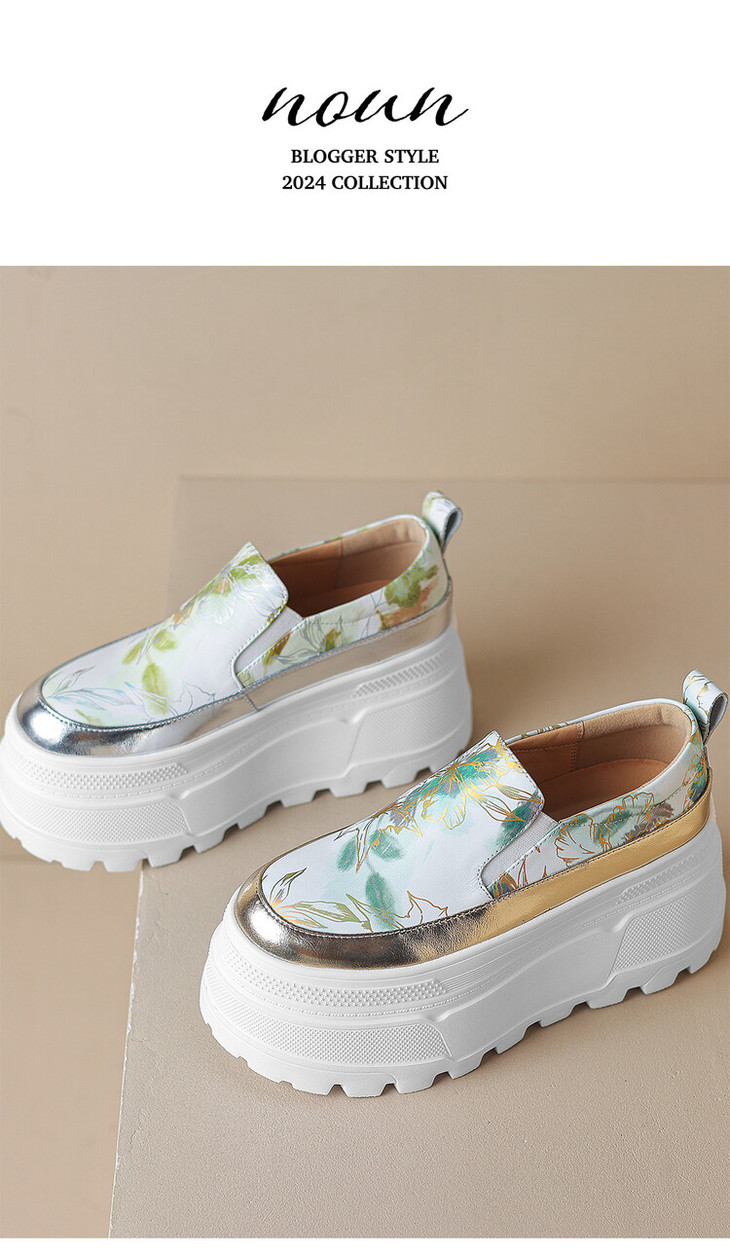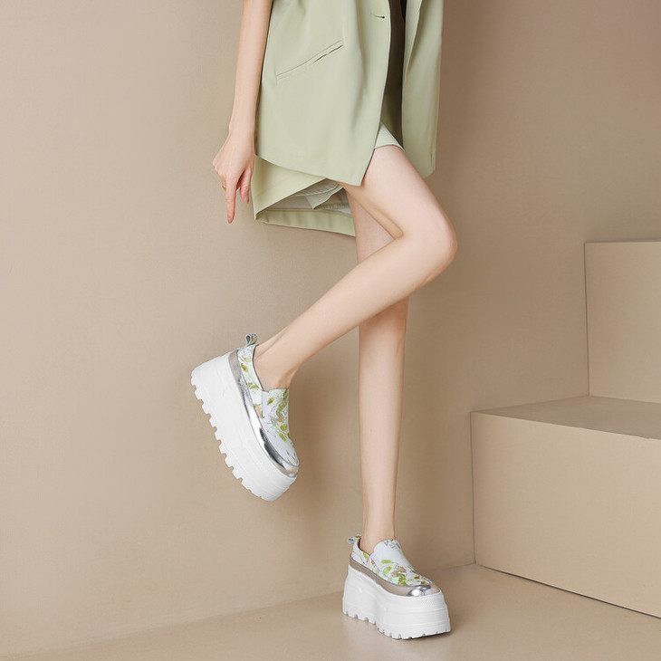 【预售5天】里外全皮松糕跟圆头深口单鞋印花牛皮休闲厚底时尚乐福女鞋AD&123-298