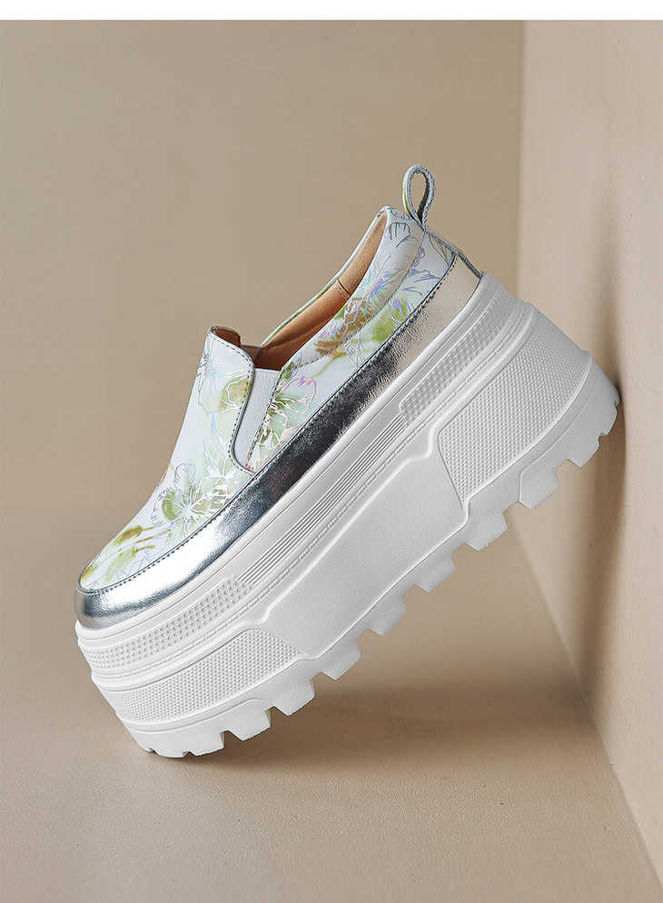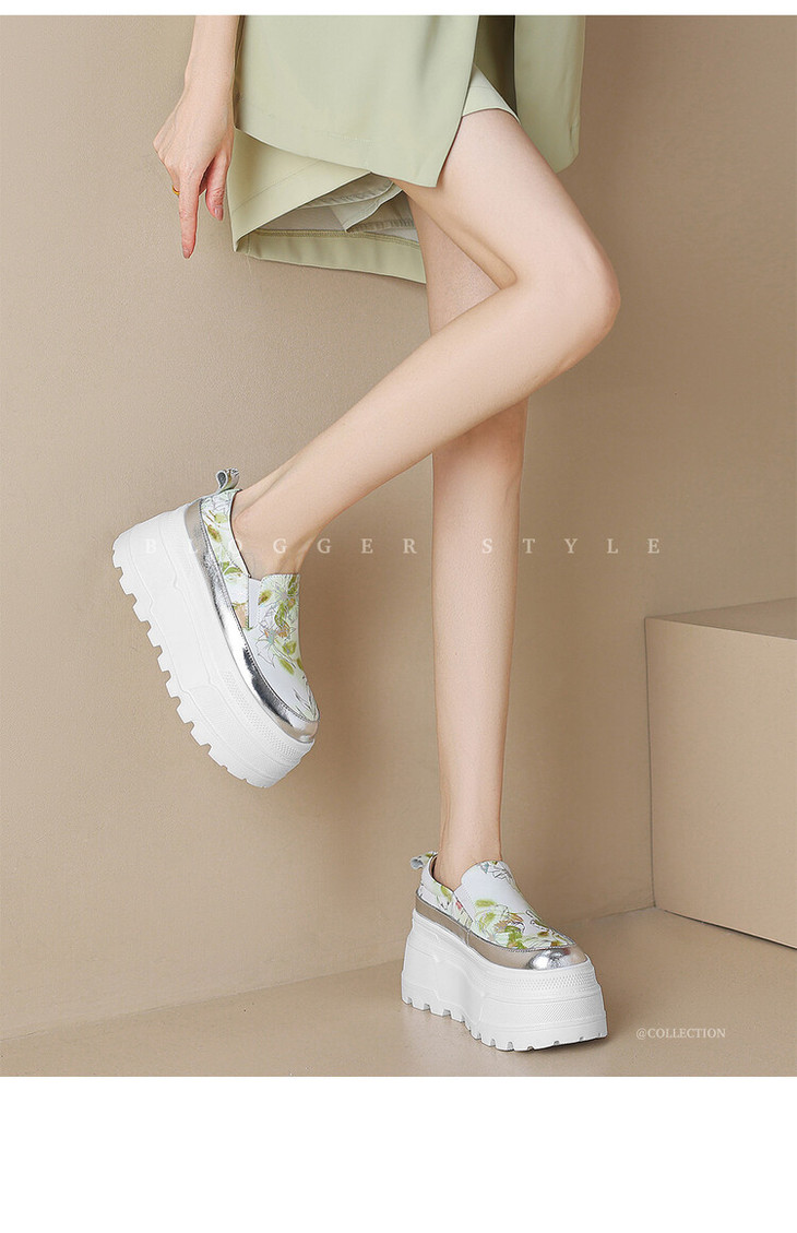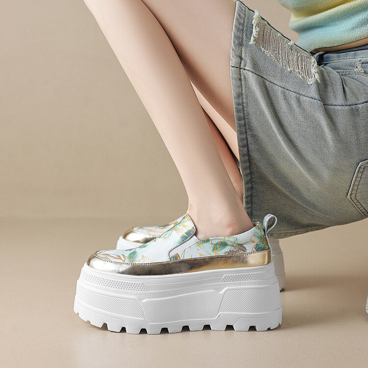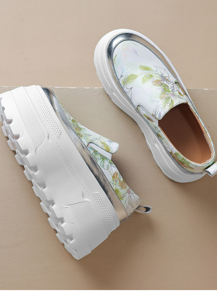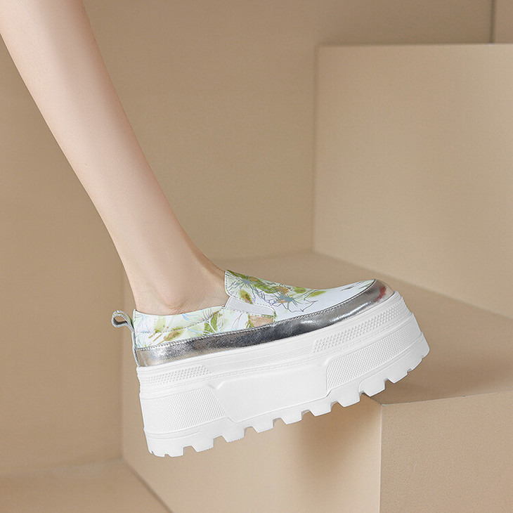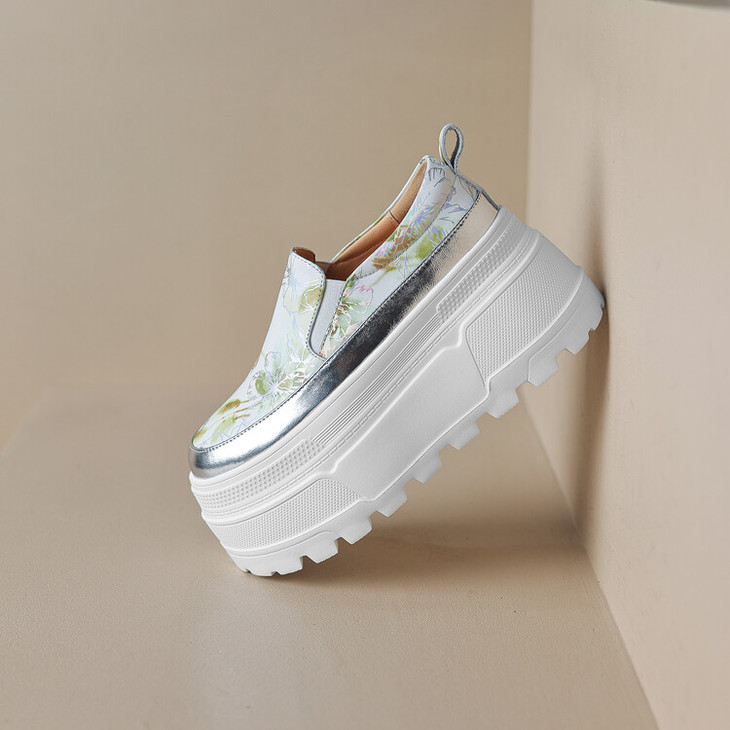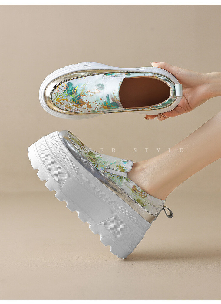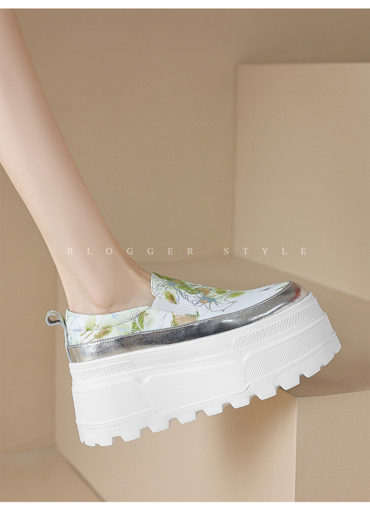 【预售5天】里外全皮松糕跟圆头深口单鞋印花牛皮休闲厚底时尚乐福女鞋AD&123-298
